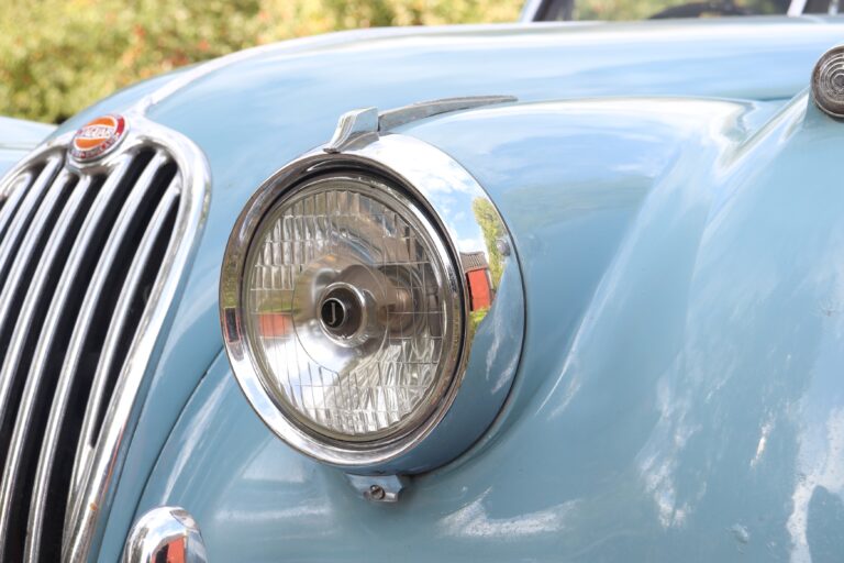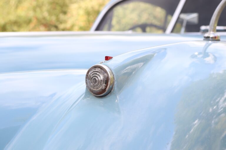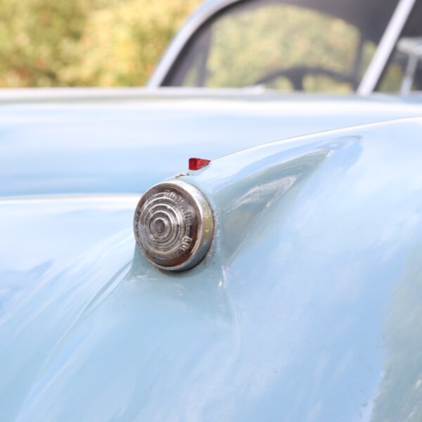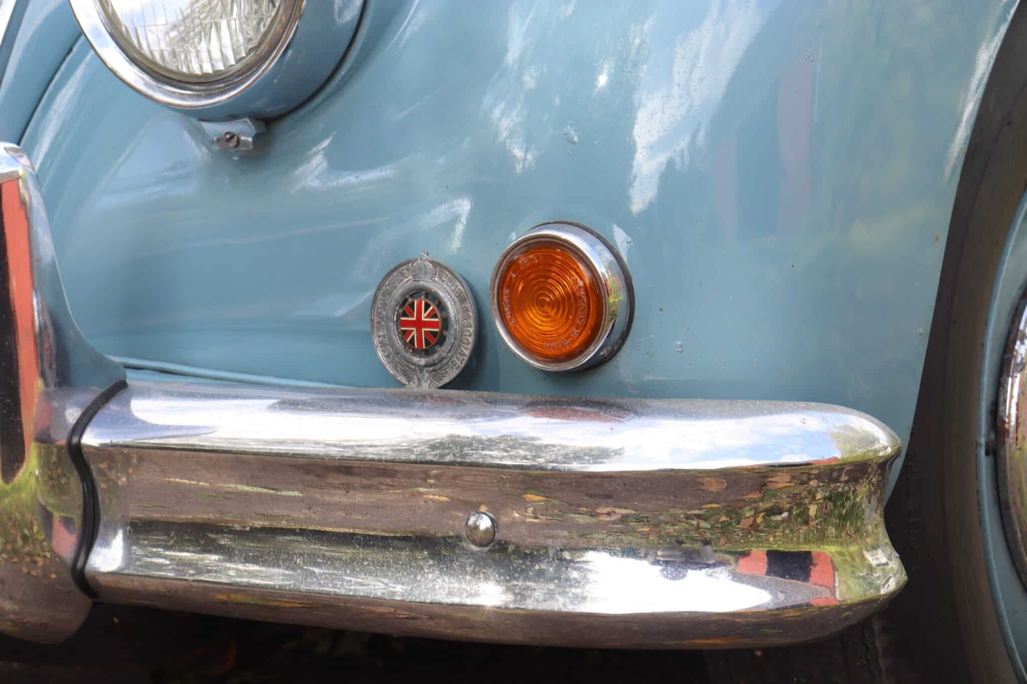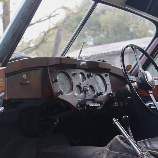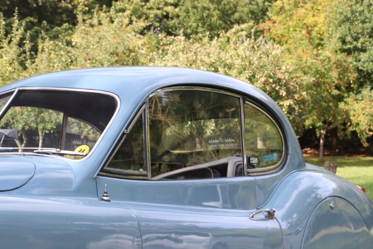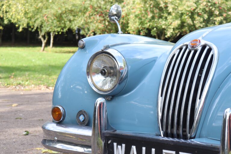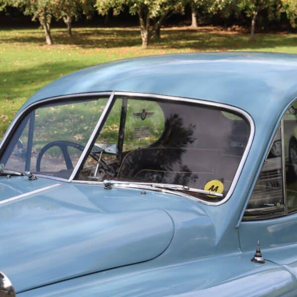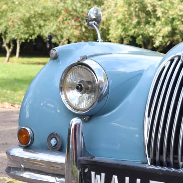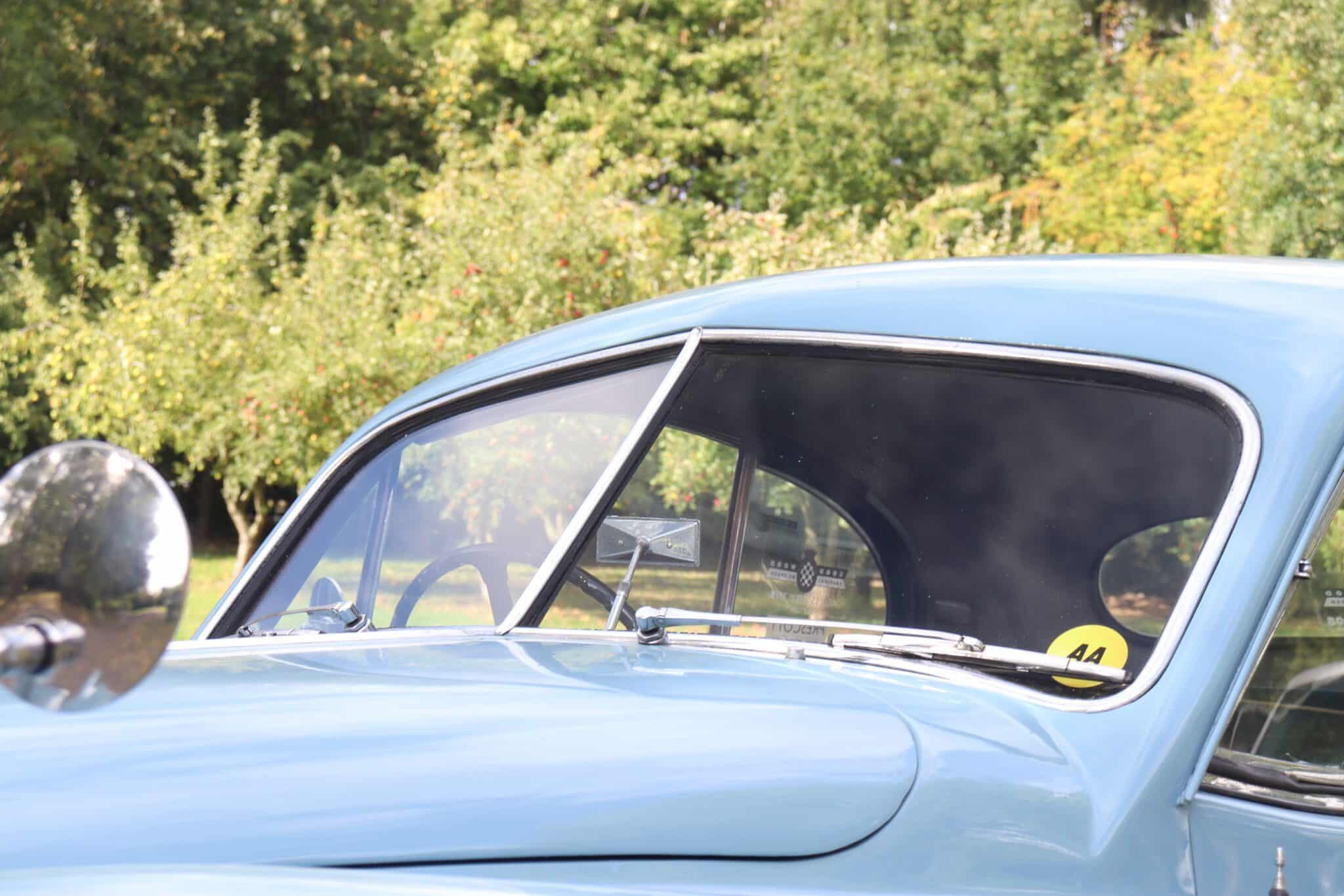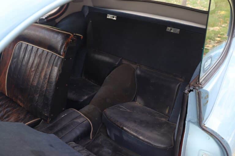 Still wearing its factory-applied colour scheme of Cotswold Blue with a Dark Blue interior, the Jaguar was resprayed in the 1990s but the interior remains outstandingly original. In the present family ownership, it has benefitted from much maintenance combined with extremely light use. Maintenance history is traceable to 1970, when the Jaguar received a light engine overhaul. A more comprehensive overhaul was undertaken by Sporting Cars of Beeston, which included the fitment of a replacement cylinder head. A vast collection of invoices reveals much additional work over the years, including fitment of a stainless-steel exhaust pipe in 1988. In 2022, the twin SU carburettors were overhauled with parts supplied by Burlen, and new front brake cylinders were purchased from the David Manners Group.