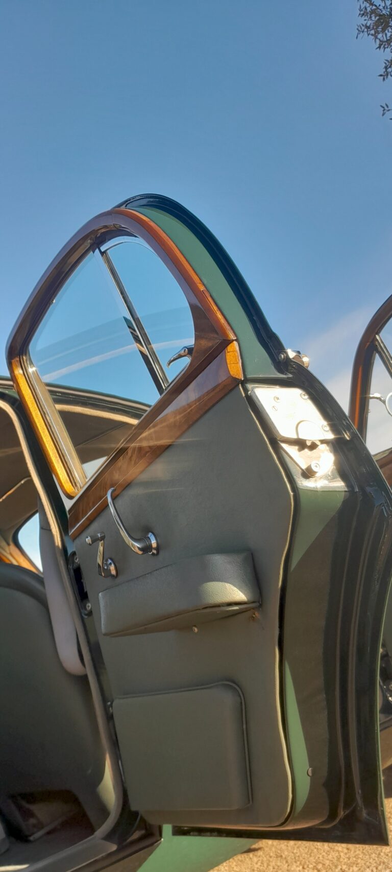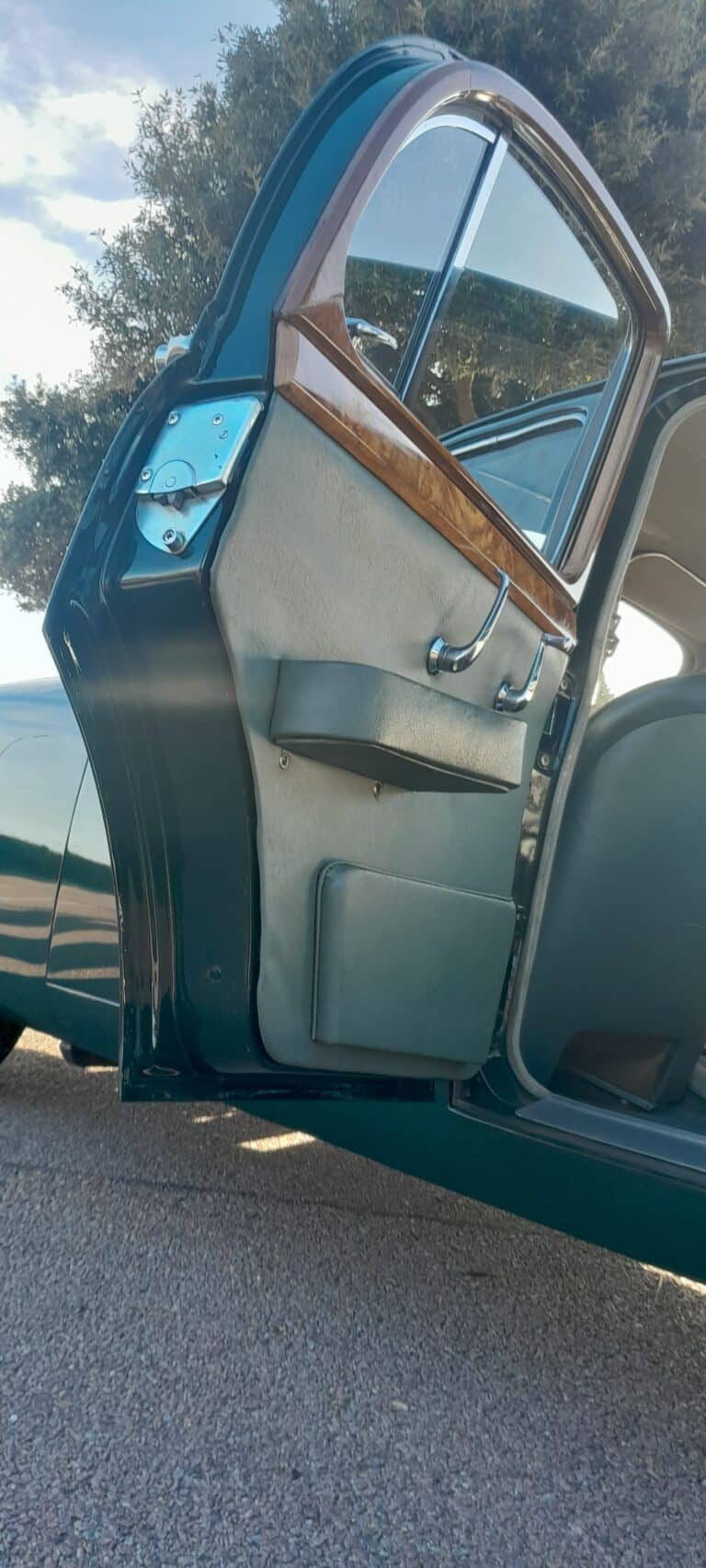 First registered in May 1957 this 3.4 Litre MK1 Jaguar in British Racing Green with Green suede trim and matching green carpeting with excellent original wooden trim and dash.