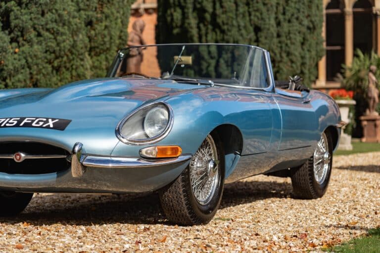 Early sports car racing successes in the hands of Graham Hill and Roy Salvadori, plus the Briggs Cunningham-Roy Salvadori drive to fourth overall in the 1962 Le Mans 24 Hours, helped cement its reputation. Built as a monocoque with a front subframe to cradle the engine, the model’s combination of all-round independent suspension (torsion-bar at the front and a coil-sprung rear) rack-and-pinion steering and four-wheel disc brakes gave it excellent roadholding and handling capabilities. Fed by triple SU HD8 carburettors and topped with a “straight port” DOHC cylinder head, its indomitable 3,781cc straight-six engine was quoted as developing some 265bhp and 260lb ft of torque. Allied with a four-speed Moss gearbox (with synchromesh on second, third and fourth), it reputedly enabled the E-type to sprint from 0-60mph in 6.9 seconds and on to 150mph. Achingly beautiful yet capable of being viciously quick on the open road or docile around town, the E-type remains for many the greatest ever production Jaguar.