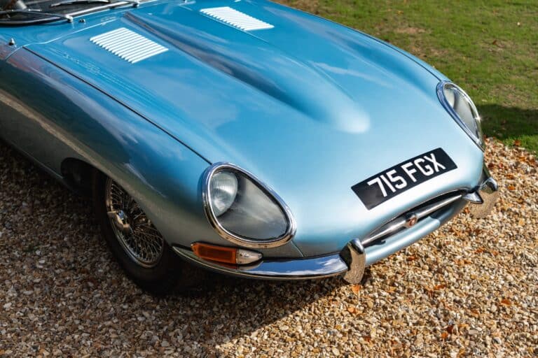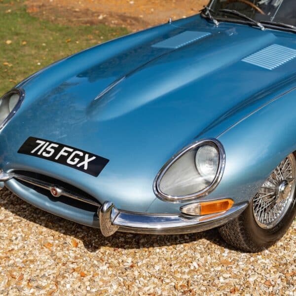 Sadly, little else is known about its early life, but by December, 2018, it had had just four recorded keepers, the last of whom had owned it since February, 1985. The then-owner concluded his time with the car by treating it to an extensive overhaul which took place between 2014 and 2018. The work was predominantly completed by Xtreme Jaguar Restorations in Woodchurch, Kent, and included an engine rebuild and overhauls of the carburettors, front suspension and steering. A new bonnet frame was fitted and the car was entirely repainted in a colour we believe to be Opalescent Silver Blue, a hue correct for the age of the car and undoubtedly one of the loveliest colours offered for the E-type, available from 1961 to 1968. When the Jaguar was sold upon completion of the overhaul, it was noted: “Electronic ignition is the only deviation from factory specification.” We are, however, advised that a later, all-synchromesh four-speed gearbox has been fitted at some stage to enhance the car’s useability.