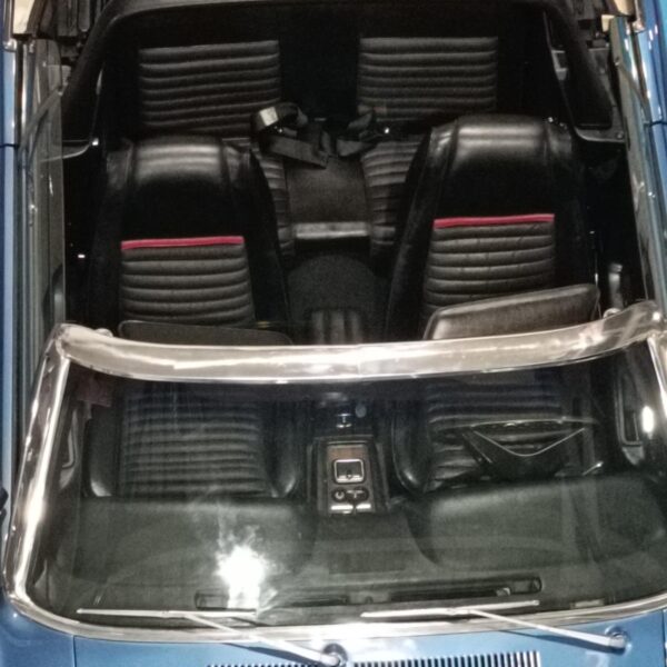 Out of 2,366 Shelbys produced in 1969, only 384 left the factory as convertibles. Of those, just 139 were GT350s, and only four were finished in the striking Acapulco Blue with a four-speed manual transmission. This car goes even further: it is the only one ever built with black high-back vinyl seats and its factory AM/8-track stereo, making it a truly one-of-one configuration.