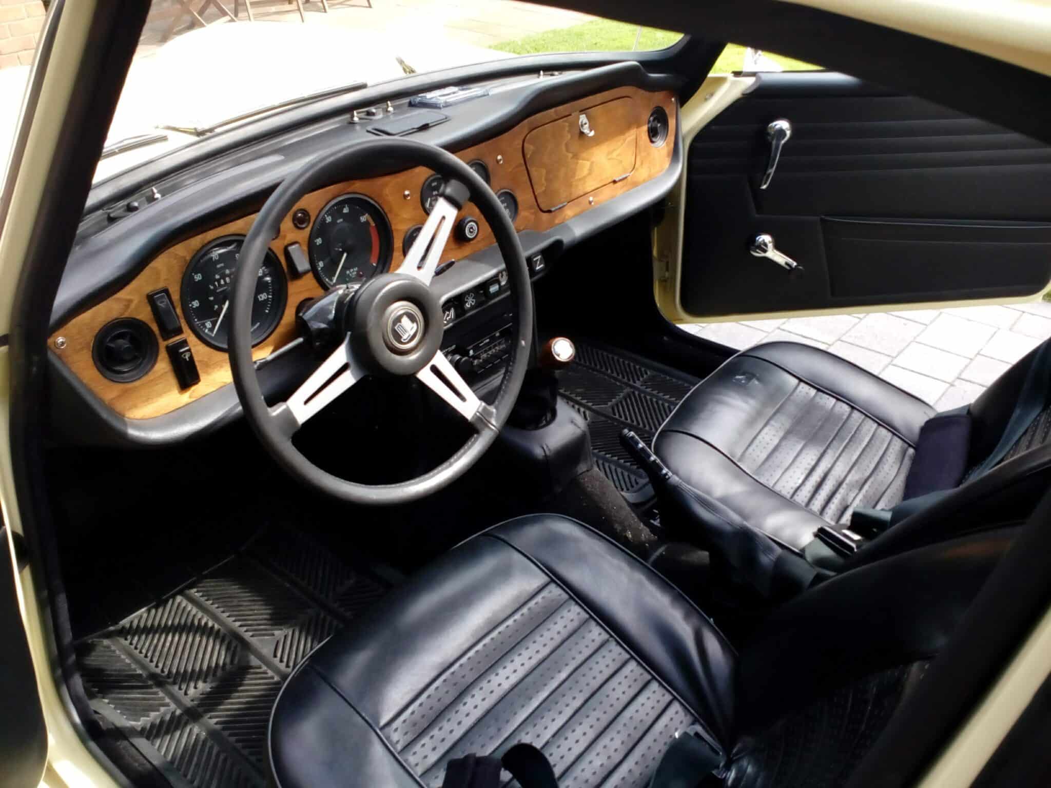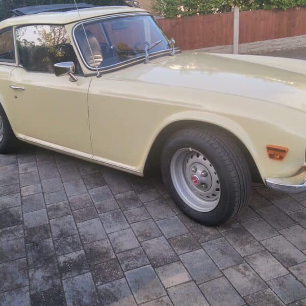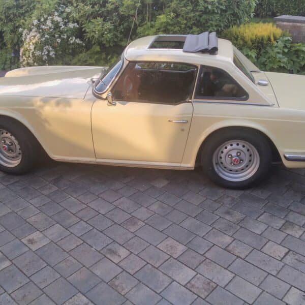 1969 Triumph TR6 LHD. Jasmine yellow, owned over 9 years. Rare factory hardtop with sliding sunroof. Near new hood and frame, also new full tonneau. Exceptional condition and improved over the years. Matching numbers rebuilt engine and 4 speed gearbox. New tyres and wonderful light clutch. Drives as well as it looks. Lots more photos and details upon request. Thank you.