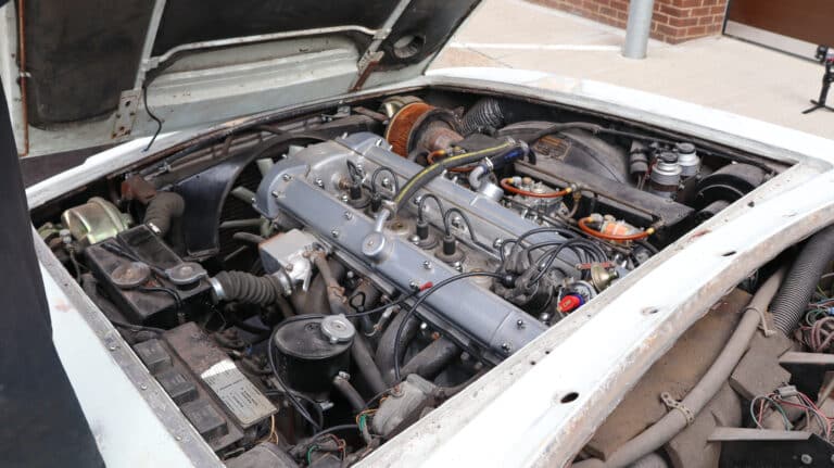 At some stage, the car’s colour was changed, but according to its build sheet, it originally left Newport Pagnell in Azzurro Blue with Dark Blue Connolly trim. AMHT described the car as built to “a nice spec, good colour and Vantage spec engine.”