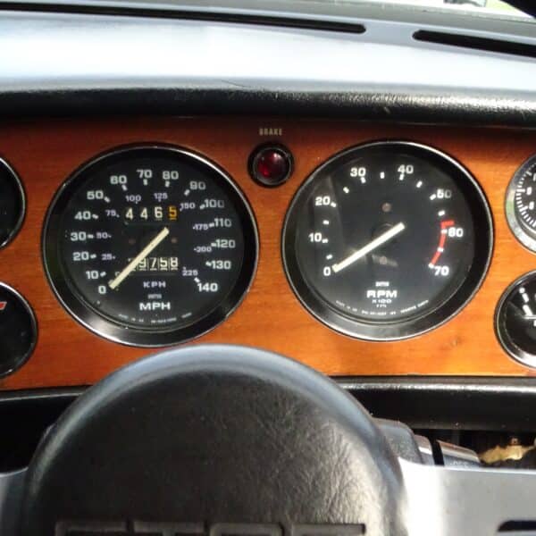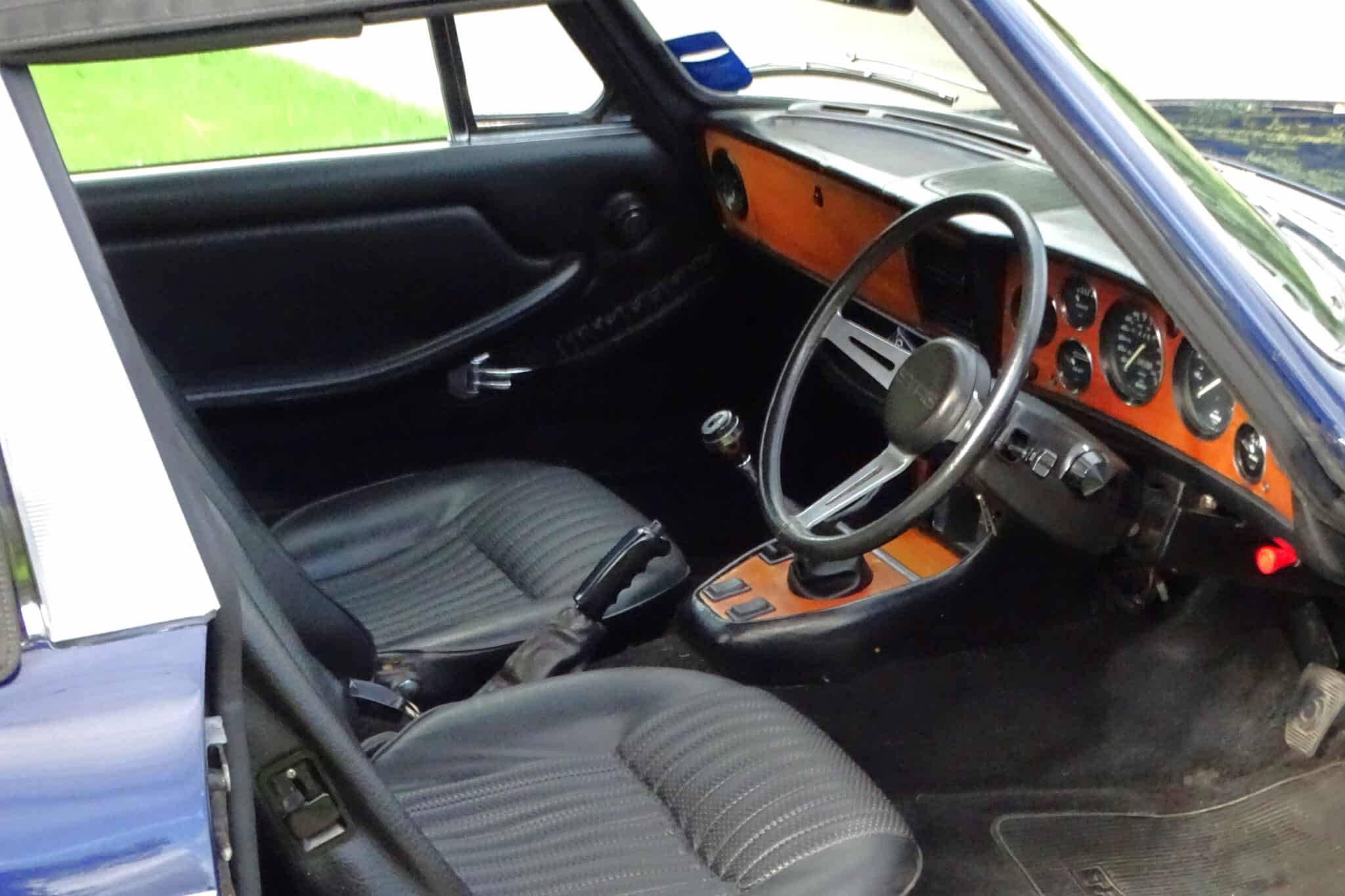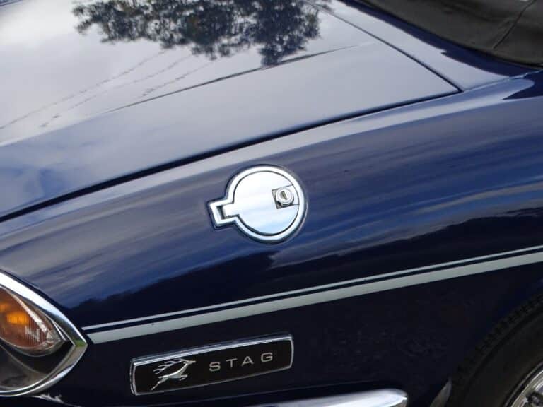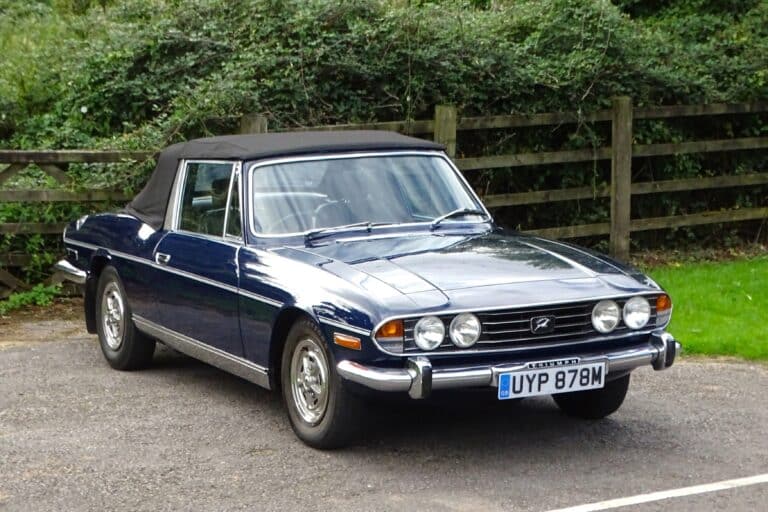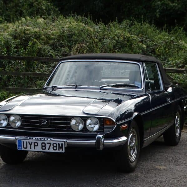 Introduced in June, 1970, the Triumph Stag was conceived as a luxury convertible sports car to rival the likes of the R107-series Mercedes-Benz SL. As such, it came equipped with electric windows, power-assisted rack-and-pinion steering, and servo-backed front disc and rear drum brakes as standard. Based around a two-door monocoque bodyshell (stylist Giovanni Michelotti had physically shortened a pre-production Triumph 2000 saloon in order to fashion the initial prototype), the newcomer featured all-round independent suspension (McPherson strut front and semi-trailing arm rear) and a well laid-out two-plus-two cabin. Neatly integrated, the substantial roll-over hoop that joined the B-pillars gained extra strength from a T-bar link to the windscreen frame. With some 145bhp and 167lb ft of torque on tap from its bespoke 2,997cc SOHC V8 engine, the model was reputedly capable of 120mph. Available with a choice of four-speed manual or three-speed automatic transmission, all but the earliest Stags benefited from both hard and soft-top roofs. Despite being in production for seven years, during which time 25,877 cars were made, a mere 9,500 or so are thought to have survived.