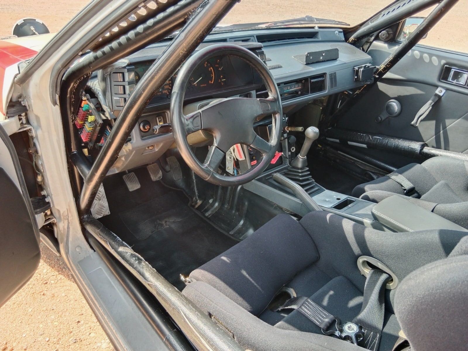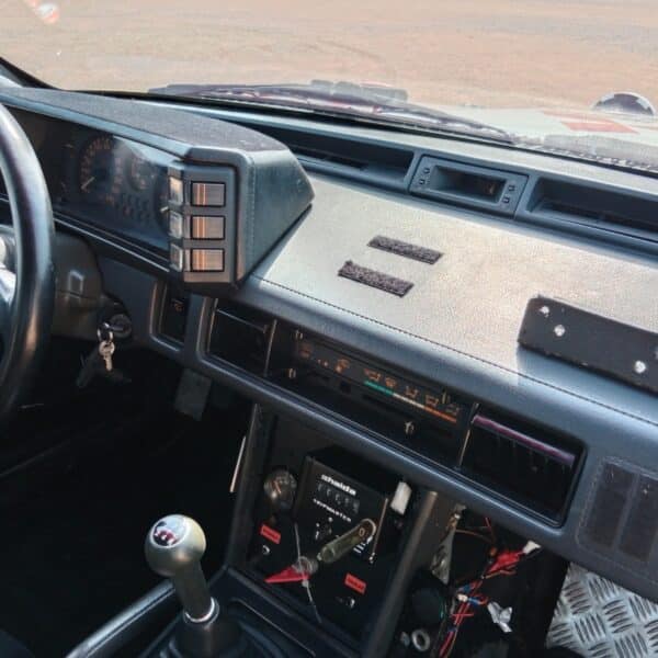 Designed with performance in mind, the interior features bucket seats, an approved safety cage, safety harnesses, and other rally-ready touches, blending sportiness with historic authenticity.