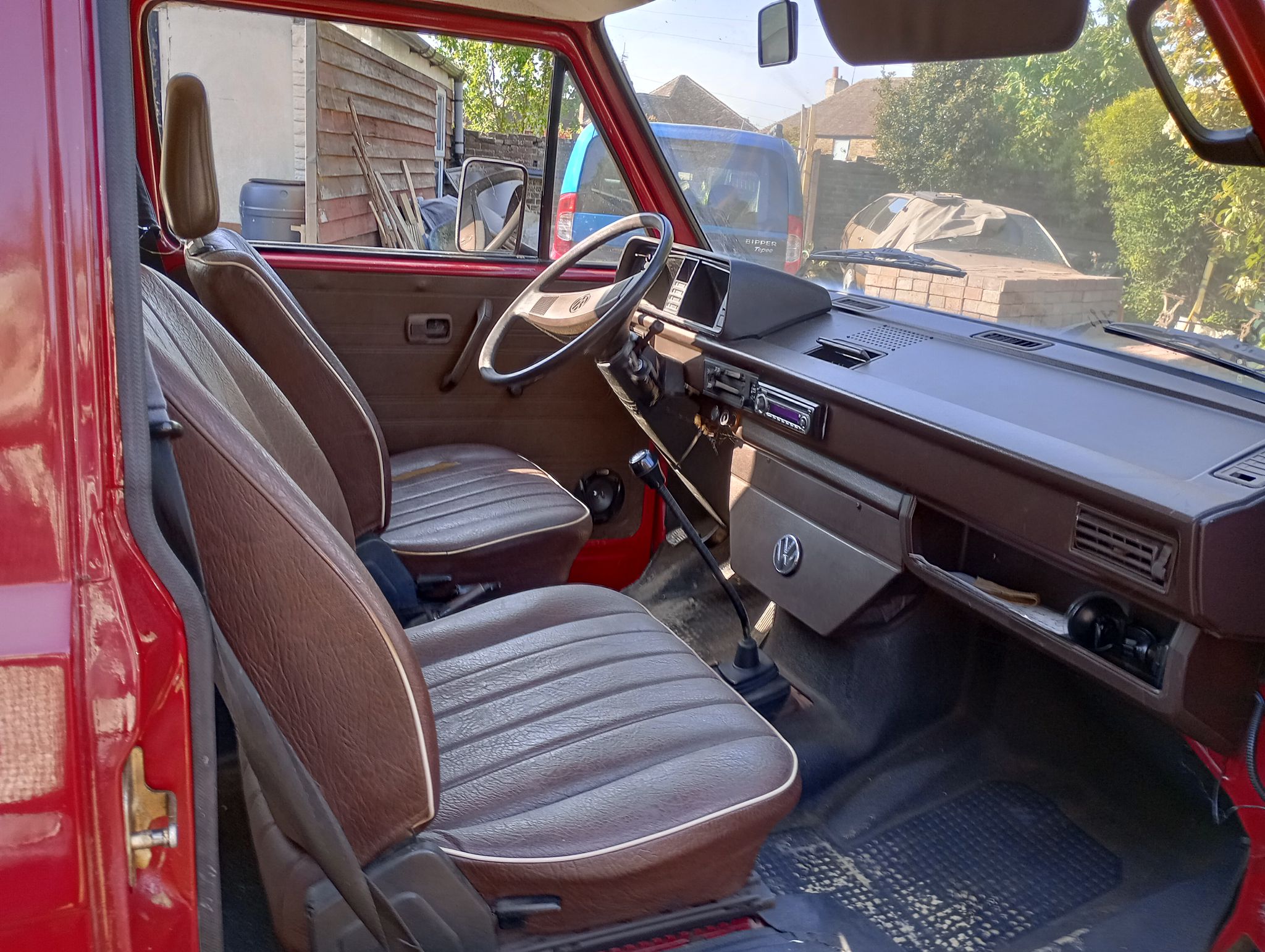 Maintains original Westfalia brown and cream interior, including original leather seats.
