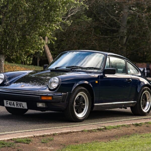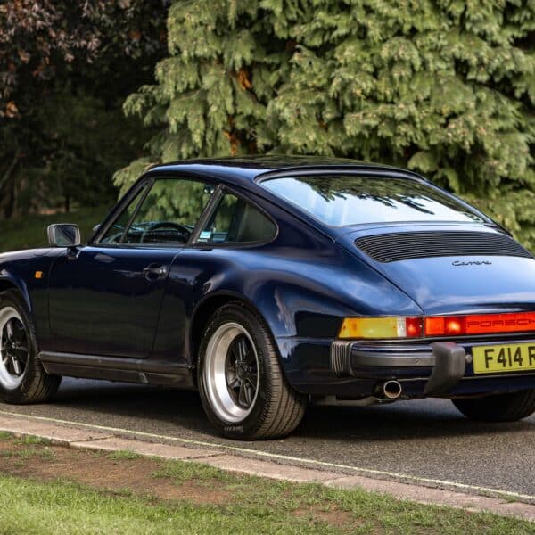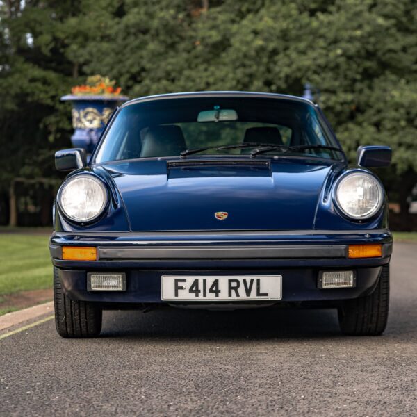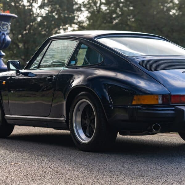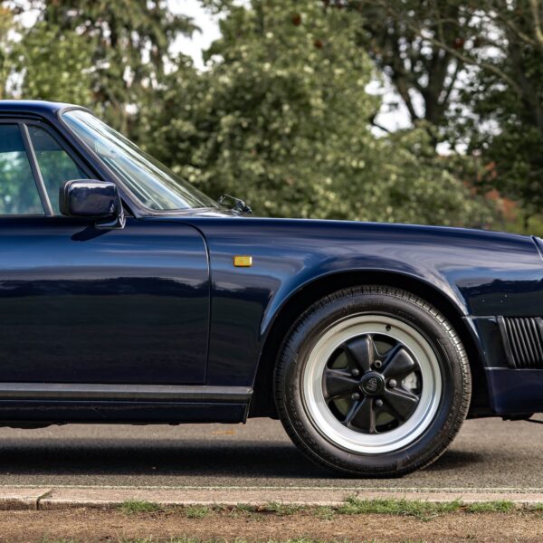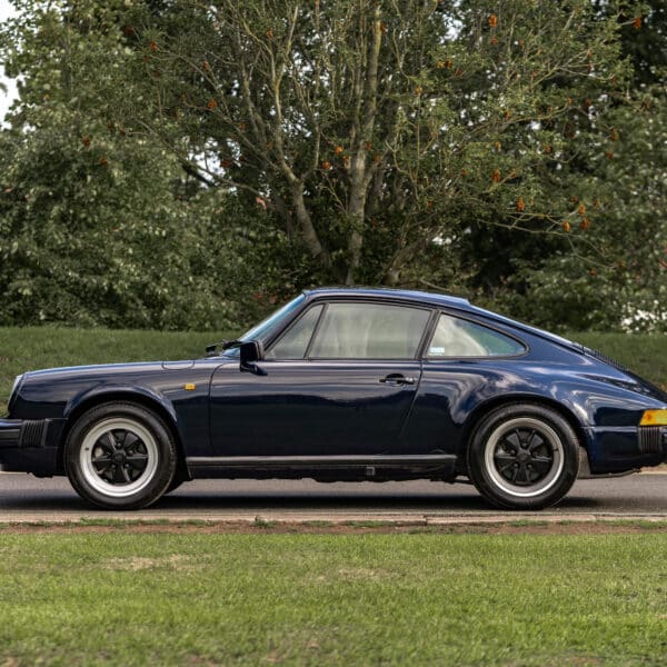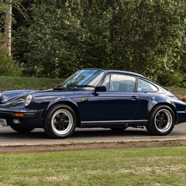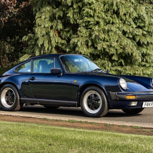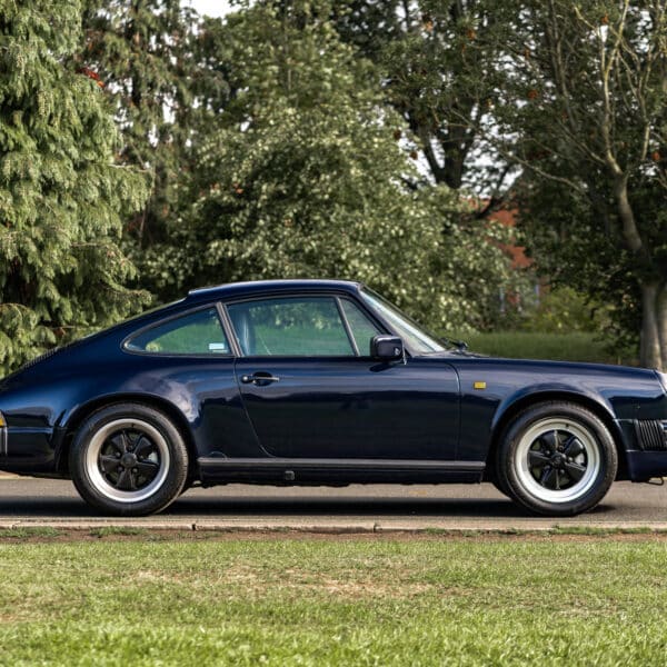 This desirable ‘last of the line’ K Program Carrera 3.2 coupe with the preferred G50 manual gearbox was originally supplied to a customer in Germany by Porsche Zentrum. In purer, left-hand drive ‘C00’ specification, it has been in the current ownership since 1997 following purchase from a friend and registers some 171,000 km (c.106,627 miles) from new. Finished in Dark Blue with Black leather upholstery, ‘F414 RVL’ has been subject to an extensive mechanical, engine and bodywork restoration which was completed in c.2024. Many of the parts supplied came from Rennspeed and Gantspeed Engineering Limited with genuine Porsche panels also being used. The Posche was finished off by being painted by Retford Autofinishers in its original hue.