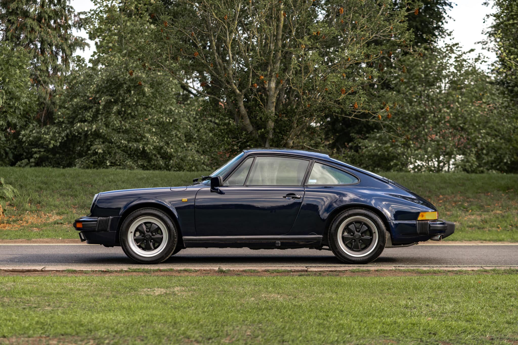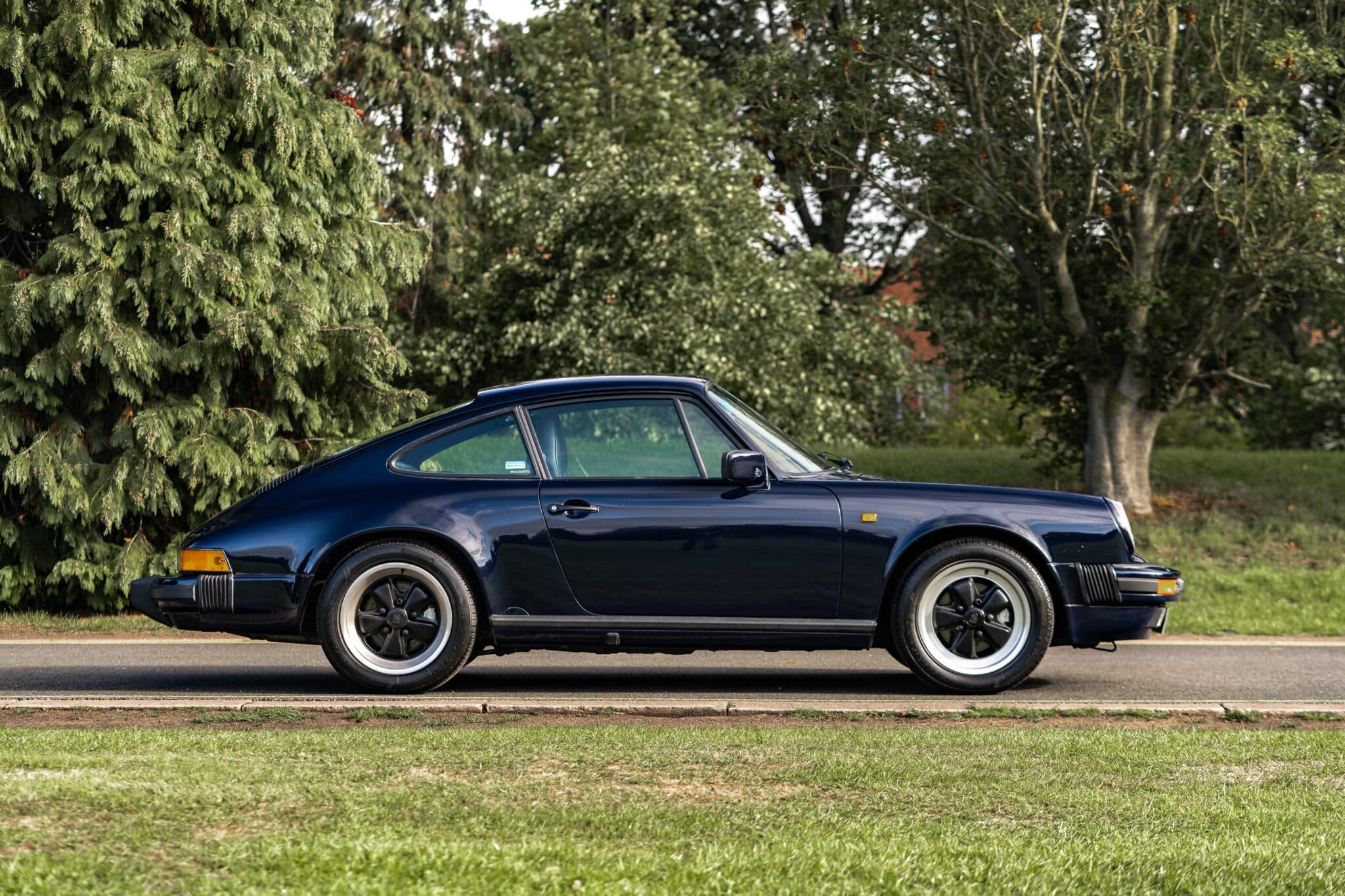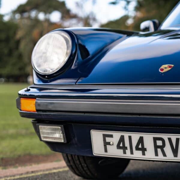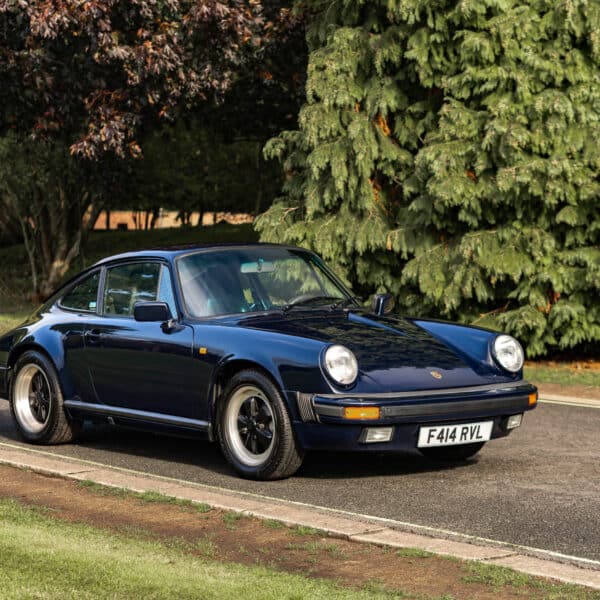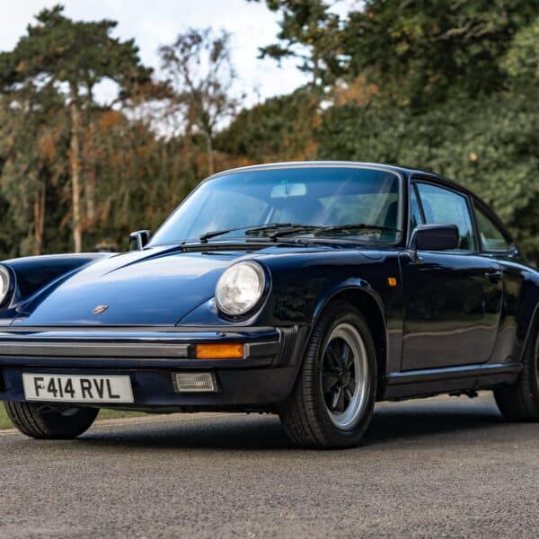 This desirable ‘last of the line’ K Program Carrera 3.2 coupe with the preferred G50 manual gearbox was originally supplied to a customer in Germany by Porsche Zentrum. In purer, left-hand drive ‘C00’ specification, it has been in the current ownership since 1997 following purchase from a friend and registers some 171,000 km (c.106,627 miles) from new. Finished in Dark Blue with Black leather upholstery, ‘F414 RVL’ has been subject to an extensive mechanical, engine and bodywork restoration which was completed in c.2024. Many of the parts supplied came from Rennspeed and Gantspeed Engineering Limited with genuine Porsche panels also being used. The Posche was finished off by being painted by Retford Autofinishers in its original hue.