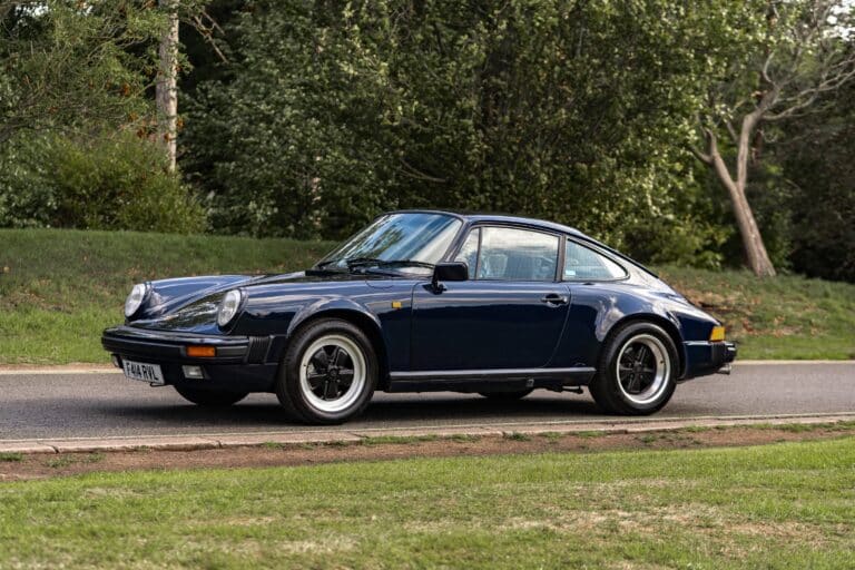 Developed under the watchful eye of Porsche Chief Executive Peter Schutz, the 911 Carrera 3.2 made its debut at the Frankfurt Motor Show of September 1983. Estimated to be 80 percent new, the model’s 3164 cc (hence ‘3.2’) flat-six engine was credited with developing some 231bhp and 209lbft of torque. Allied to a five-speed manual transmission, it proved both rev-happy and flexible, making the model capable of 0-60mph in 5.3 seconds with a 153mph top speed. In order to cope with the increased performance, the brakes were enlarged and the top two gear ratios slightly raised. Among other improvements was a redesigned timing chain tensioner – the Achilles heel of the earlier engines. Early examples of the 3.2 employed the 915 type manual gearbox with reverse gear located beneath fifth, while 1987 to 1989 models had the stronger G50 unit in which reverse was located beside the fifth ratio. Built to a simpler, lighter specification than those headed to other countries and unaffected by the heavy pedal offset which blighted every right-hand drive incarnation of the 911 up until the 996, German market (or ‘C00’) cars have long been revered by marque purists.