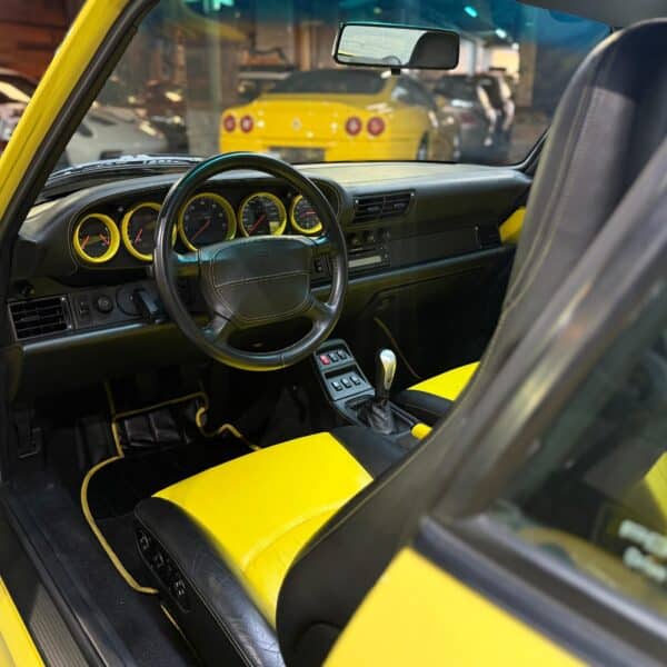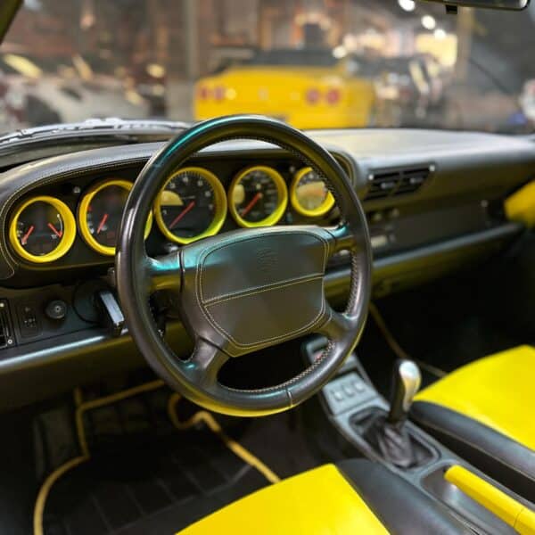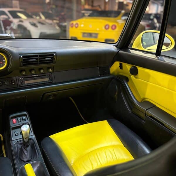 When you see it, you understand. This 993 Turbo is not just another 993: its extremely rare Paint to Sample Yellow, a one-off, out-of-catalogue color, makes it impossible to overlook and highly desired by collectors worldwide. A configuration as striking as it is elegant—worthy of one of the most defining decades in 911 history.