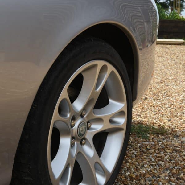 In the vendor’s possession since purchase from the original lady owner in 2015, this 4.2 V8 engined example currently displays some 125,077 miles although it will be driven from Milton Keynes to the sale venue in Buxton. It appears to be a very well looked after example being regularly used, and has a good service history with a new roof being fitted during the current owner’s time with the car. Upon inspection it is said to present very well on the outside with minimal visible wear though there is some almost imperceptible surface rust in the wheel arches. The black leather interior is extremely clean and well cared for. The walnut dashboard looks well preserved and we noted no tears or rips in the seats, although there is some slight discolouring visible on the drivers seat. Accompanied by a history file with receipts and previous MOT certificates, original owner’s book pack and current V5C.