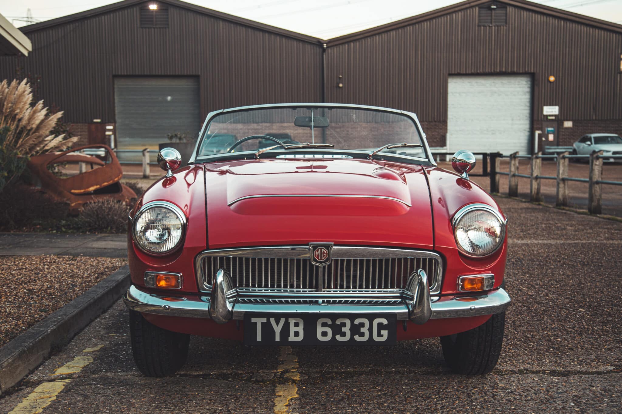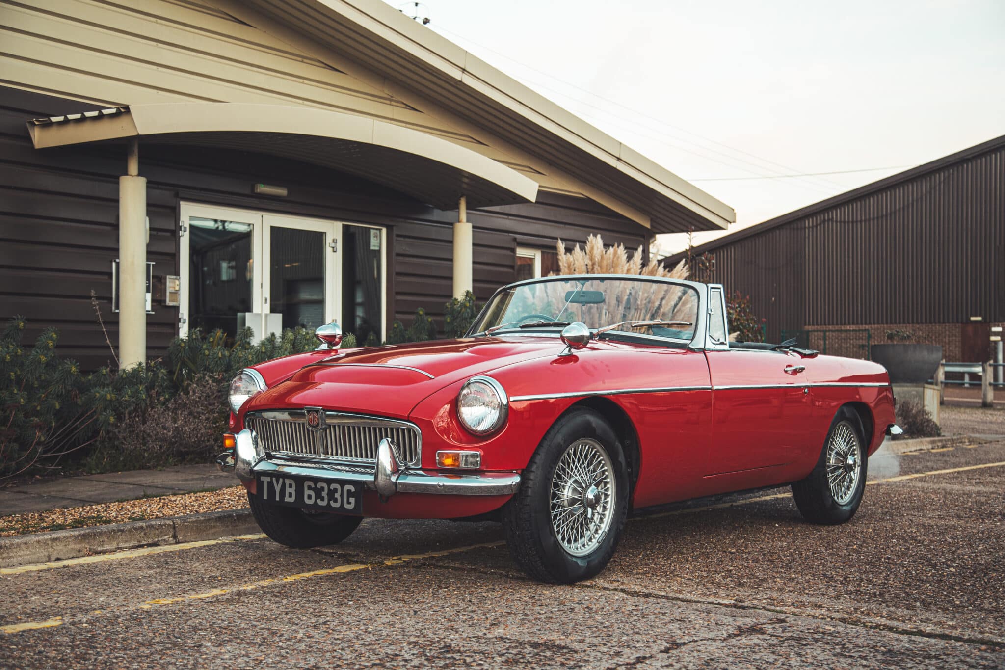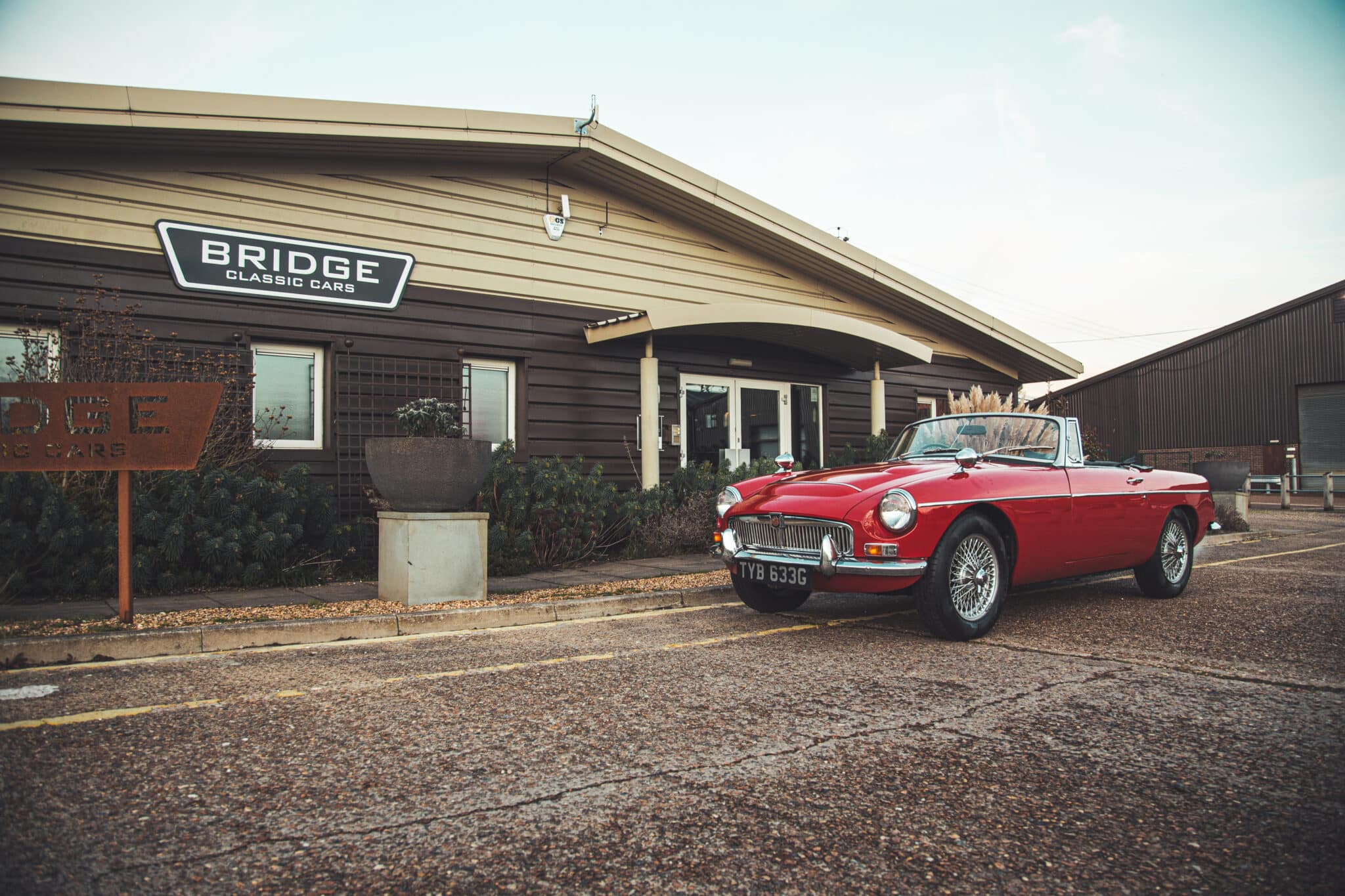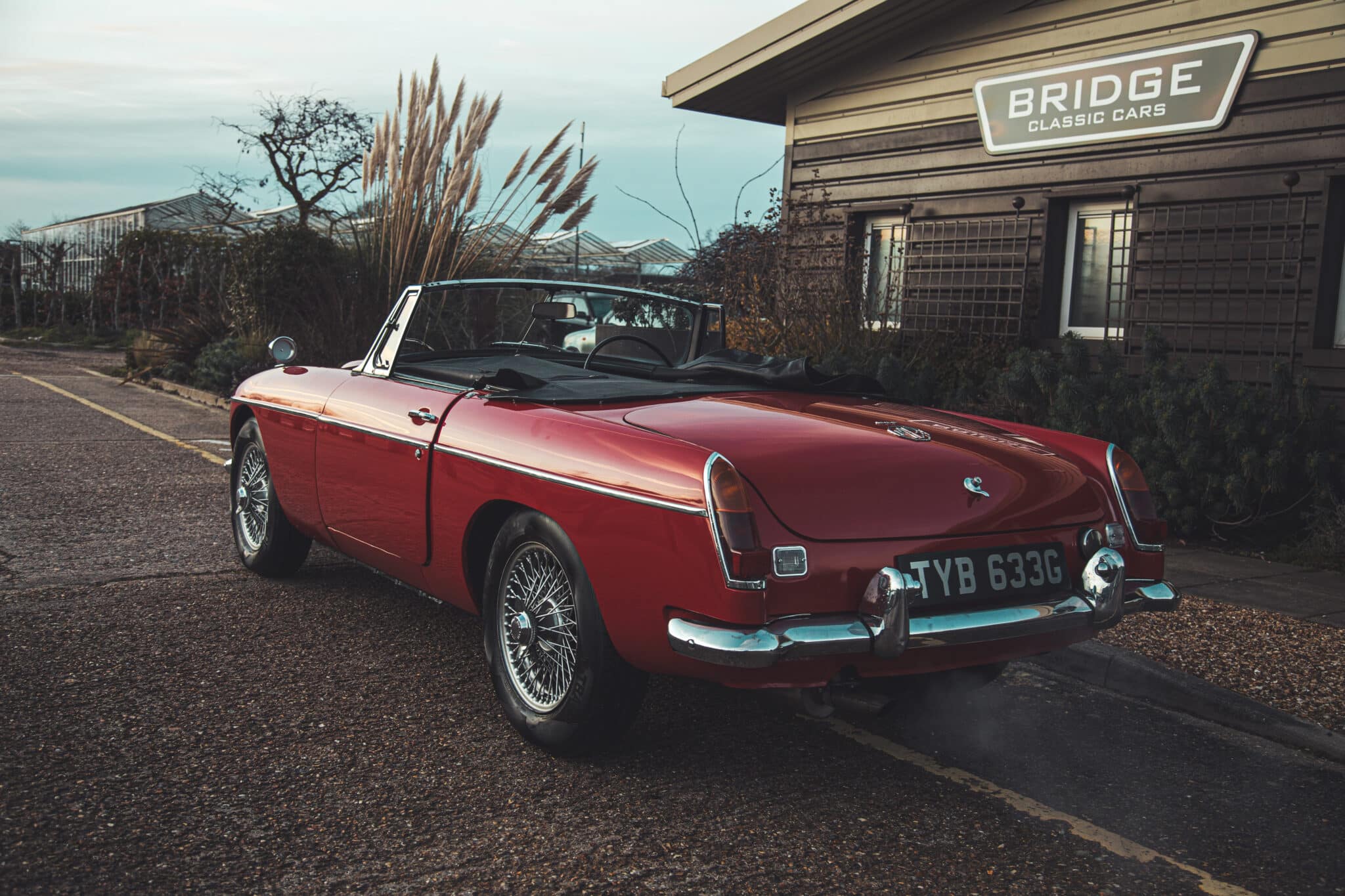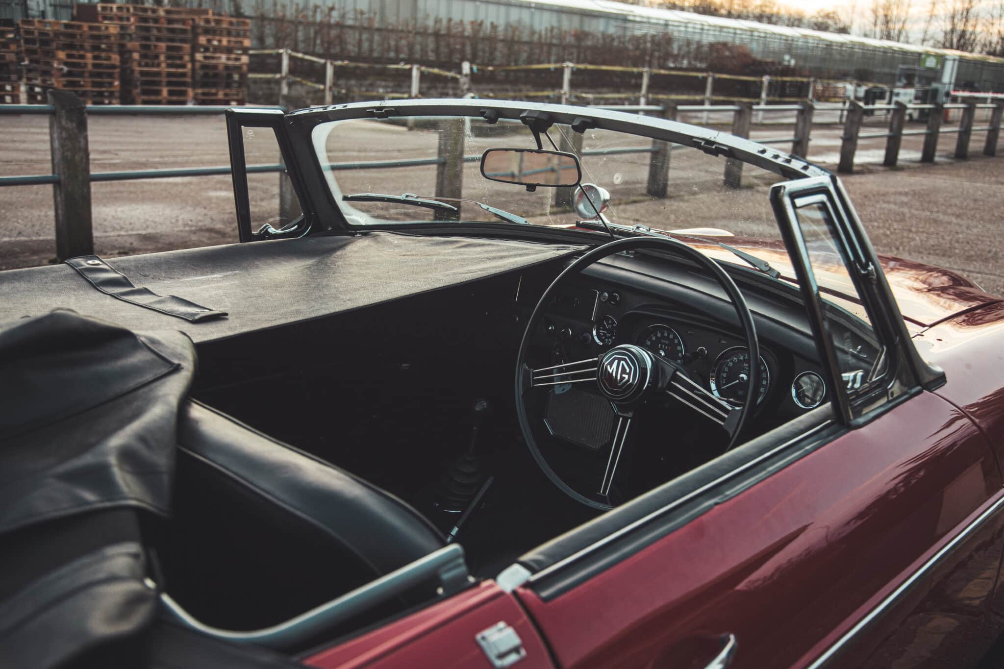 Late yesterday evening, the team welcomed a new arrival to our restoration workshops here in Suffolk. This absolutely stunning 1968 MGC Roadster came straight out of our enclosed transport trailer and into the Classic Lounge – so just as the sun was setting, and golden hour rolled over the Suffolk countryside, I had to get some photos in the pale winter sky.
