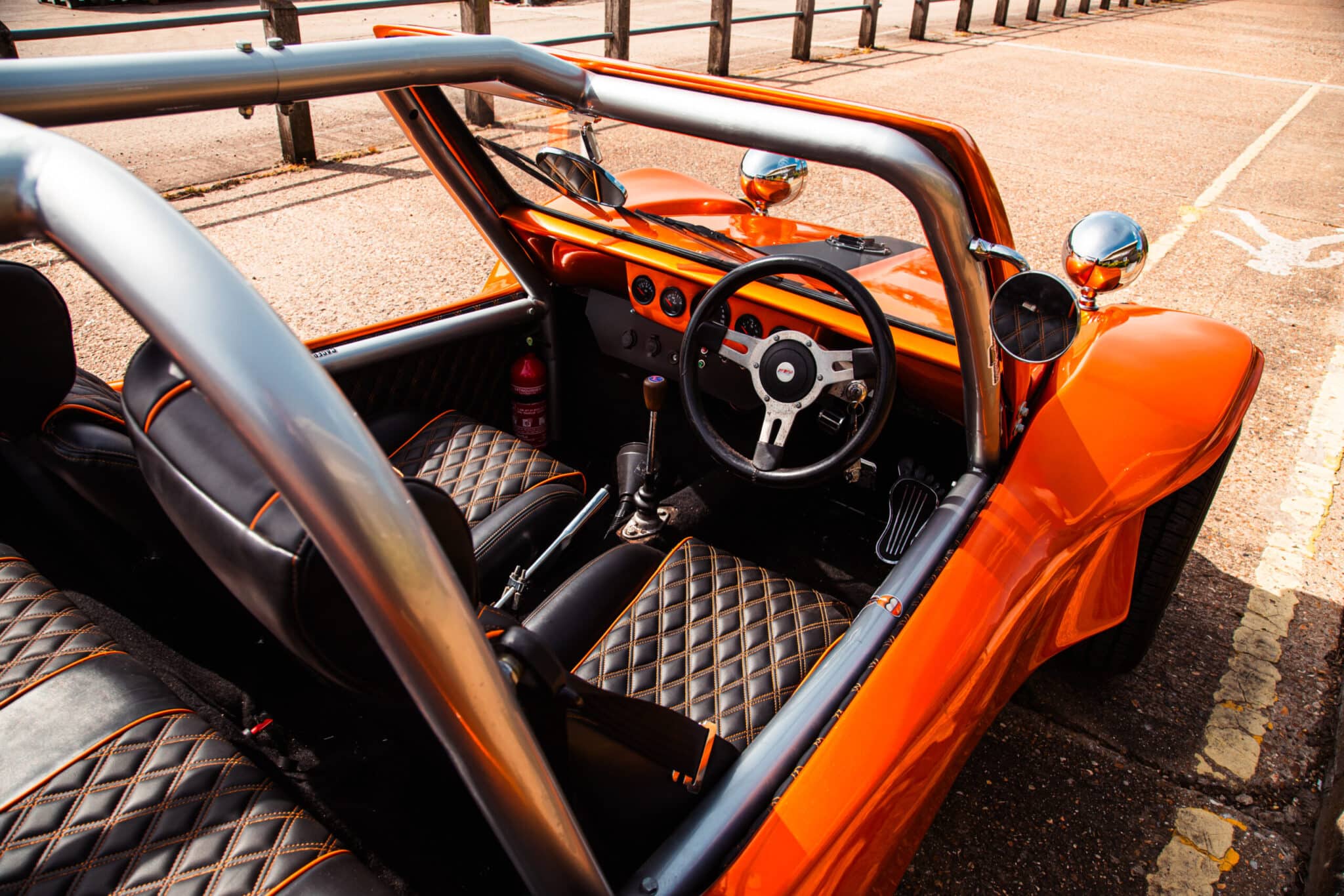 The Bridge Classic Cars restoration workshops has a very brightly coloured new visitor – this 1970 Volkswagen Dune Buggy. Hugely popular in the 1960s and 1970s in Southern California, its the perfect dream machine to live its life on the Suffolk coast with its enthusiastic owner.