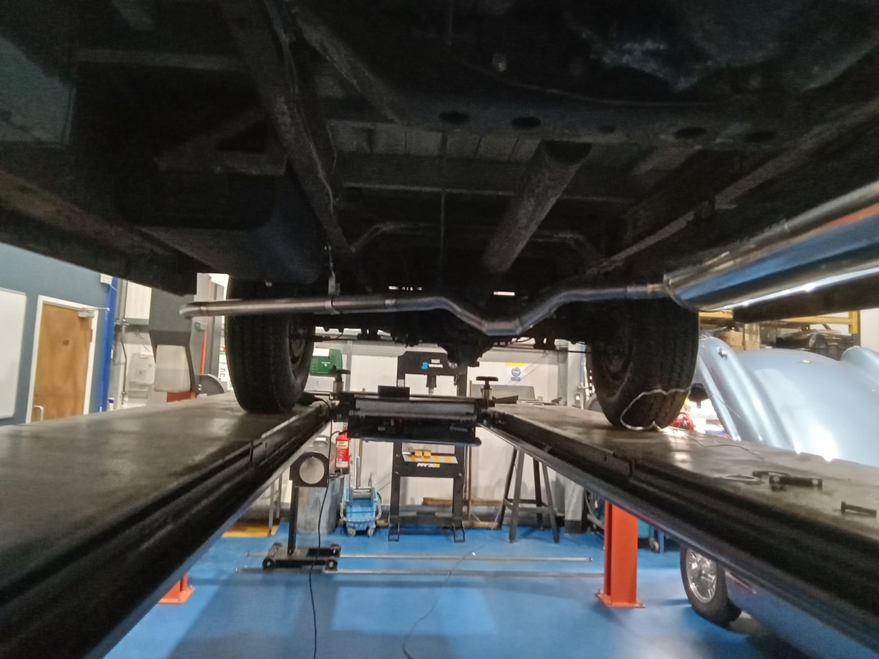 Our fabricator Clinton has been on the underside of the classic 1963 Morris LD at the Bridge Classic Cars workshop to put together a new exhaust system for the van. Replacements for these are something you’re going to find, so Clinton has carefully remade a new system using the original corrdoded and damaged unit before fitting it up on the underside of the van.