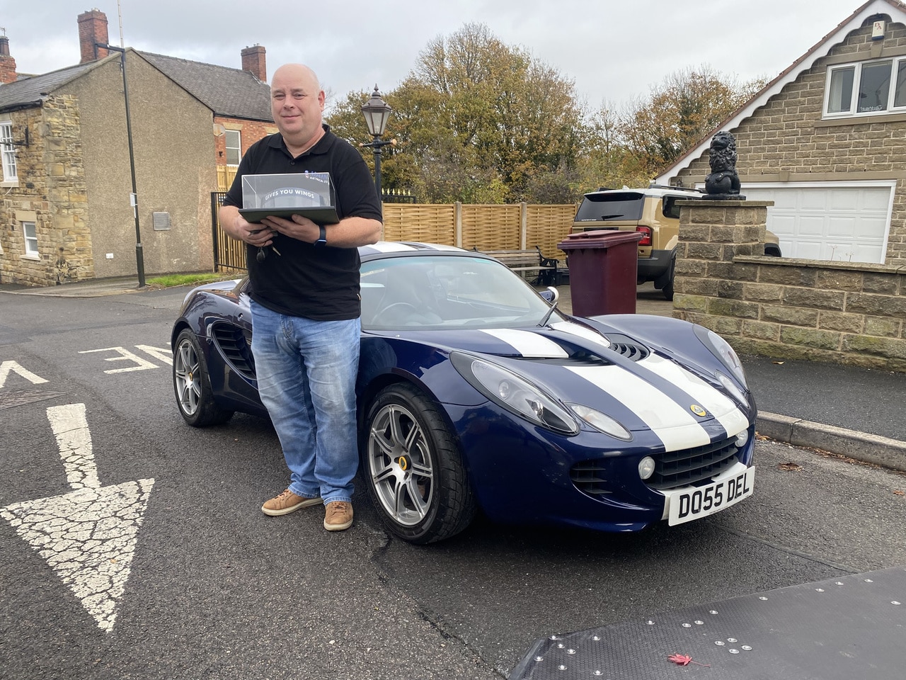 With it’s PDI complete, and the car safely strapped down in our enclosed trailer – the 2006 Lotus Elise Sports Racer has made its way to its new home with lucky winner David Glaves who not only won our Lotus Elise but also the signed David Coulthard visor from the 2008 Canadian Grand Prix!