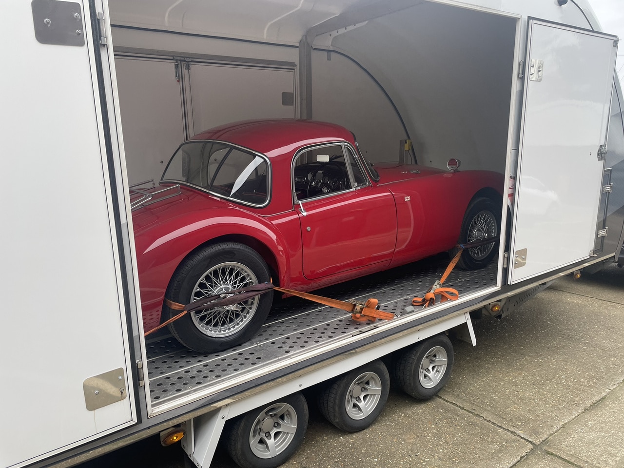 Our 1960 MGA Coupe has found its way to its new home with its very excited new owner. The Bridge Classic Cars transport team loaded up the classic sports car for its journey from our workshop to the cars new HQ.