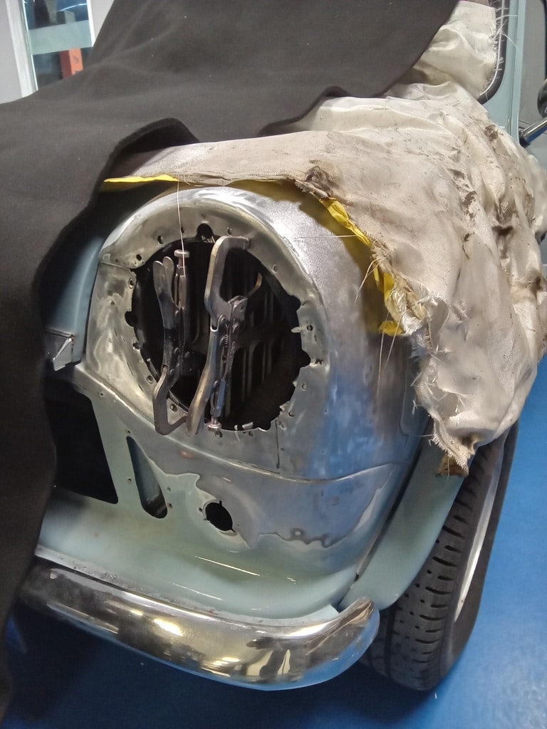 Our paint and body team don’t just do bare metal paintwork for a restoration. Chris and his team including our technicians Mauro and Adam are very skilled in touch-ins and also smart repairs for classic and new cars here at our Bridge Classic Cars workshop in Pettistree, just outside Wickham Market.