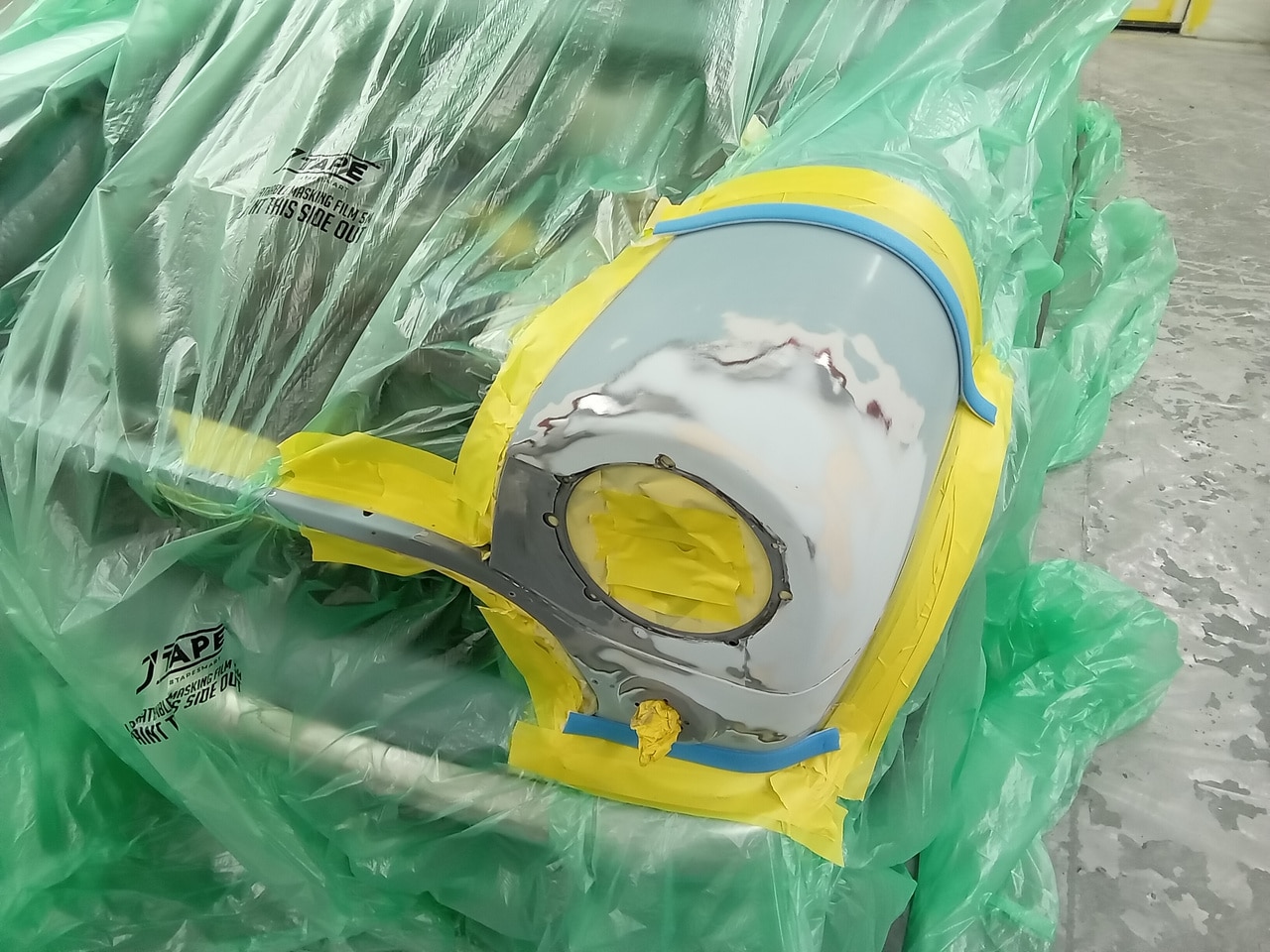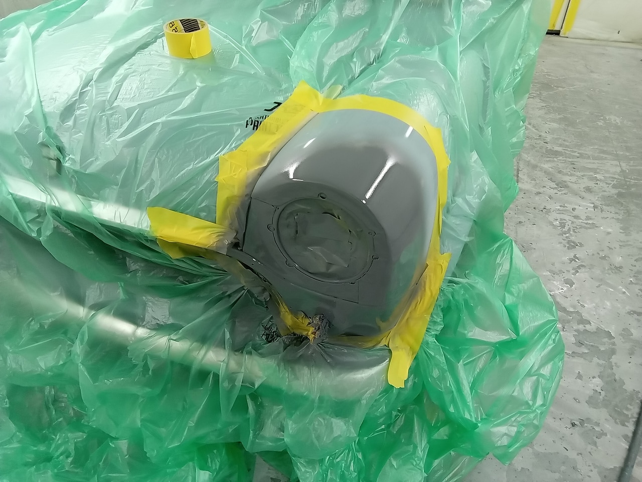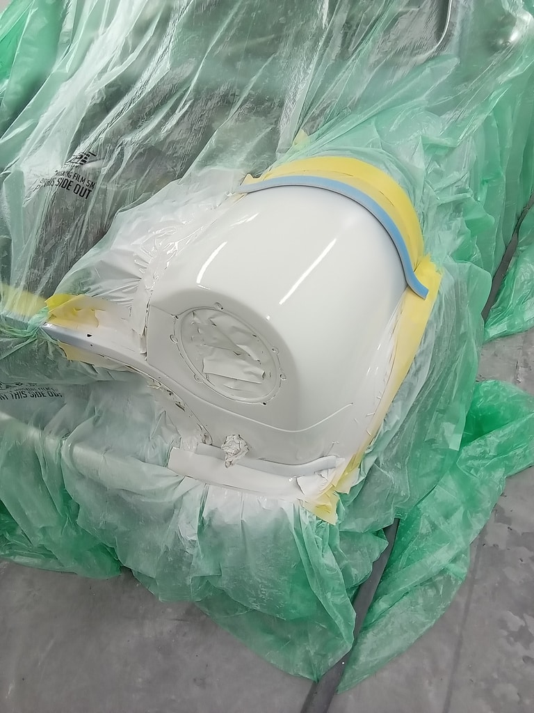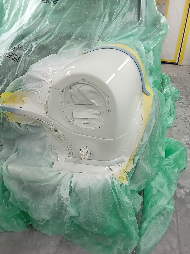 Chris has worked his magic get the area back into shape after a slight accident with the car and its owner. After pulled and adjusted back into shape, Chris could begin levelling, masking up and priming the area before he then begins the process of colour matching with our in-house colour matching camera which can adjust for UV damage, contamination or just fade over time.