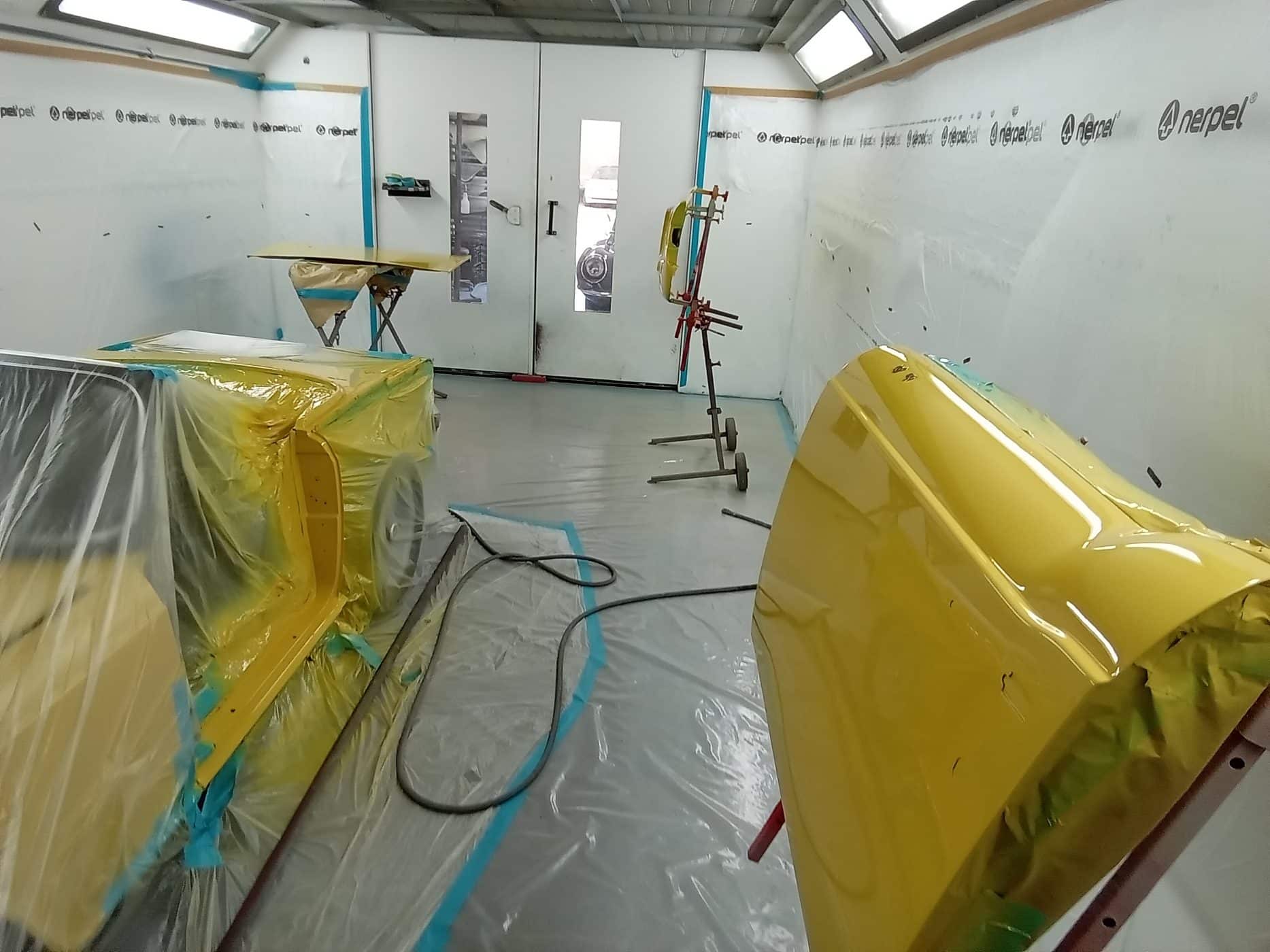 Classic car technician Mauro has been painting our 1973 Triumph Tr6. Before he put a new coat of paint on this eye-catching classic car, he prepped the vehicle before priming it.