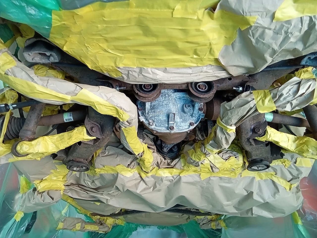 The team have been turning their attention to the underside of the 2002 Ford Thunderbird. After carrying out the mechanical resurrection of the car, our paint and body technician Mauro has been underneath the V8 coupe to get the underside repainted and refinished.