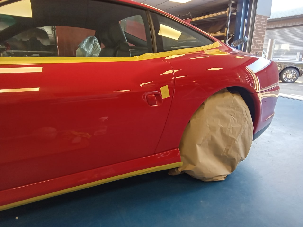 The 1998 Ferrari 550 has been brought over from our secure storage facility for the Bridge Classic Cars paint and body team to do some paintwork repairs on the 1990’s GT car. First off, Adam taped up all of the trim and vents so as to not getting any of the dust from the process into these areas. The team had been given the job of removing a quite larger scratch down the flank of the car, so Adam got to work fixing this. With an array of different sandpapers and pads, along with wet sending the area, Adam could remove the scatch from the clear coat before polishing and buffing the paintwork back to a mirror finish.
