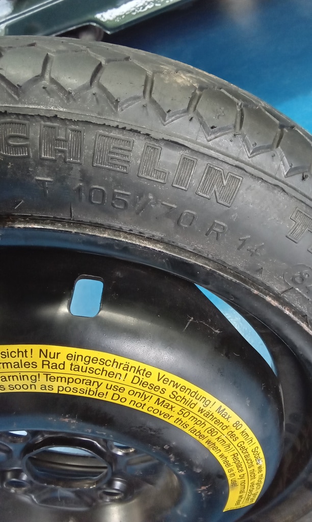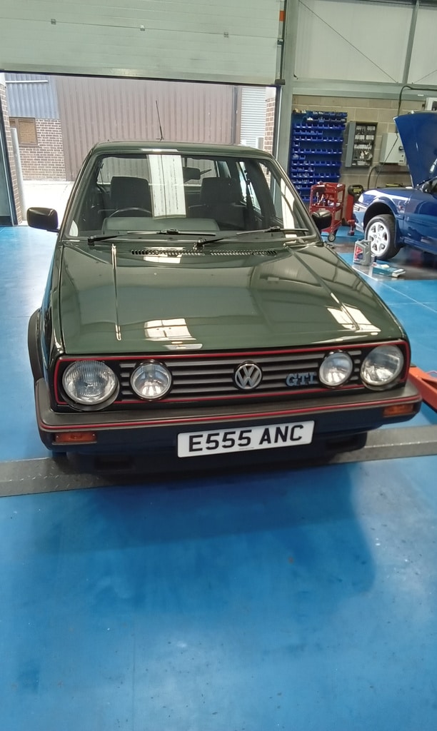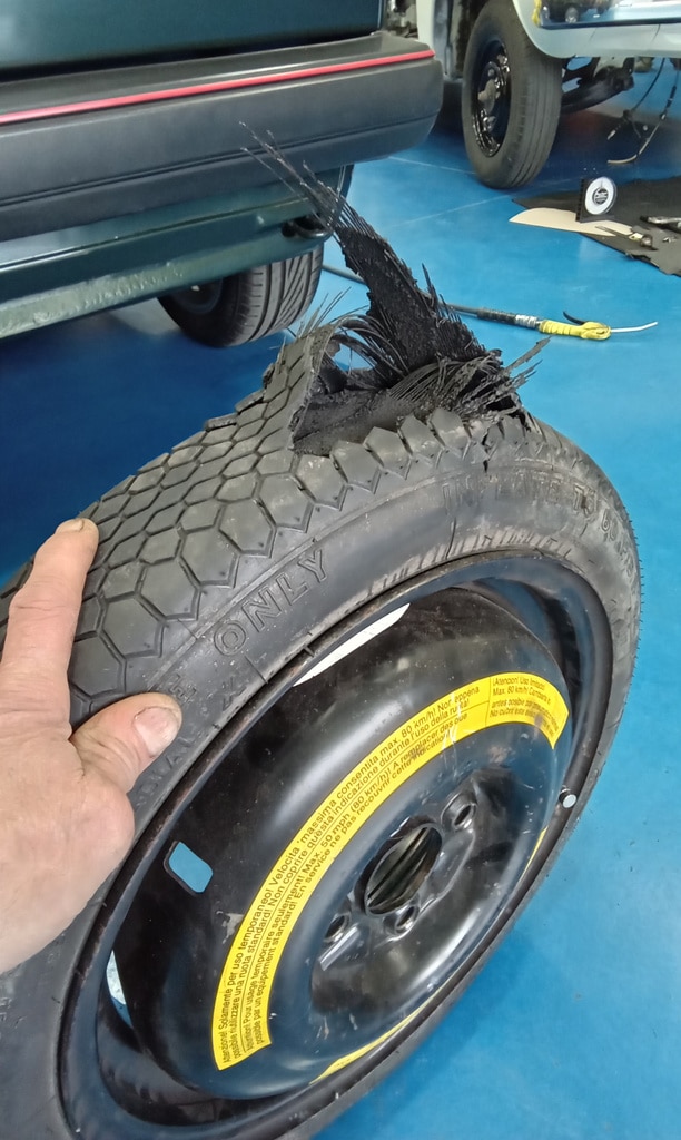 After our 1988 Volkswagen Golf GTi was won by Adam recently, the Bridge Classic Cars team brought the car over to our restoration workshops for Jon, one of our amazing technicians, to get the car ready. As part of the cars PDI, Jon always checks the spare tyre – and found the cars original one was blown so a new one was ordered up and Jon could finish off his checkpoints and top up the car with synthetic fuel.