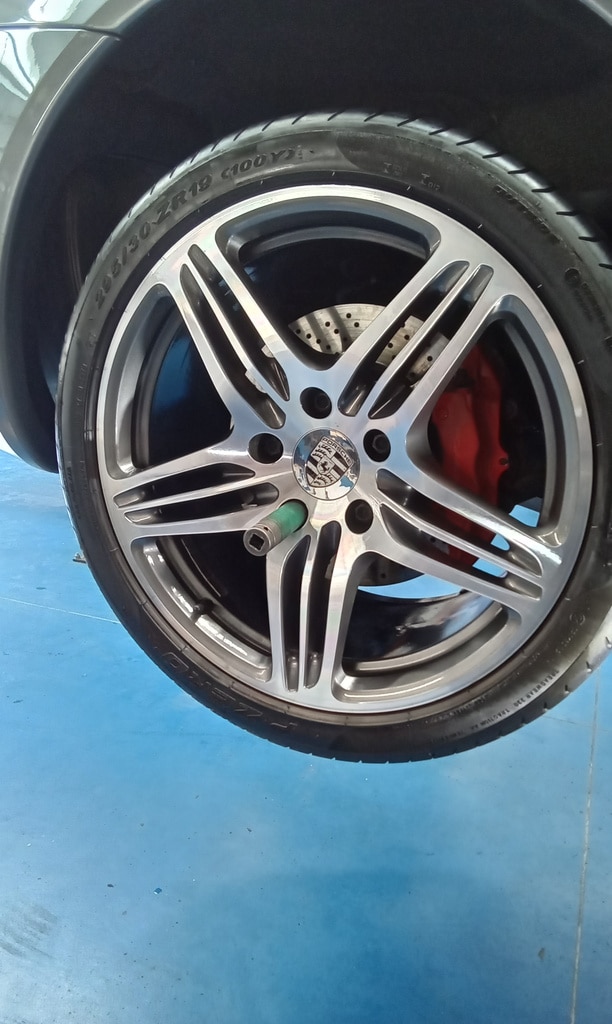 Jonn investigated a rattle coming from the offside rear of our 2007 Porsche 911 and identified the backplate as the source. He removed the wheel and calliper, then de-adjusted the handbrake shoes to allow for the removal of the disc. With the disc off, he cleaned the handbrake shoes and inspected the dust shield, which was found to be corroded around the bolt holes.