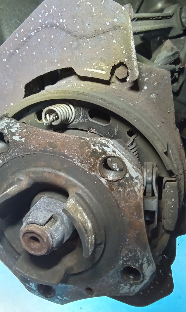 To address this, the bolts securing the shield were heated for removal. One bolt snapped during this process, but it did not affect the outcome. Jonn modified the backplate as necessary, cleaned out the bolt holes, and applied lubricant to the bolts. Washers were used to secure the backplate in place. The disc was then refitted, followed by the calliper, with Loctite applied to the bolts for security. Jonn adjusted the handbrake shoes to the correct setting and refitted the wheel, tightening it to a torque of 160Nm.