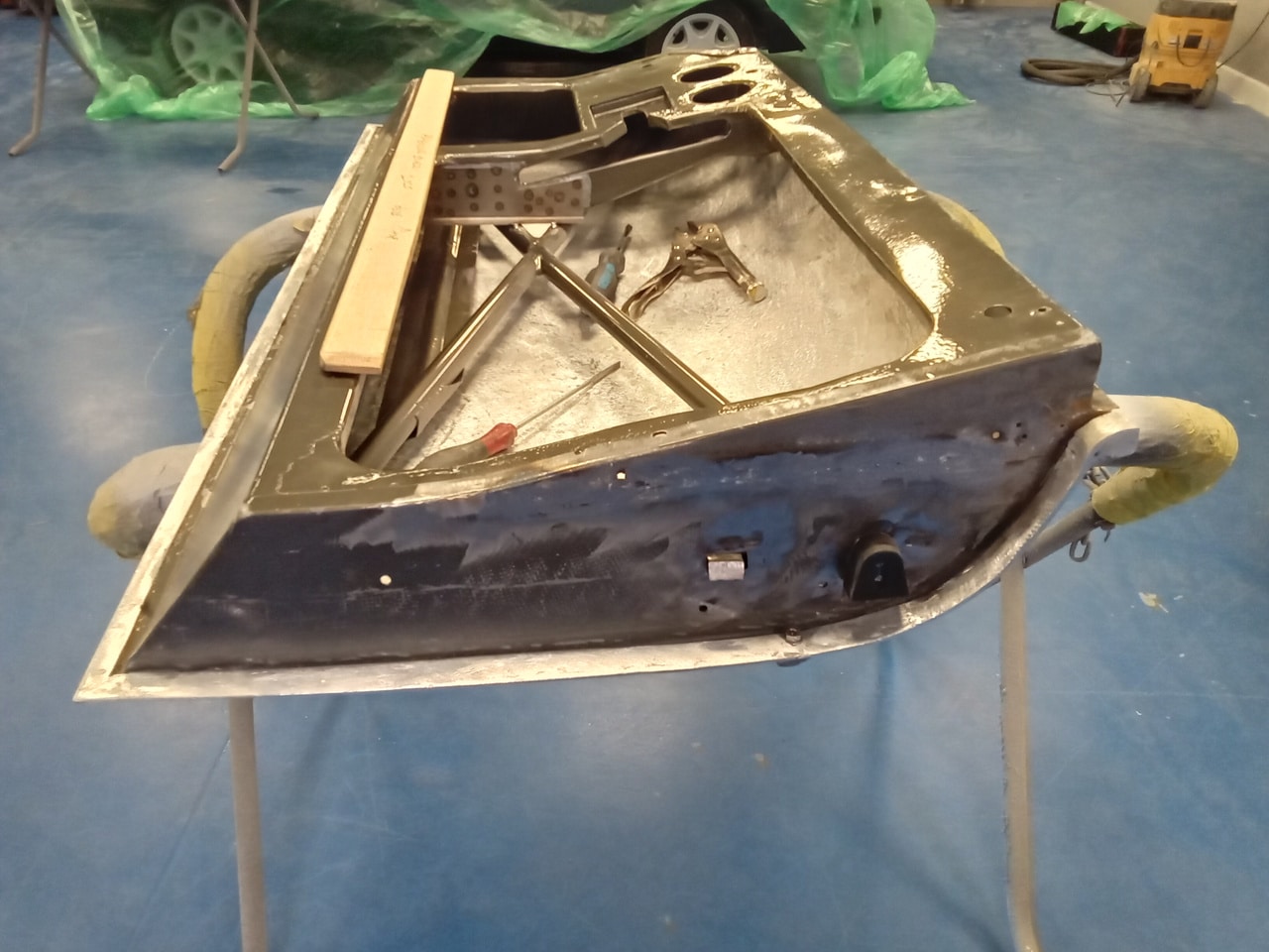 The Bridge Classic Cars paint and body team have worked their magic on getting the doors and inside of the bodyshell prepped and ready for paint. The team will clean down each piece to get everything just right before laying down the paint and letting it cure.