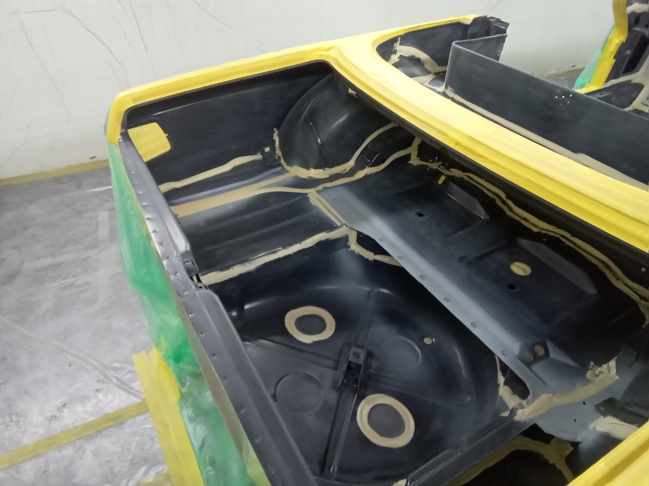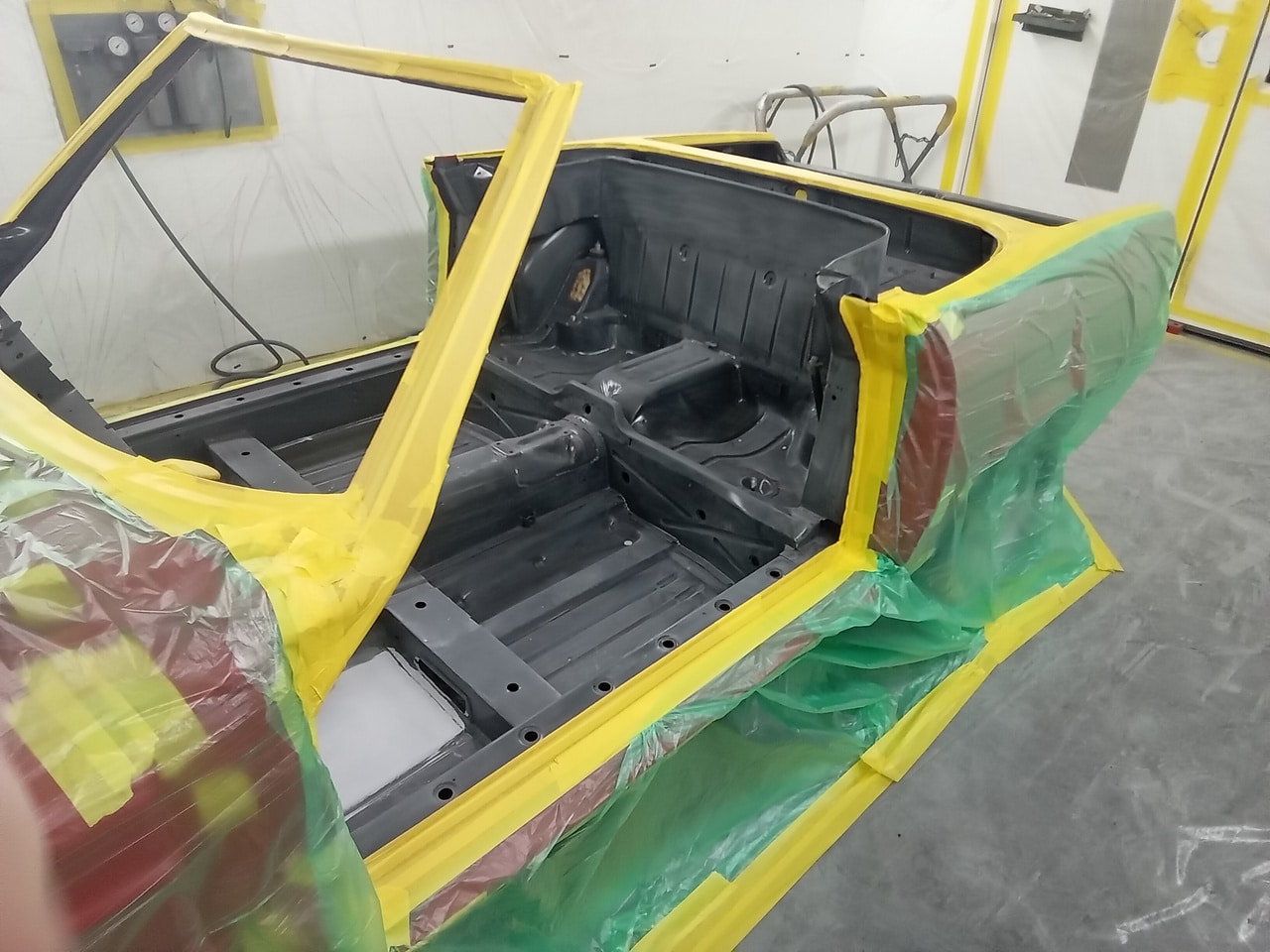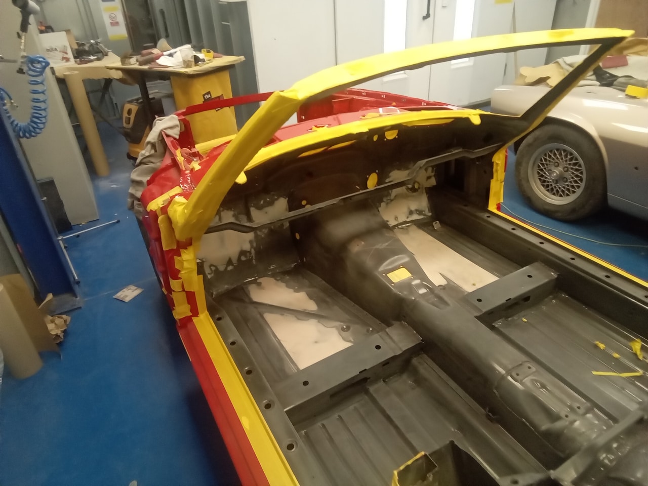 The paint and body team have had the 1978 Mercedes 350SL in our in-house paint booth for our paint and body technician Chris to take the bodyshell to the next level. Chris has carefully cleaned down the floor and boot pans before then seam sealing all the joints and then applied a heavy duty durable satin black DTM.
