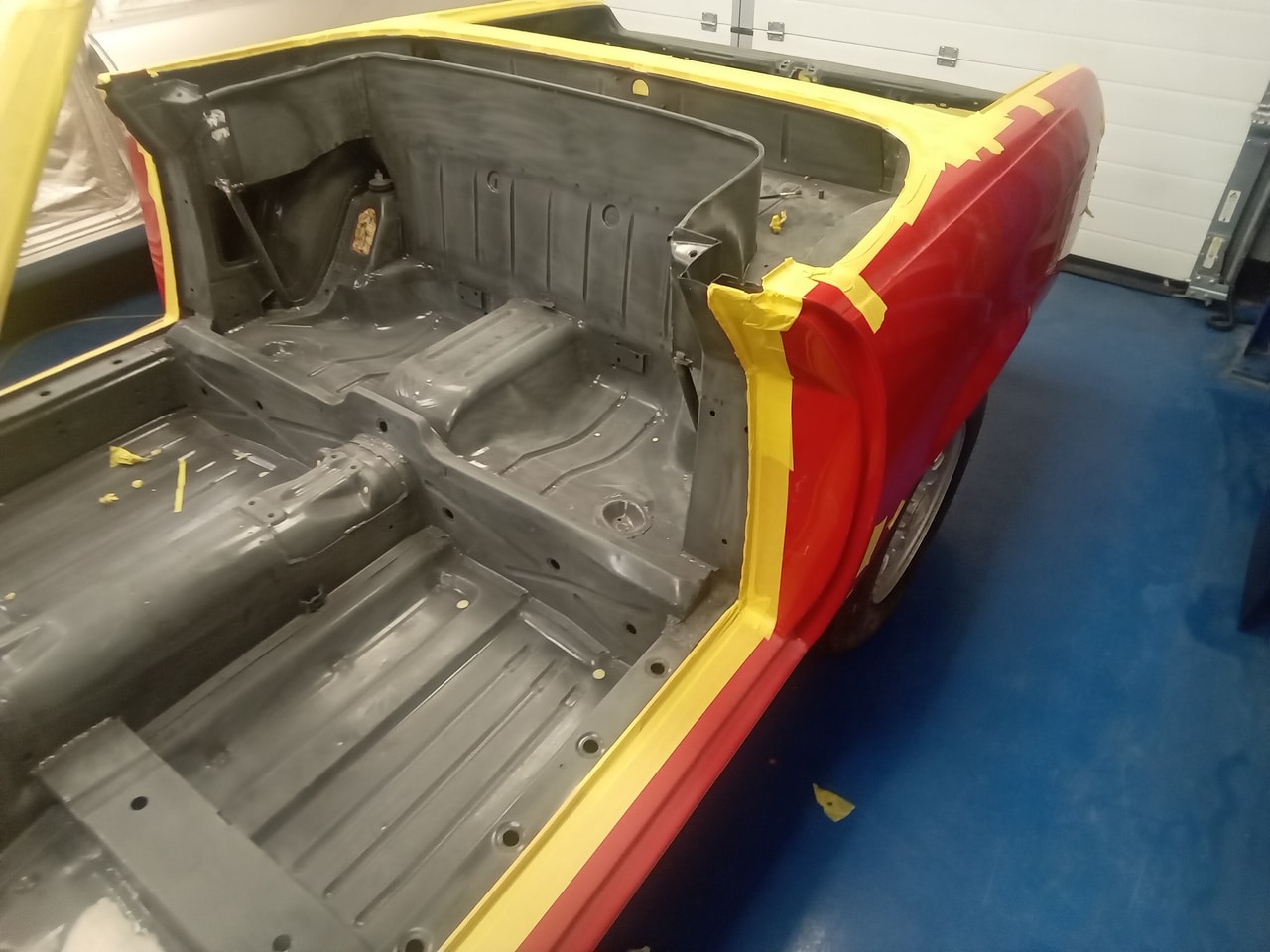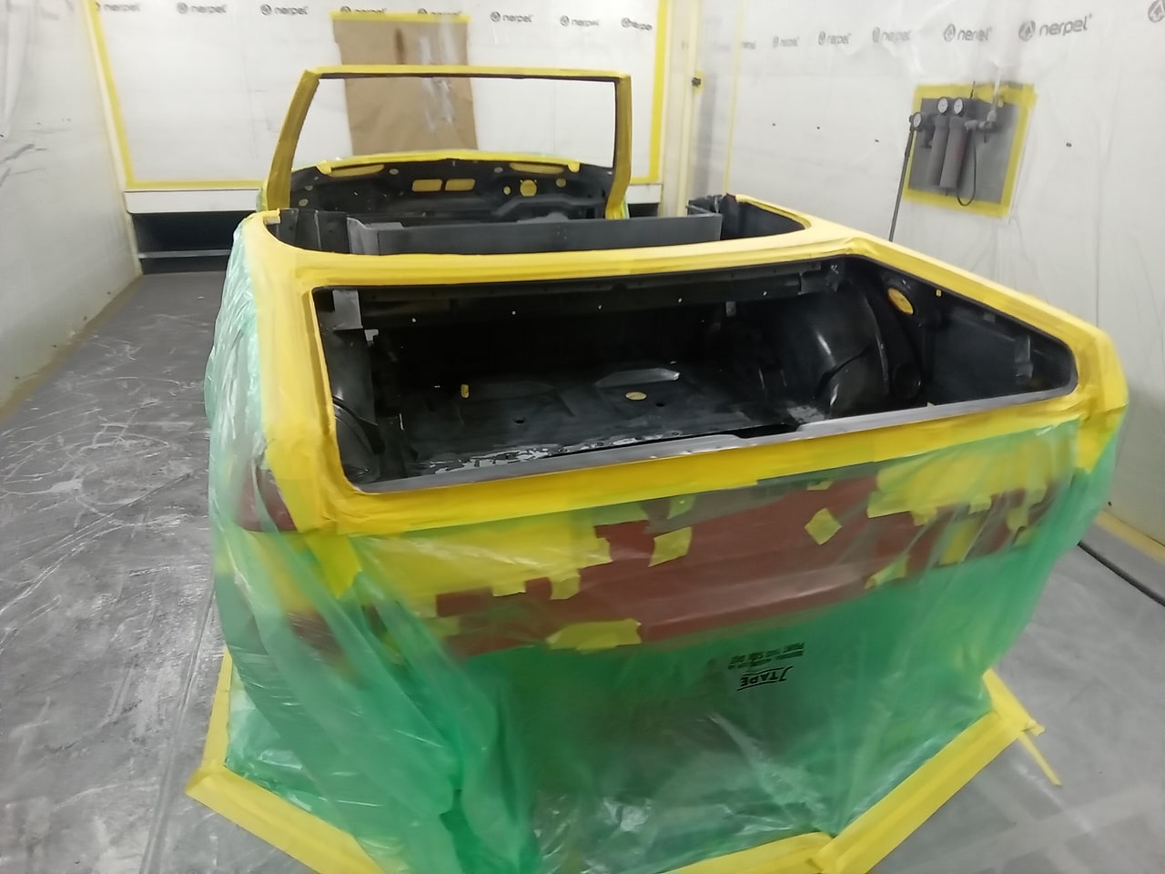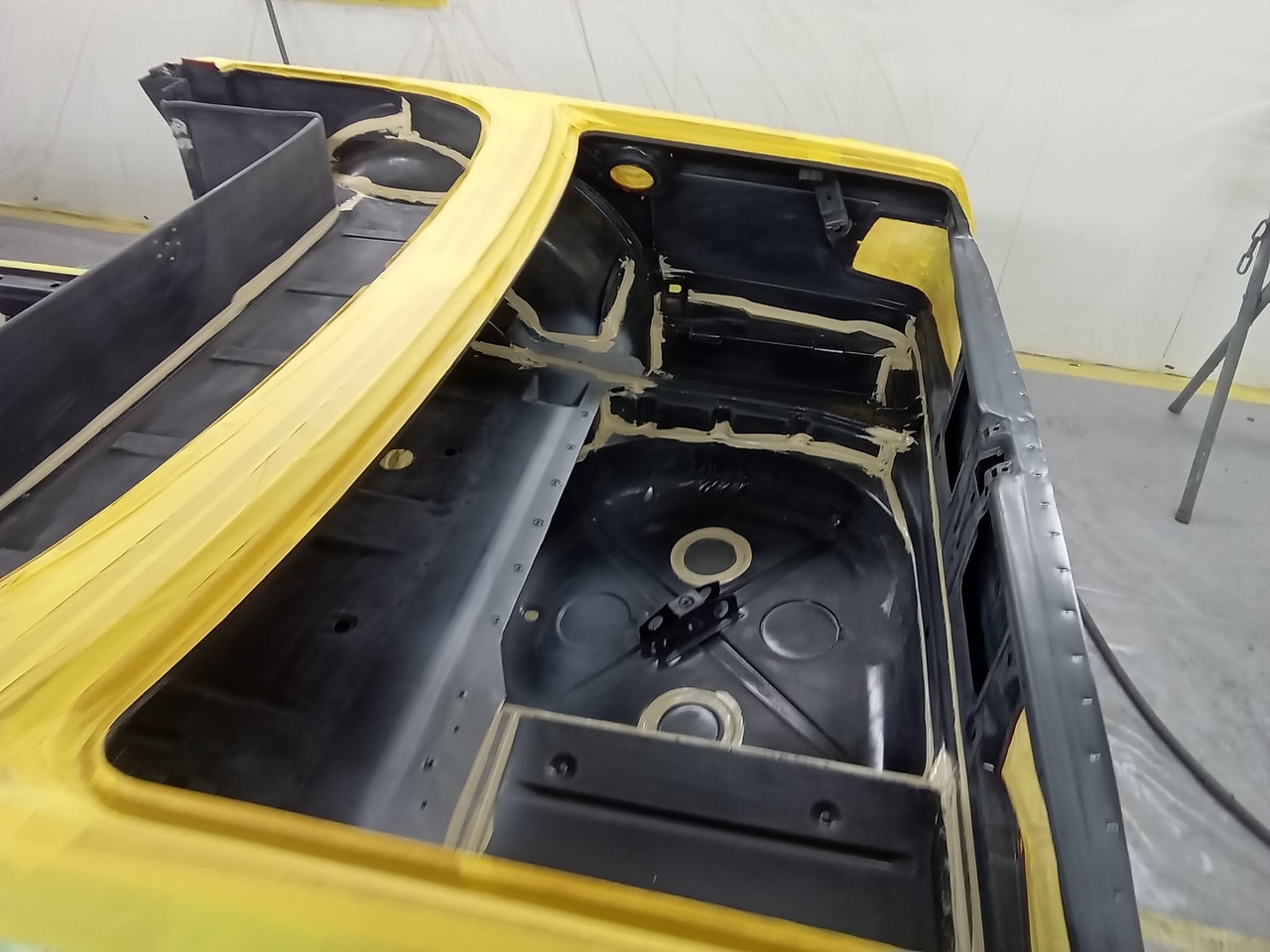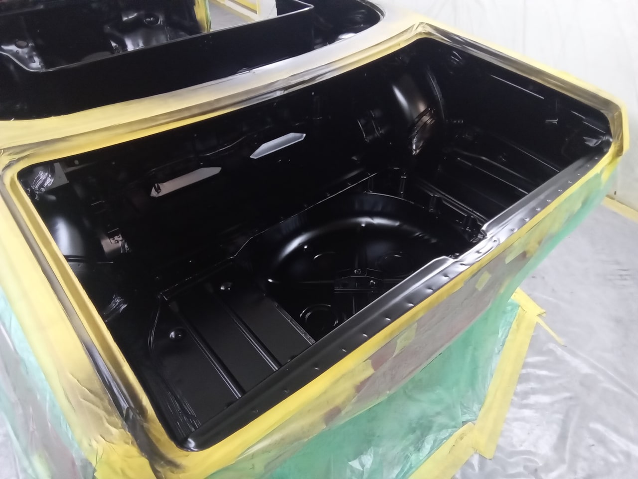 The paint and body team have had the 1978 Mercedes 350SL in our in-house paint booth for our paint and body technician Chris to take the bodyshell to the next level. Chris has carefully cleaned down the floor and boot pans before then seam sealing all the joints and then applied a heavy duty durable satin black DTM.