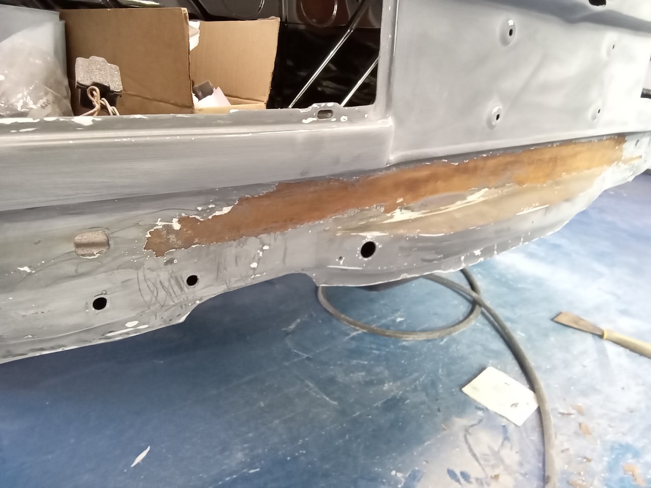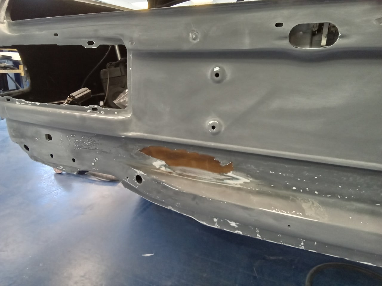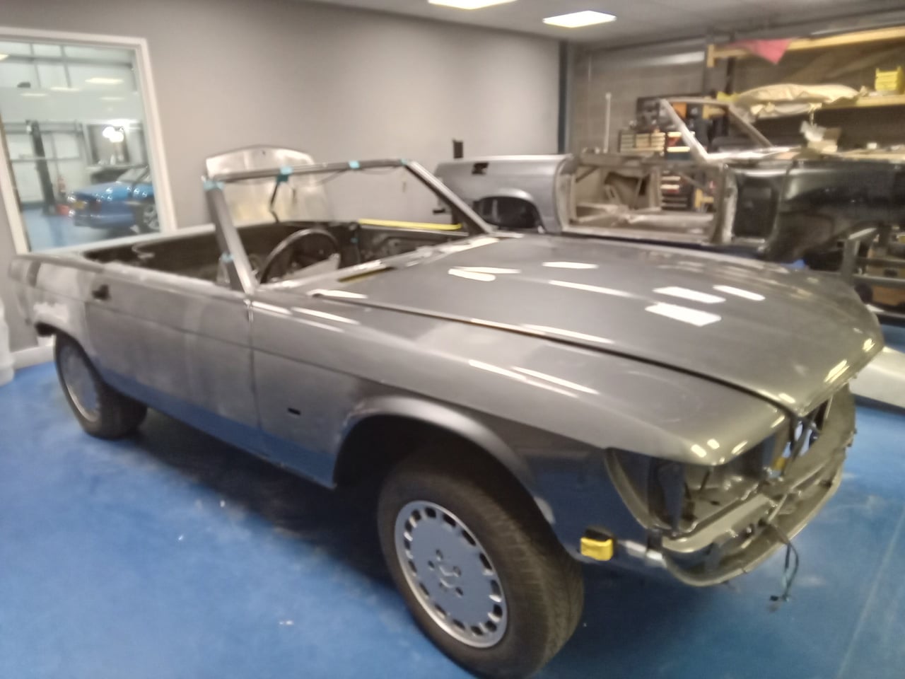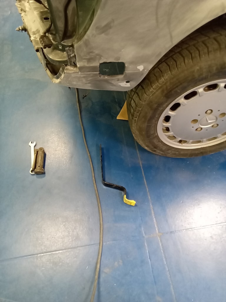 Mauro inspected our 1987 Mercedes 500 SL and noted some rust present on the rear panel. He also identified a crack in the driver side front wing that will require welding to restore its strength and appearance – so the team are getting to work on getting this classic V8 droptop back to how it should be.