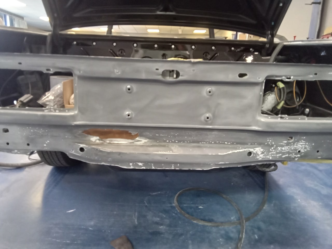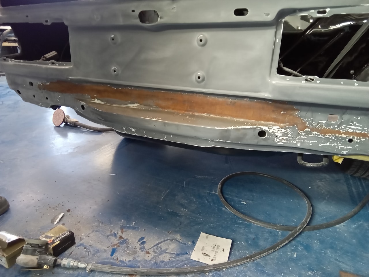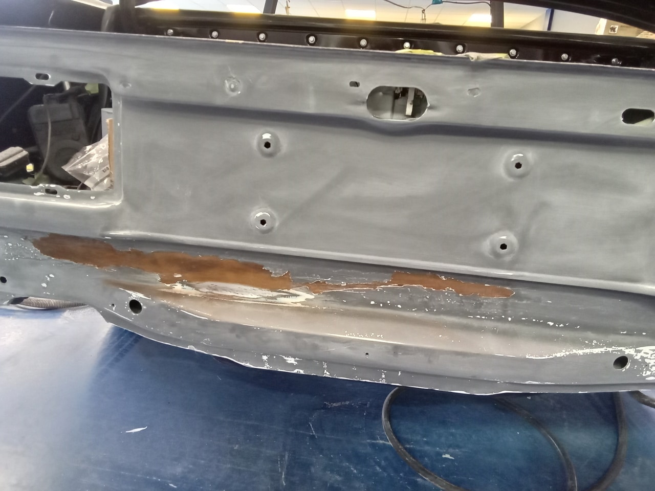 Mauro inspected our 1987 Mercedes 500 SL and noted some rust present on the rear panel. He also identified a crack in the driver side front wing that will require welding to restore its strength and appearance – so the team are getting to work on getting this classic V8 droptop back to how it should be.