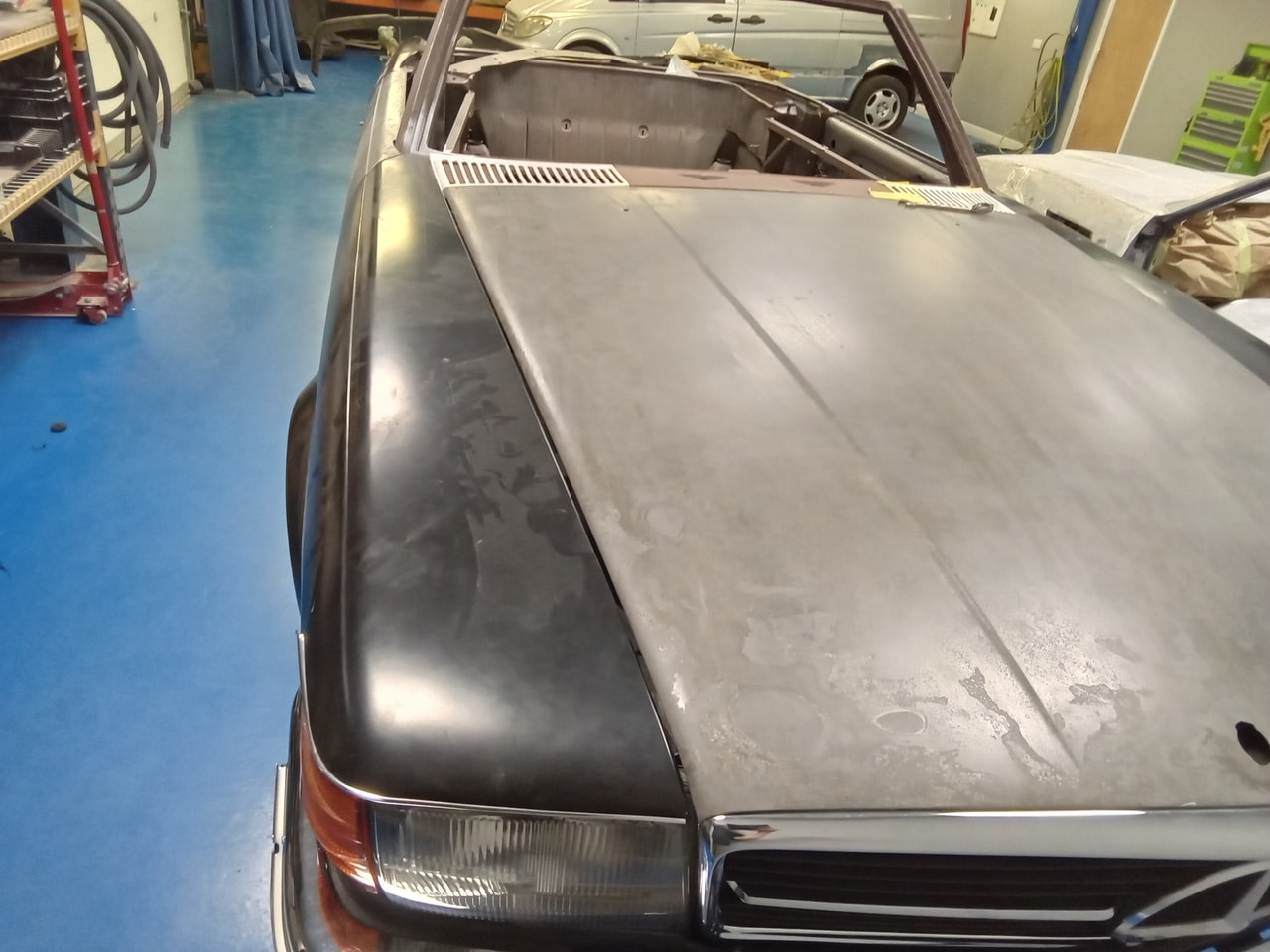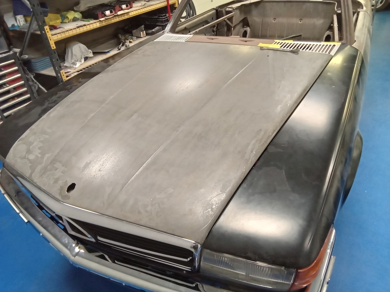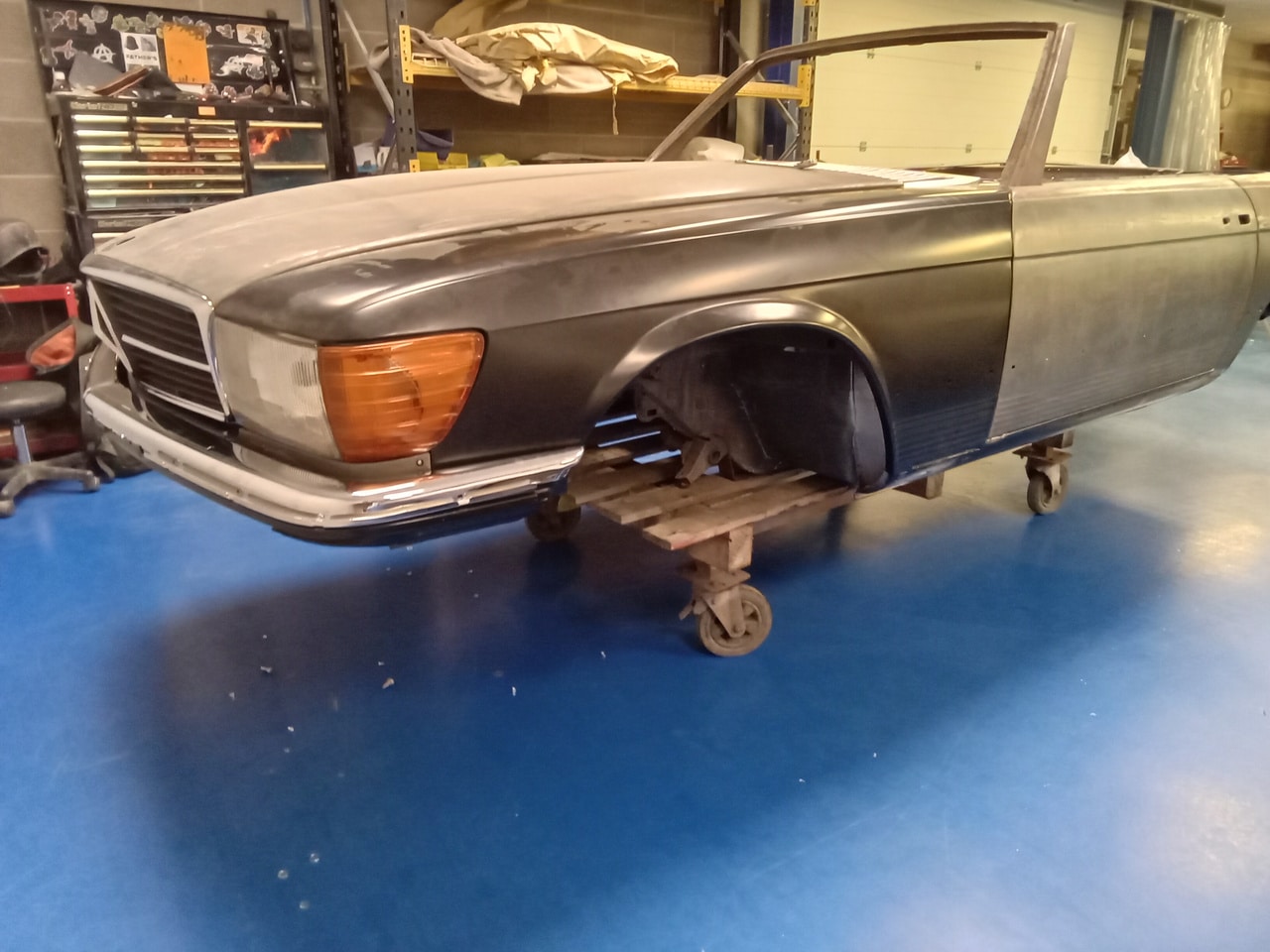 Priming our 1978 Mercedes 350SL for paint.