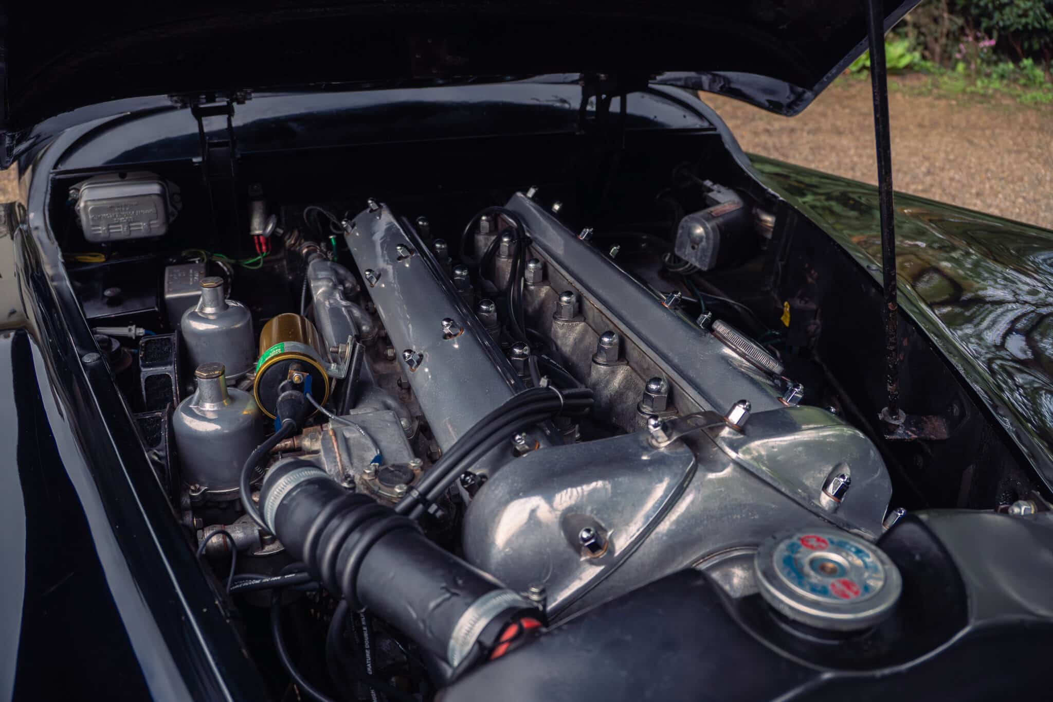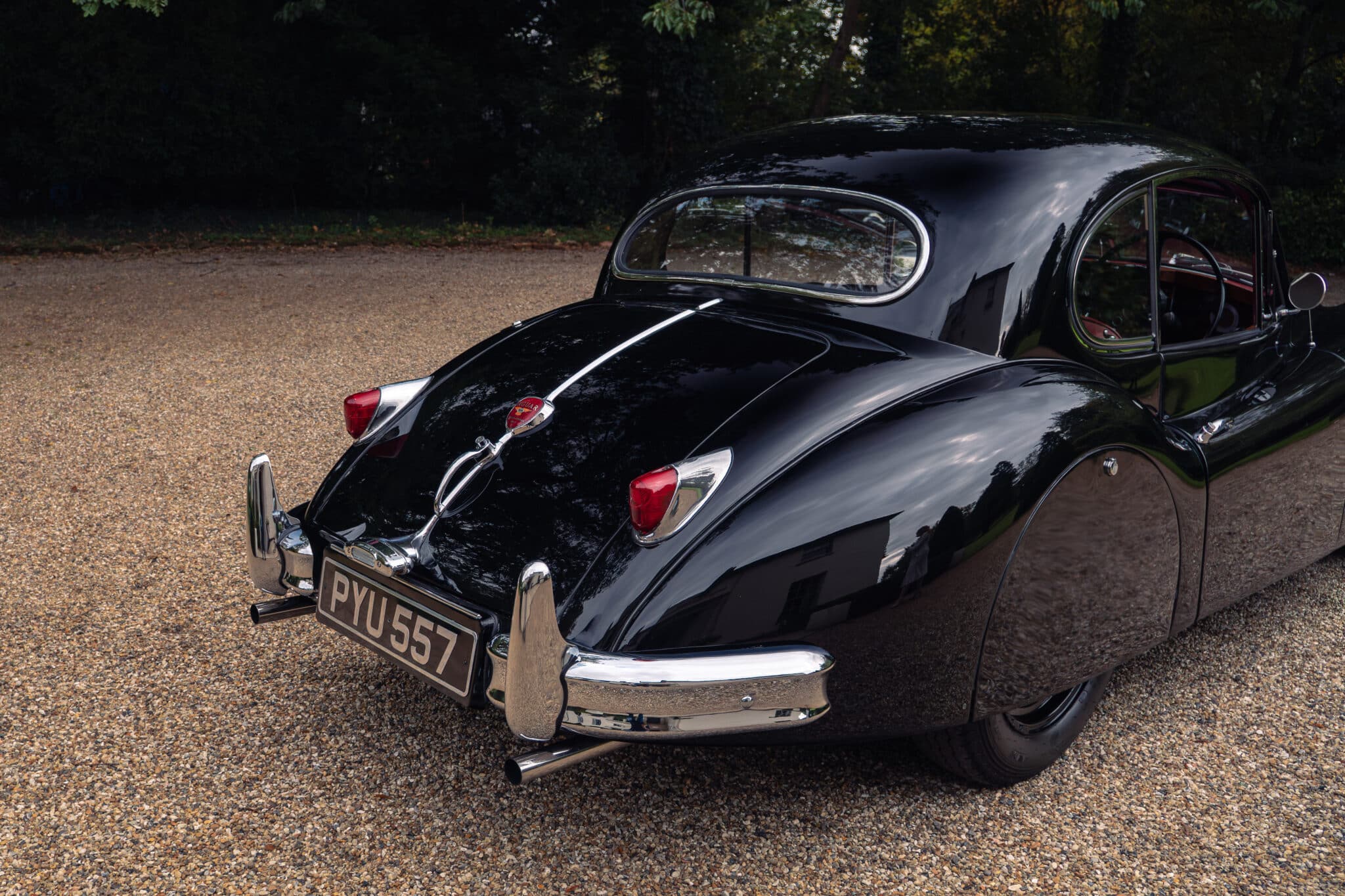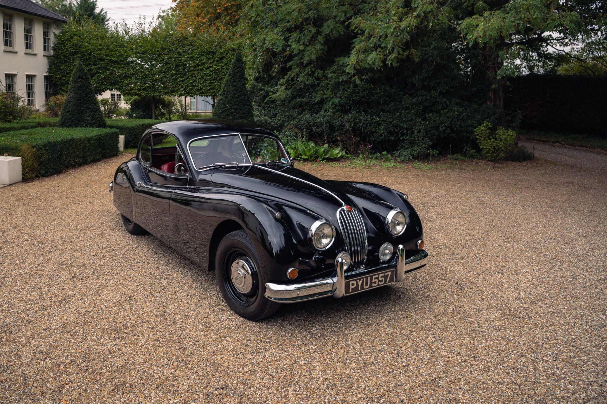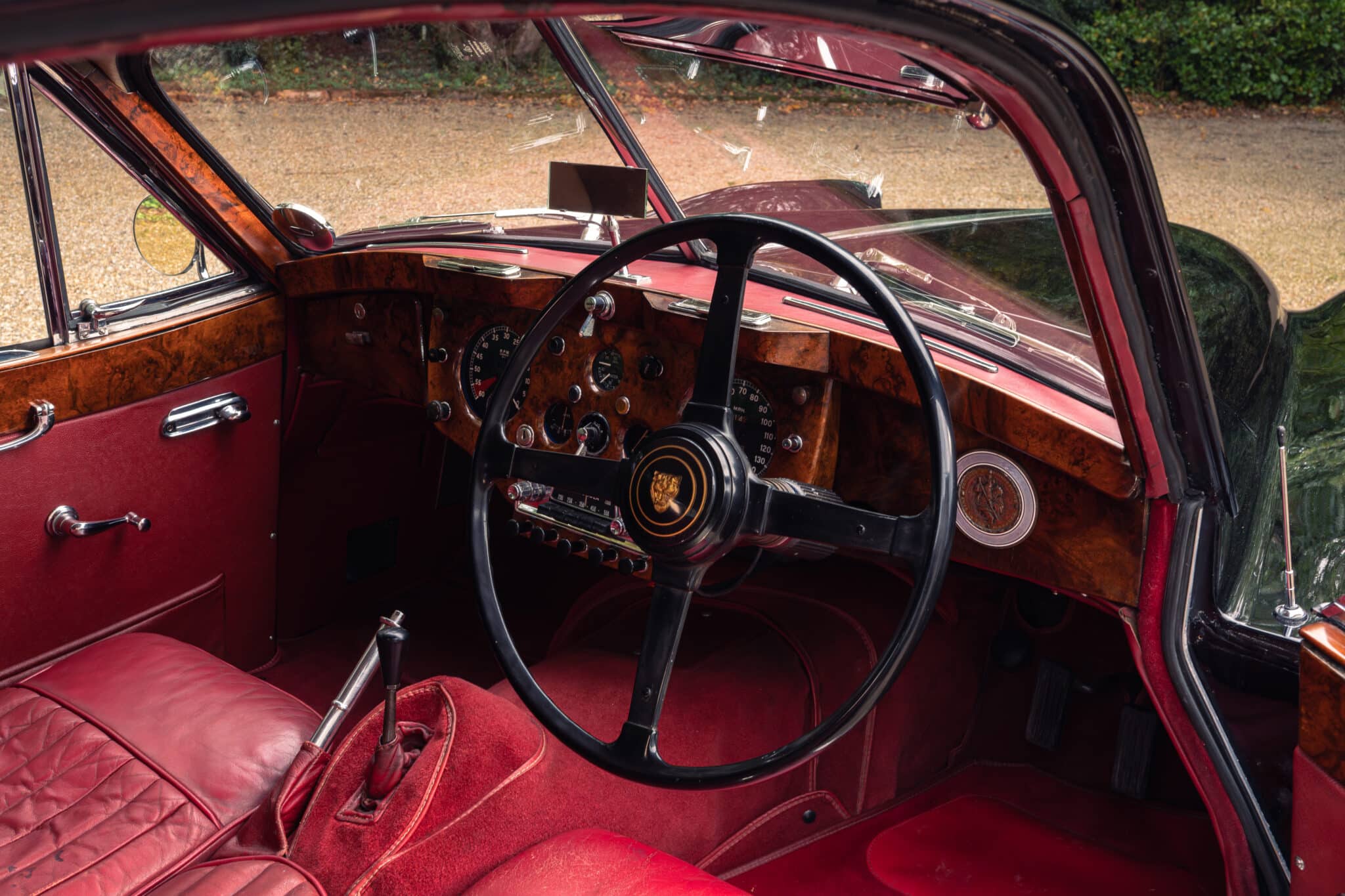 Our XK140 has covered around 76,000 miles from new and remains extremely original. It is finished in its original Black with Red leather upholstery and has been well cared for over the decades, with documented maintenance covering much of its life.