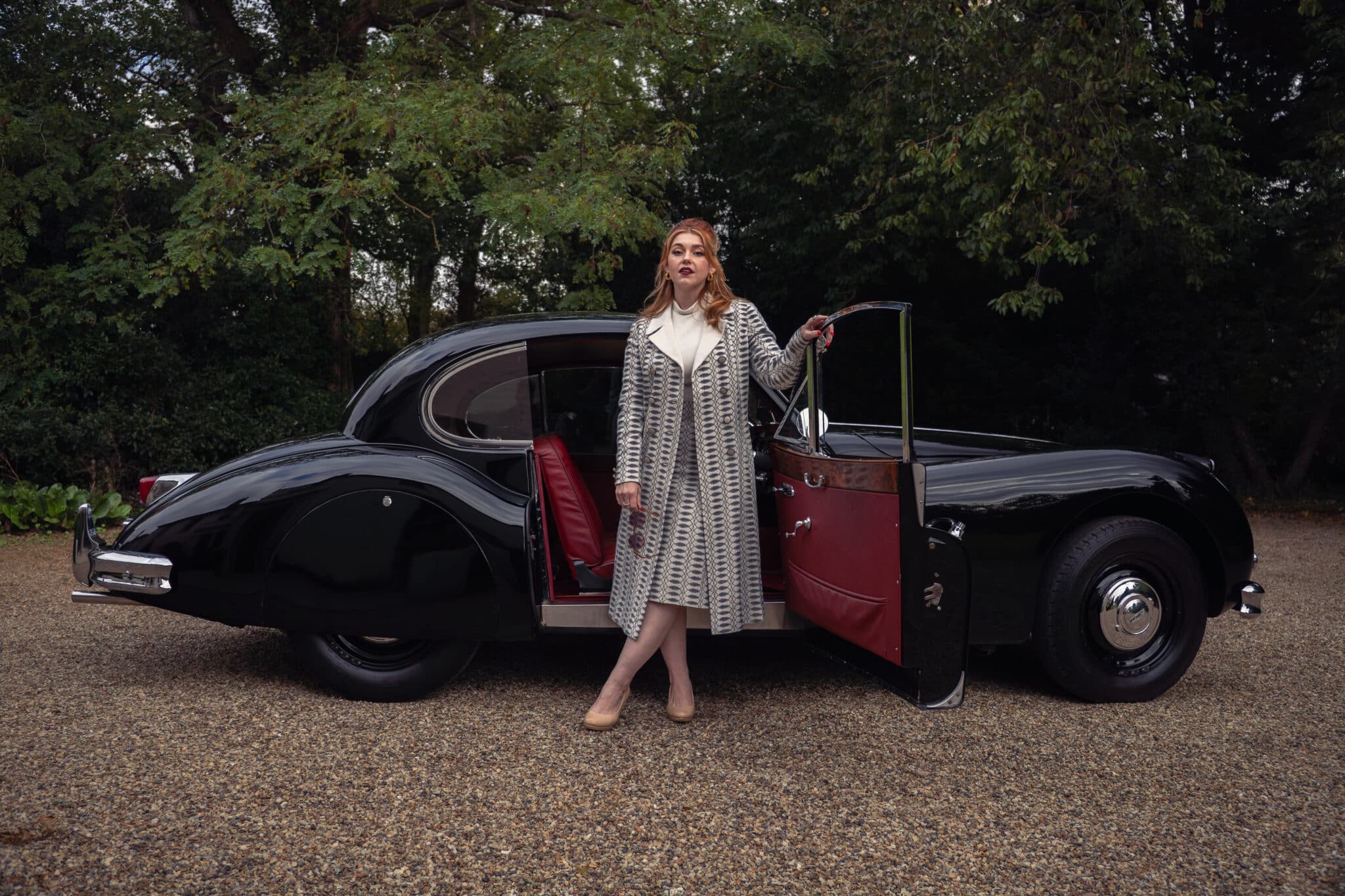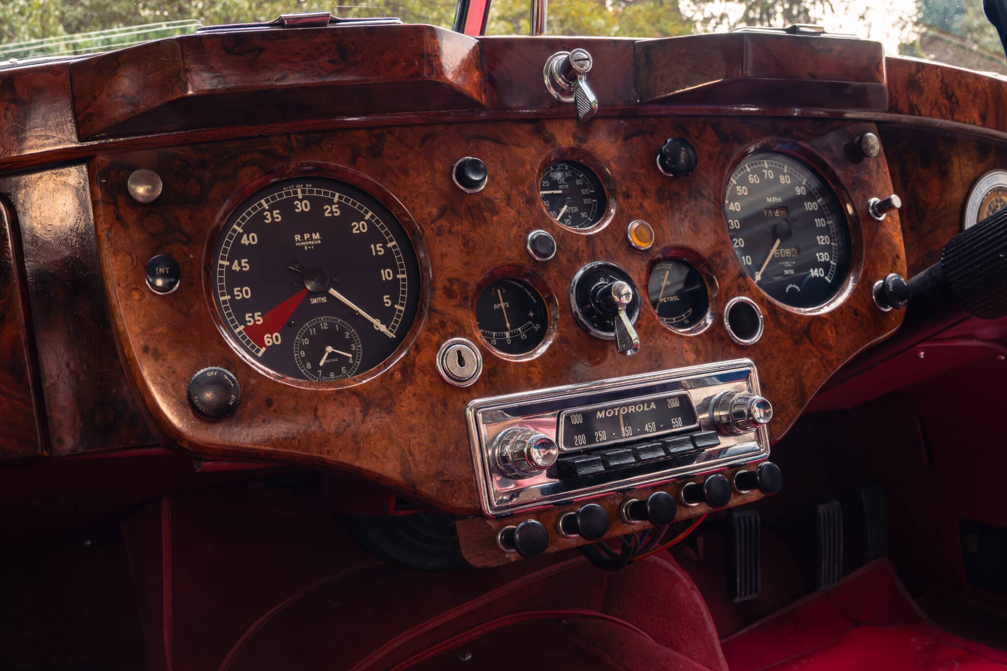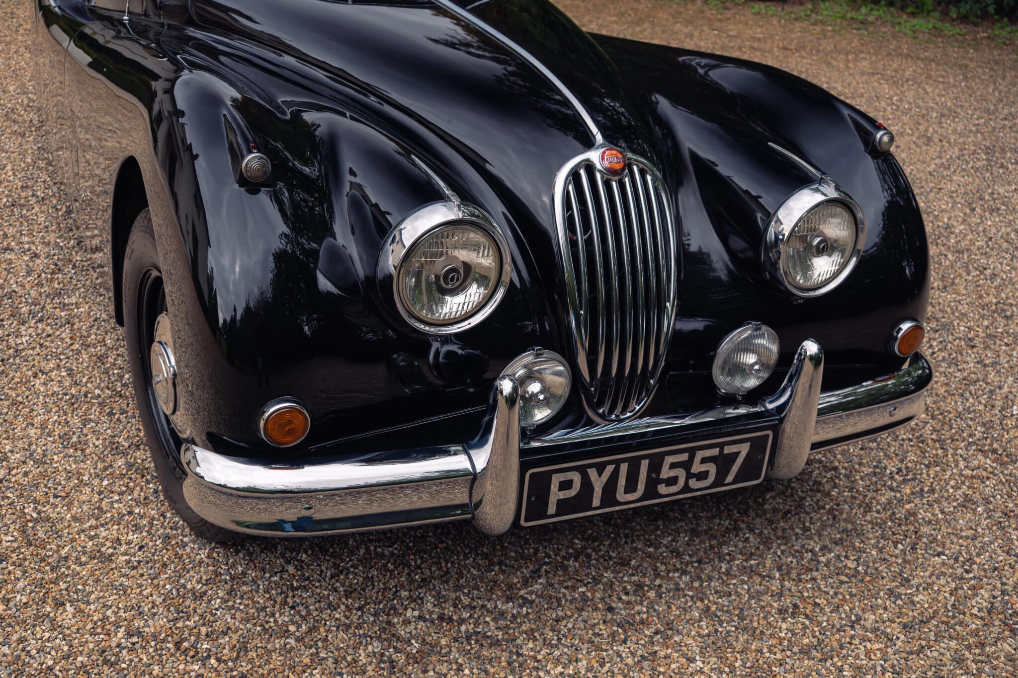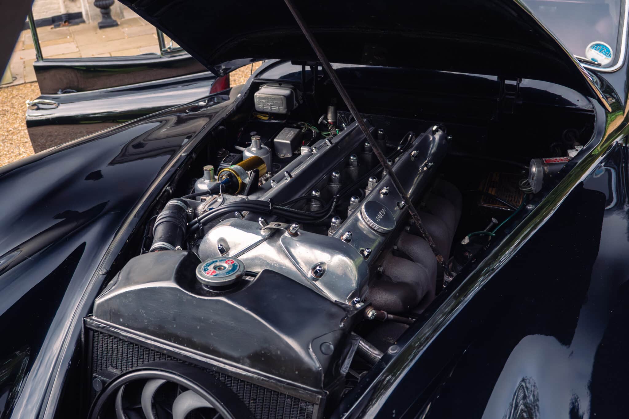 Our XK140 has covered around 76,000 miles from new and remains extremely original. It is finished in its original Black with Red leather upholstery and has been well cared for over the decades, with documented maintenance covering much of its life.
