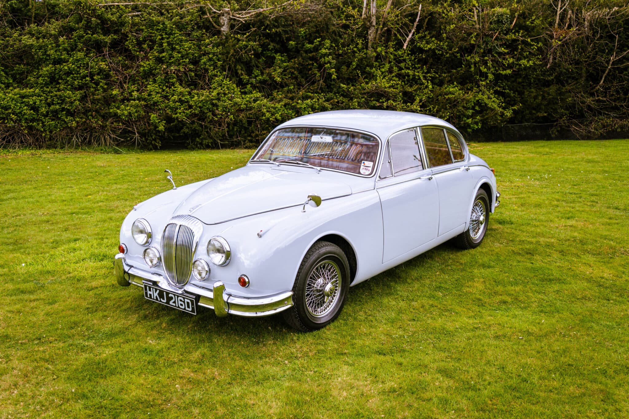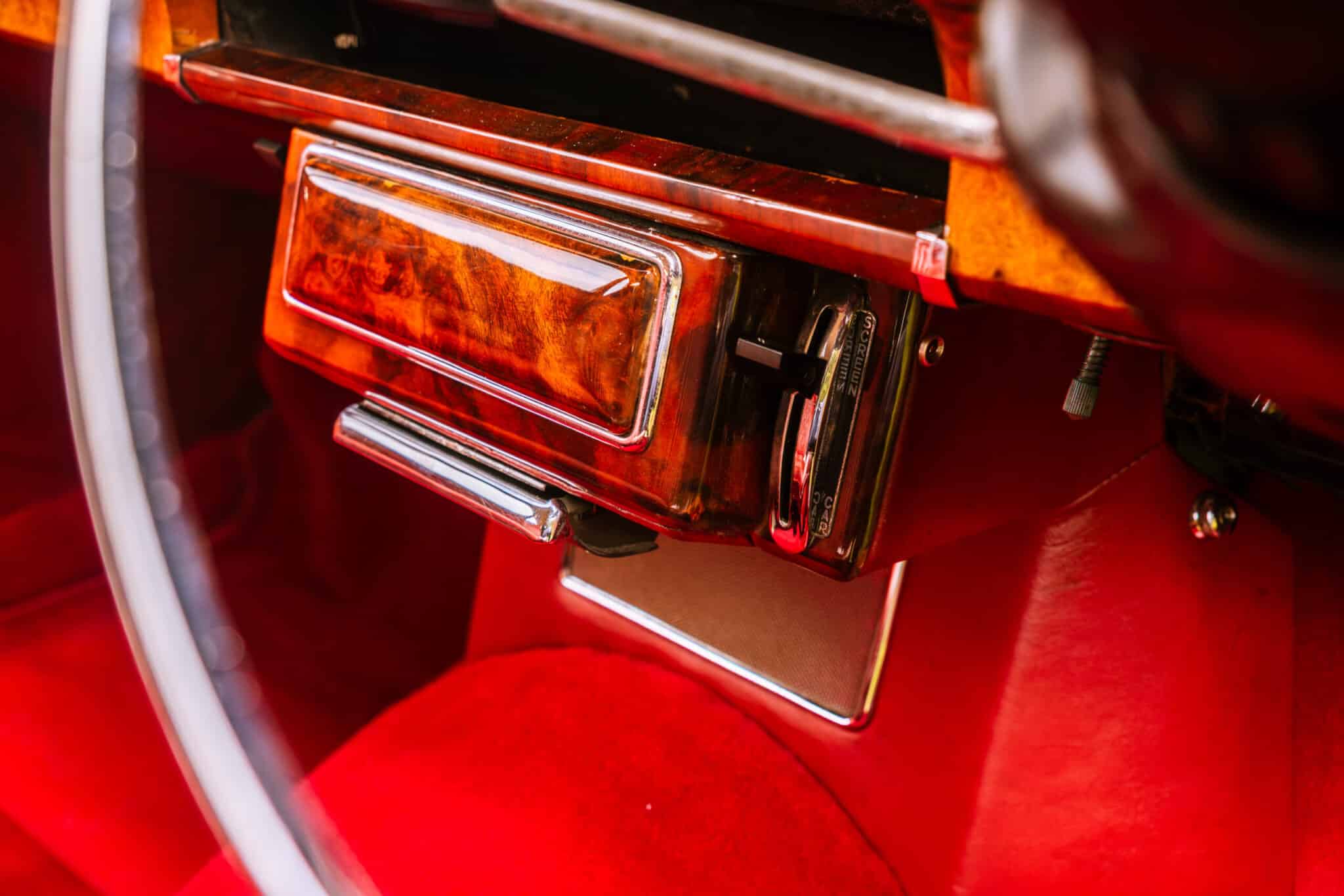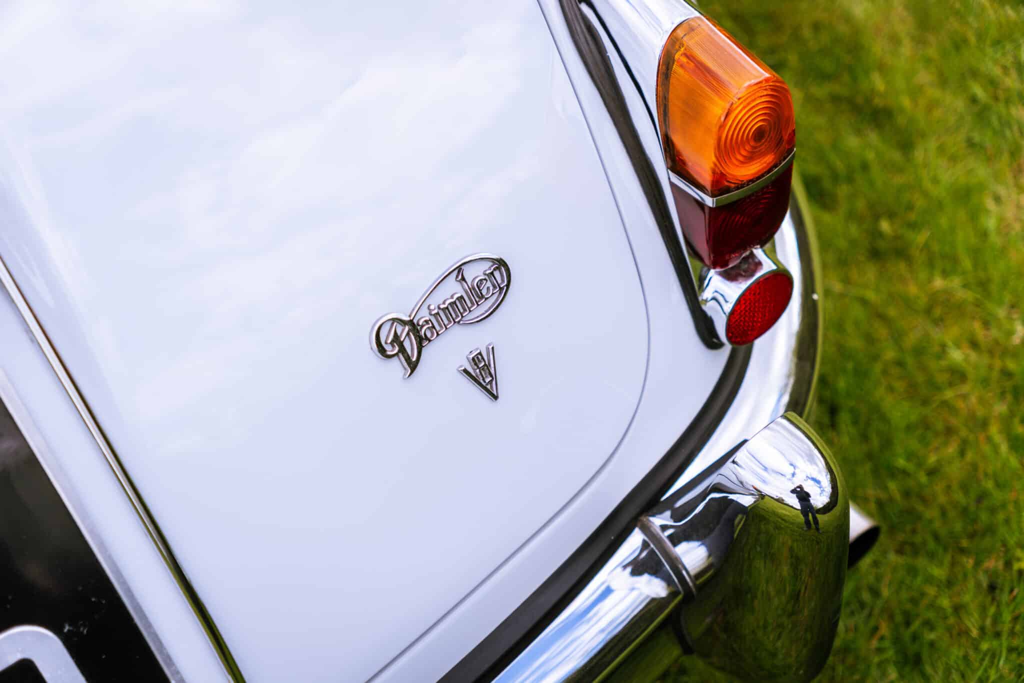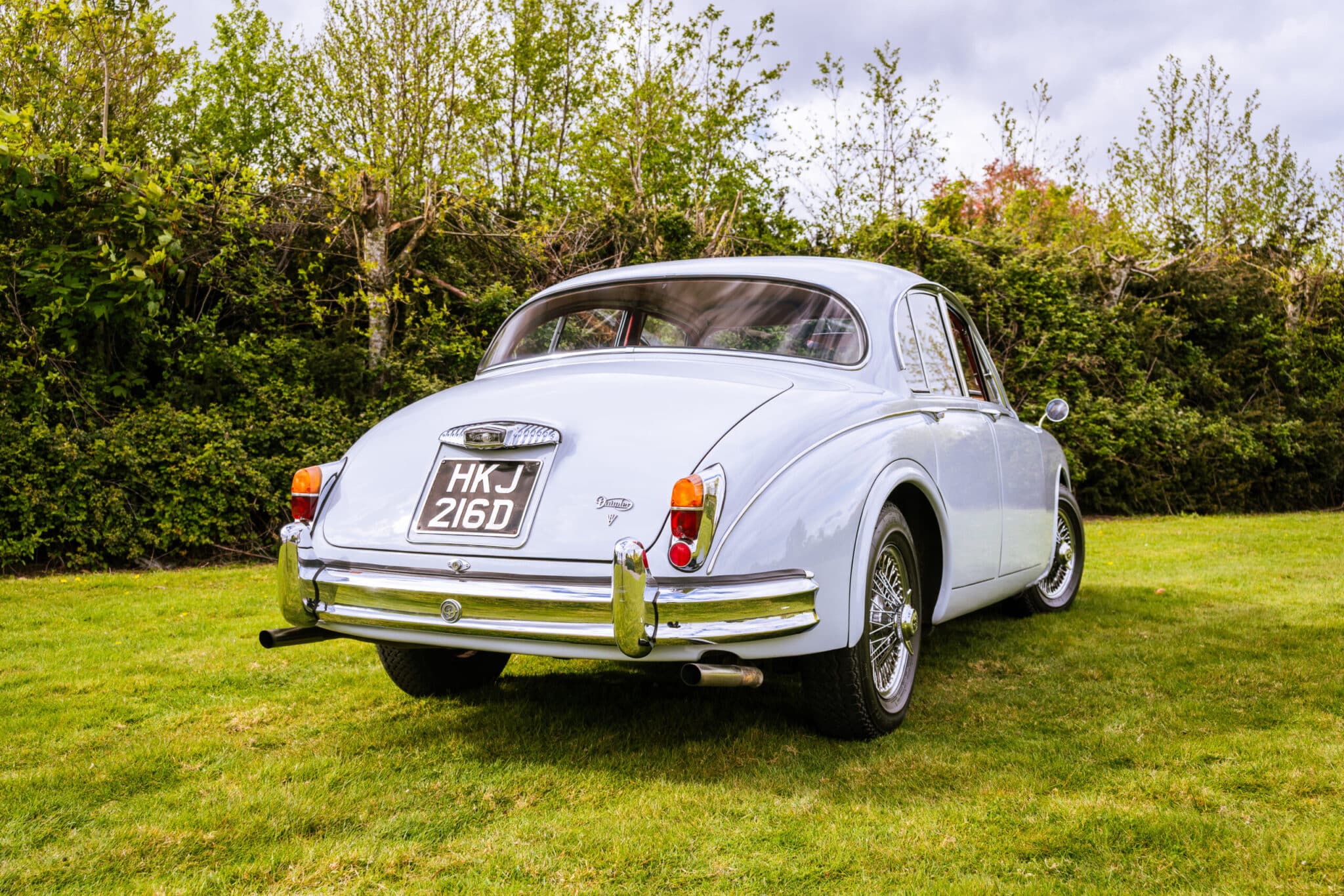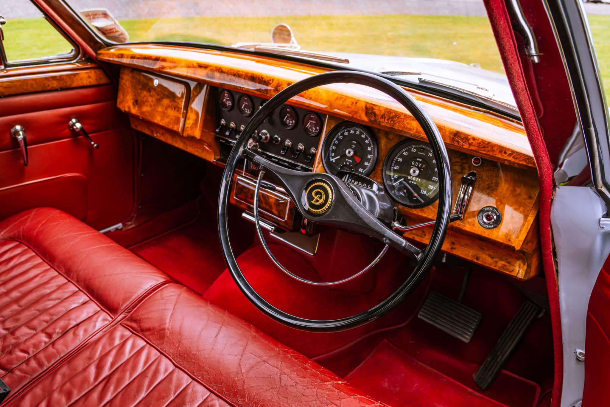 Our 1966 Daimler V8 250 is finished in an interesting light blue/grey with a red leather interior.