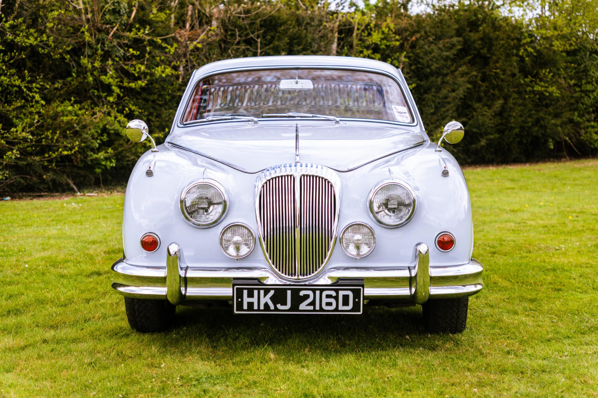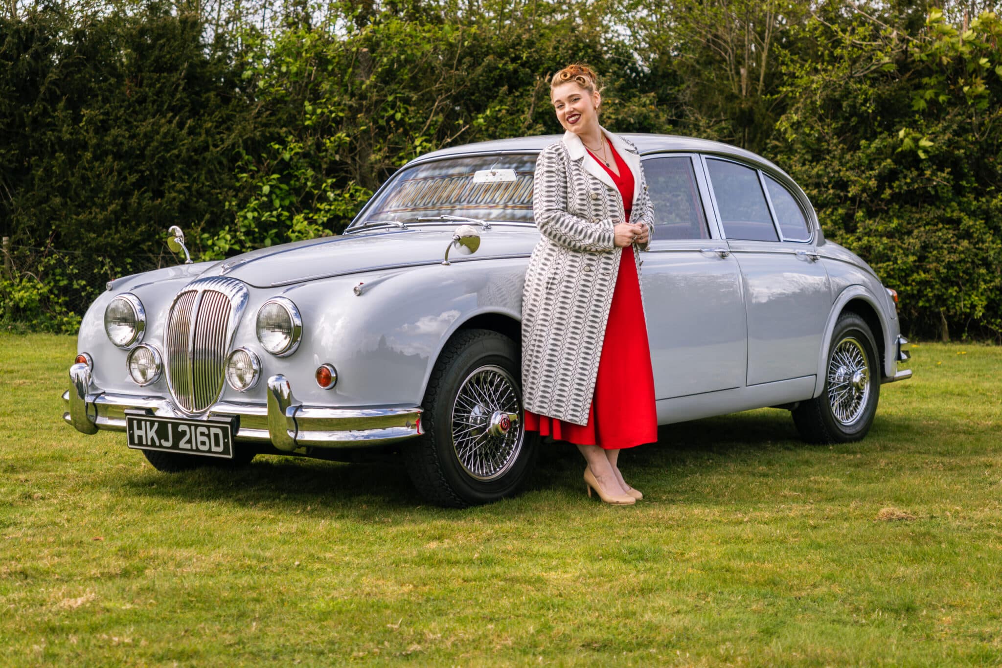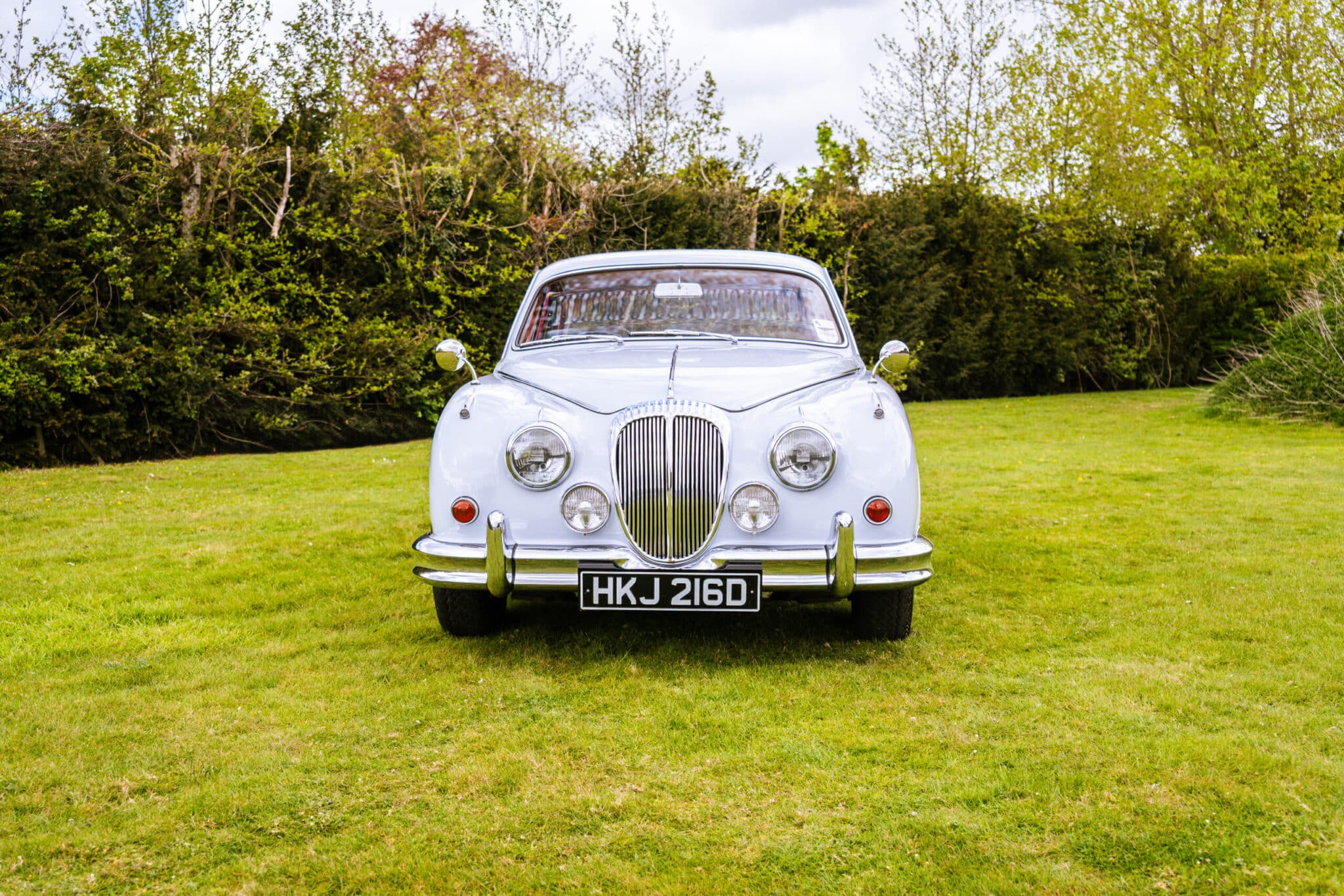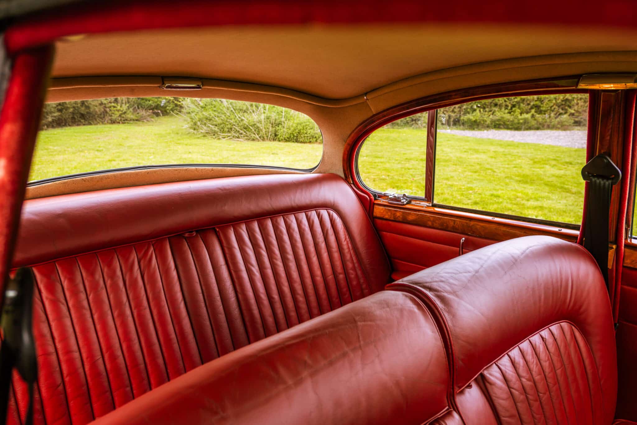 Our 1966 Daimler V8 250 is finished in an interesting light blue/grey with a red leather interior.