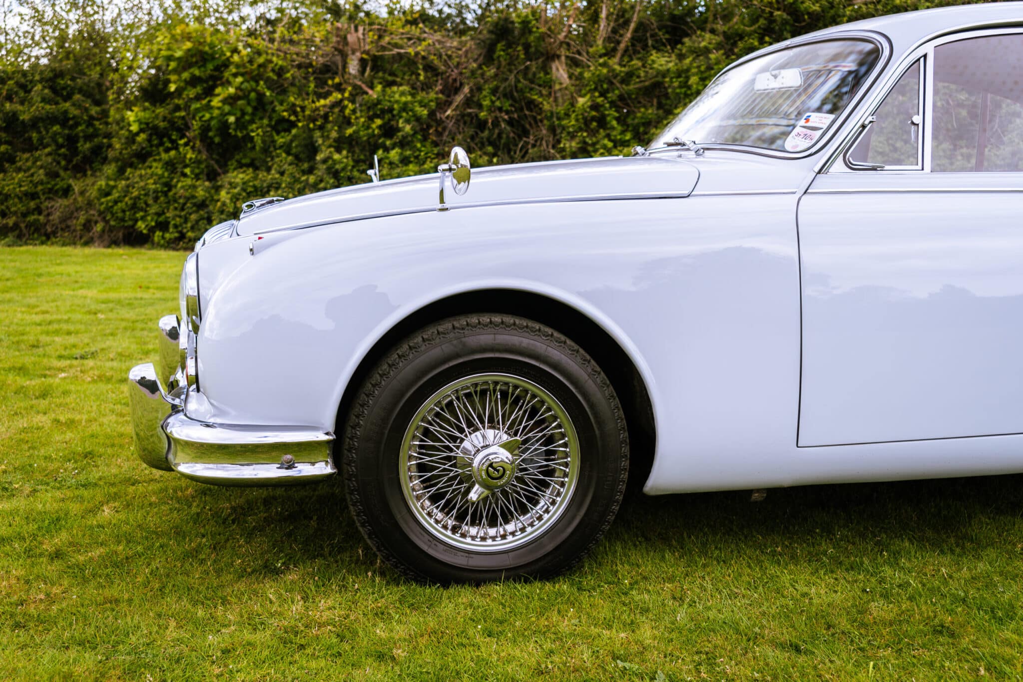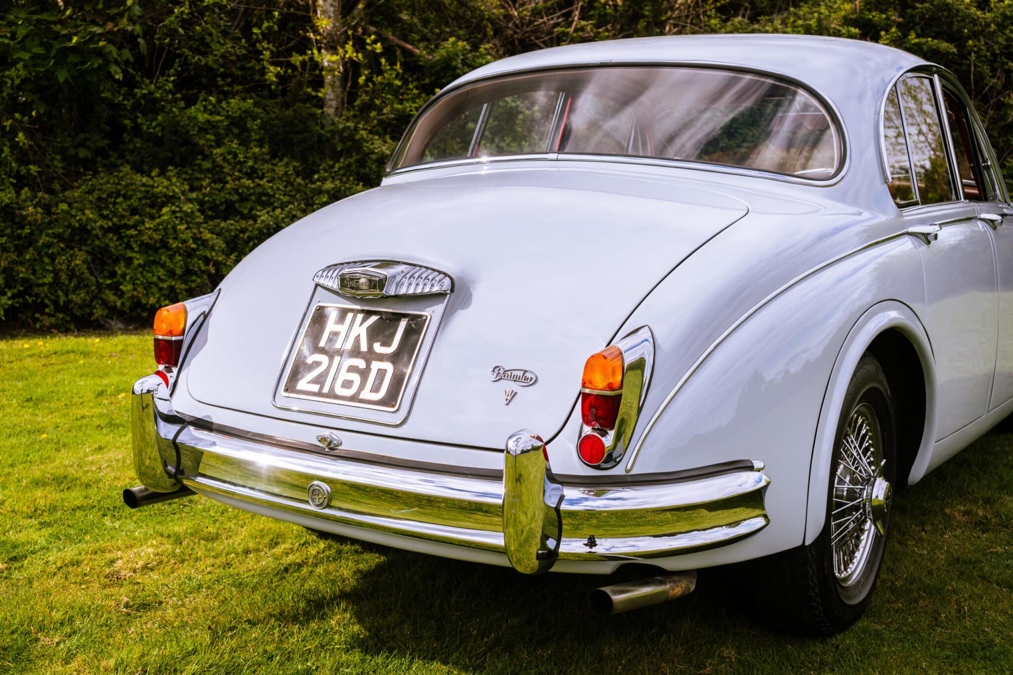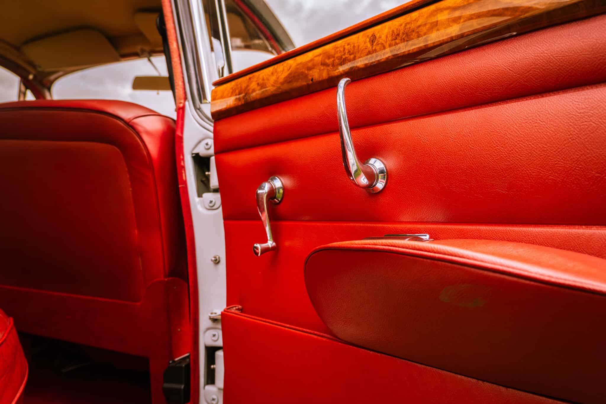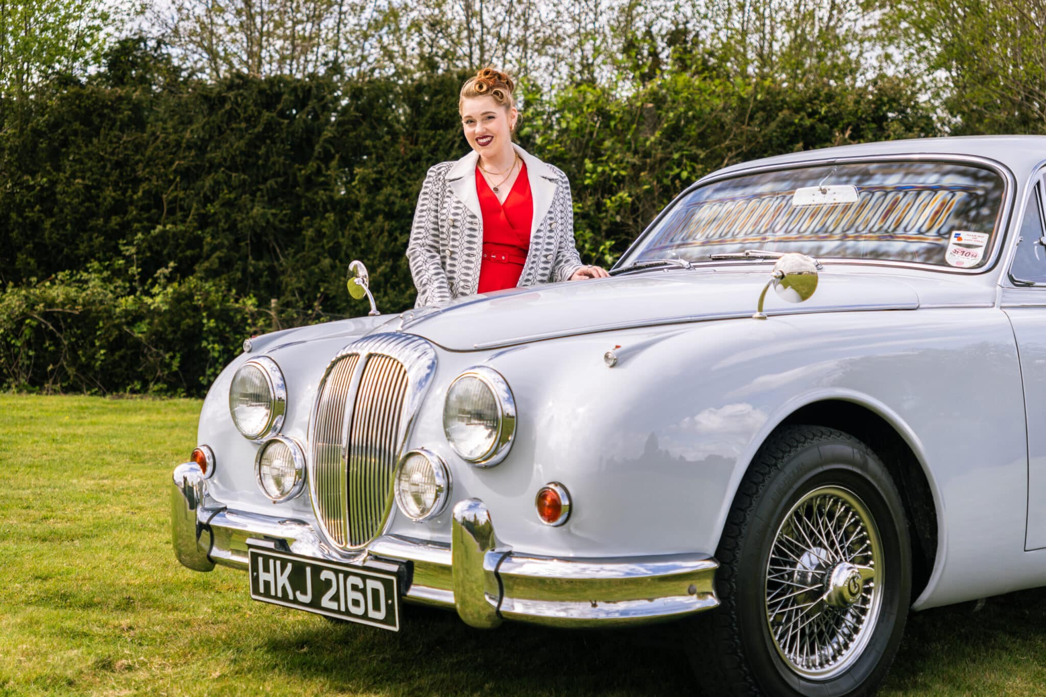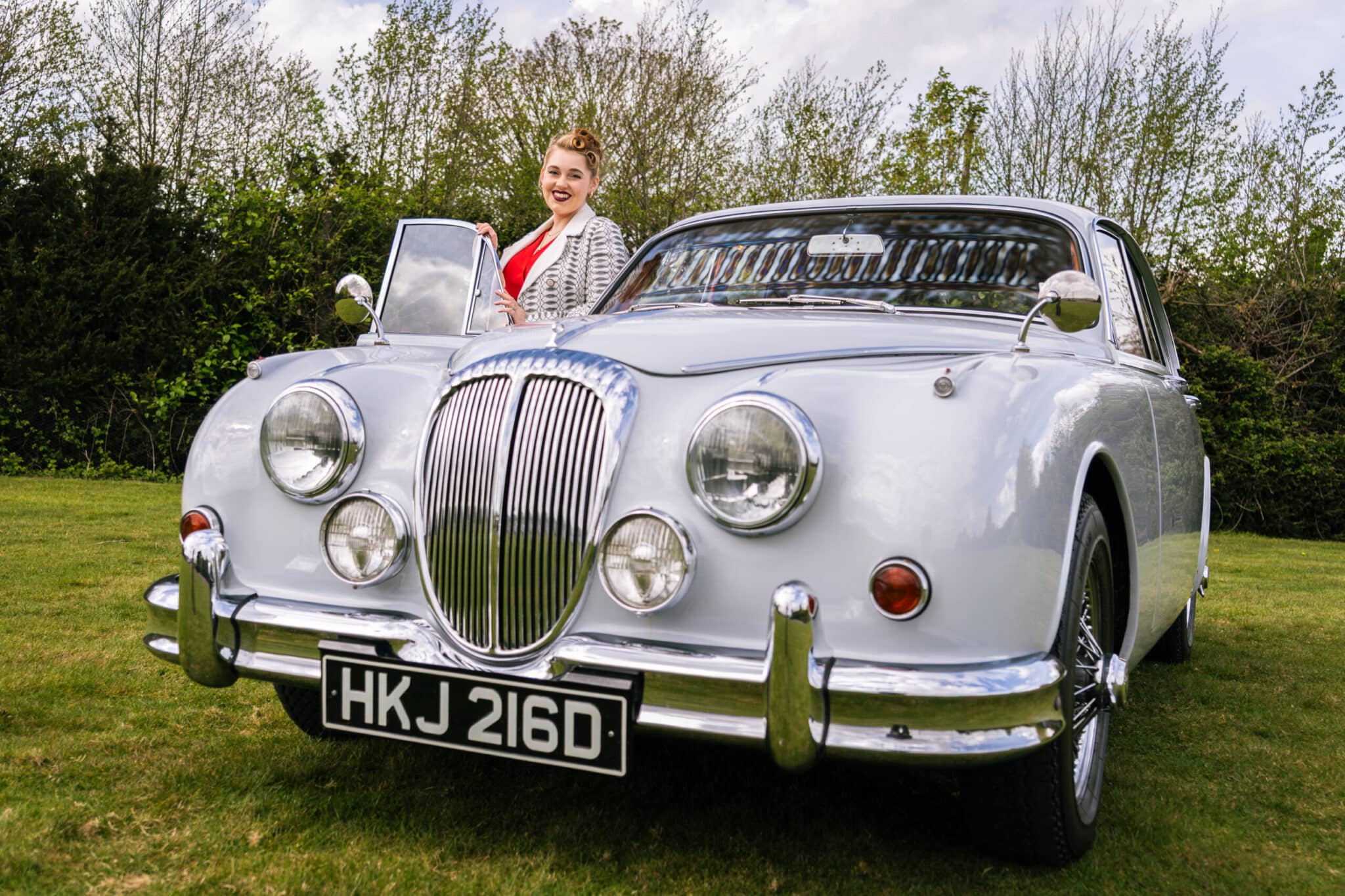 Our 1966 Daimler V8 250 is finished in an interesting light blue/grey with a red leather interior.