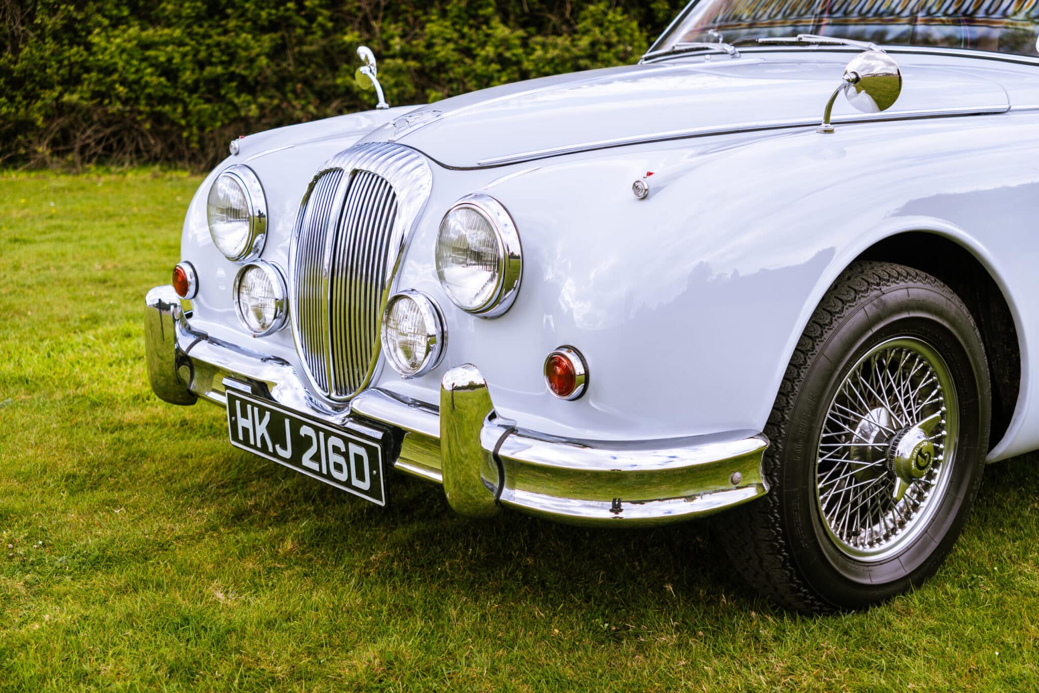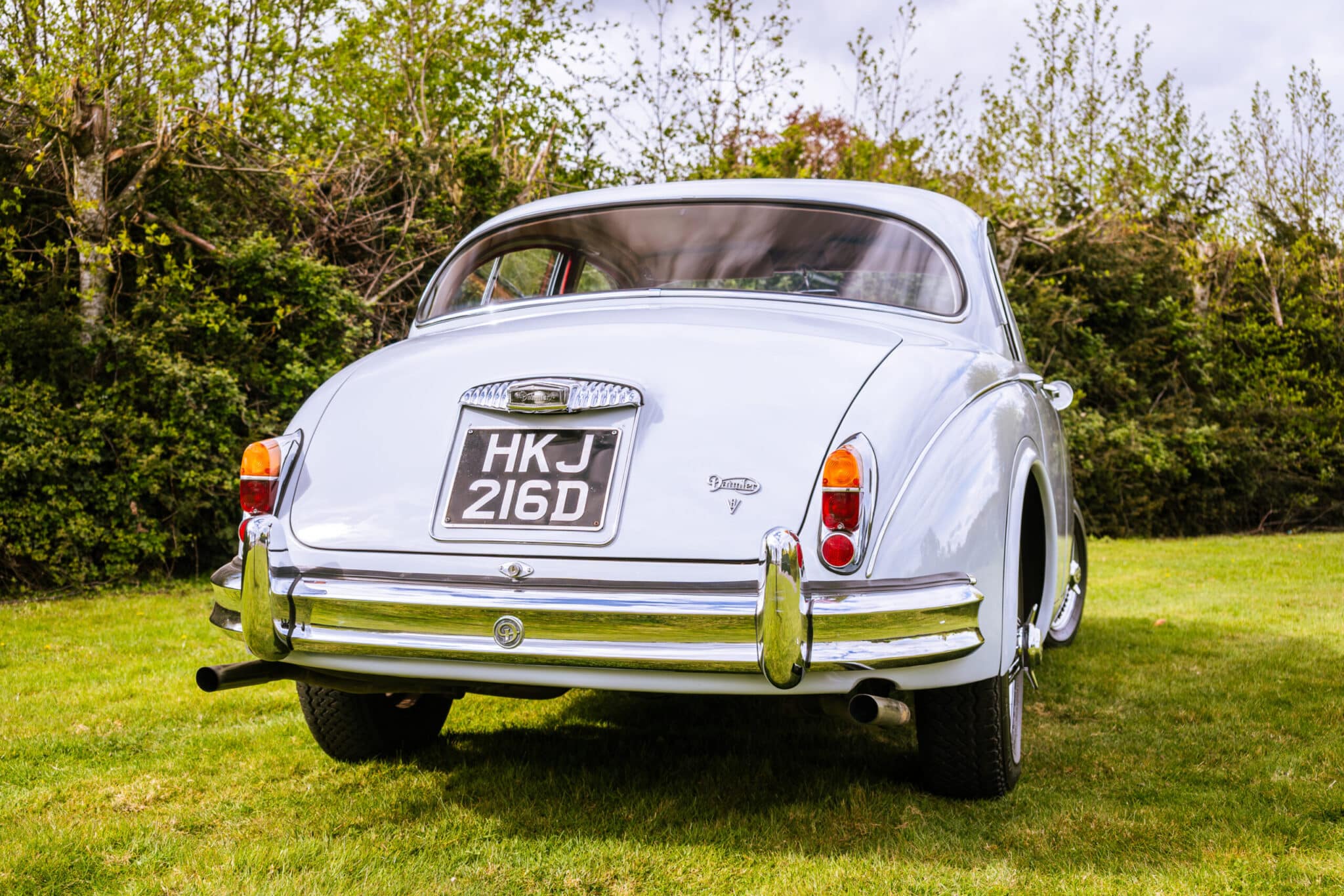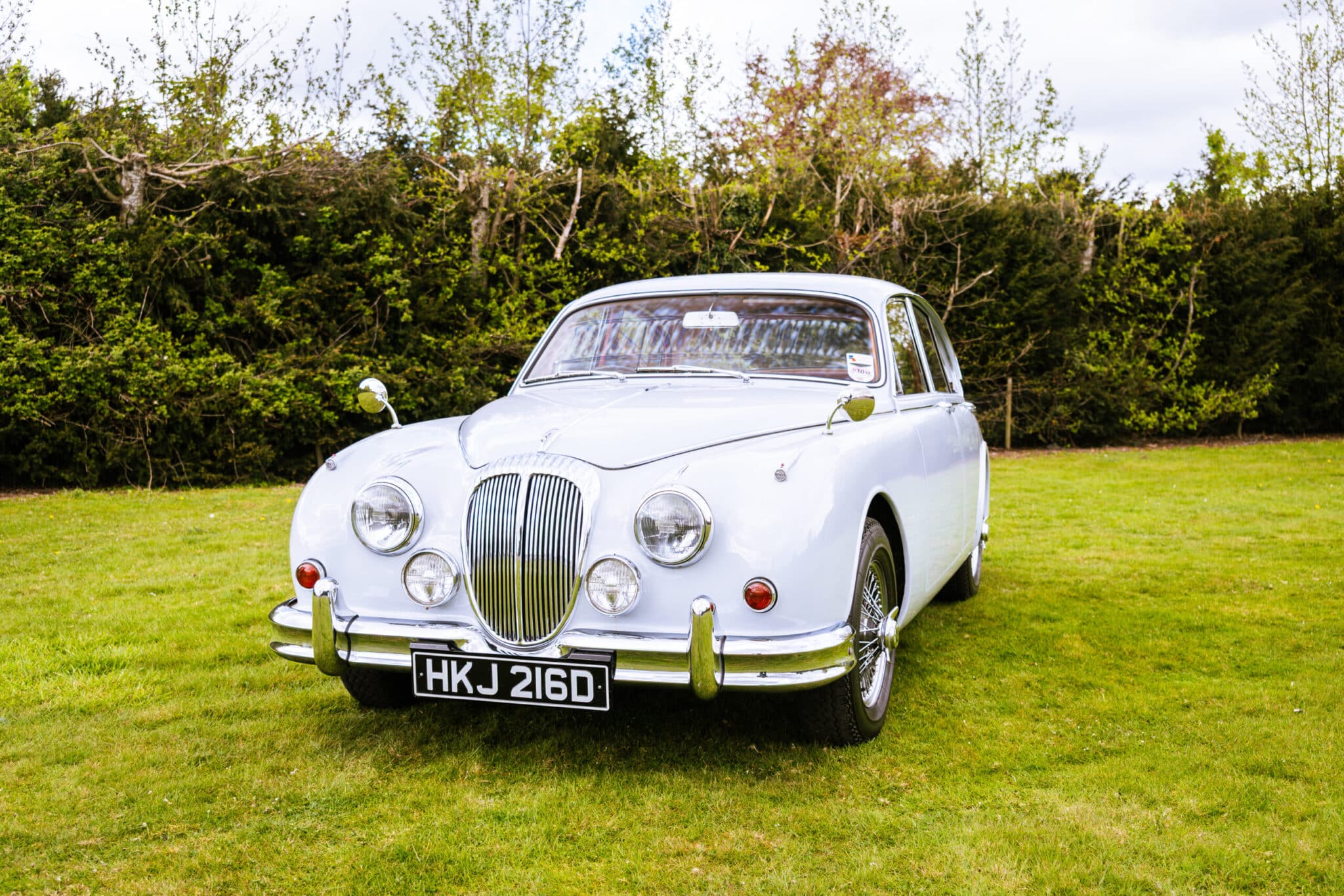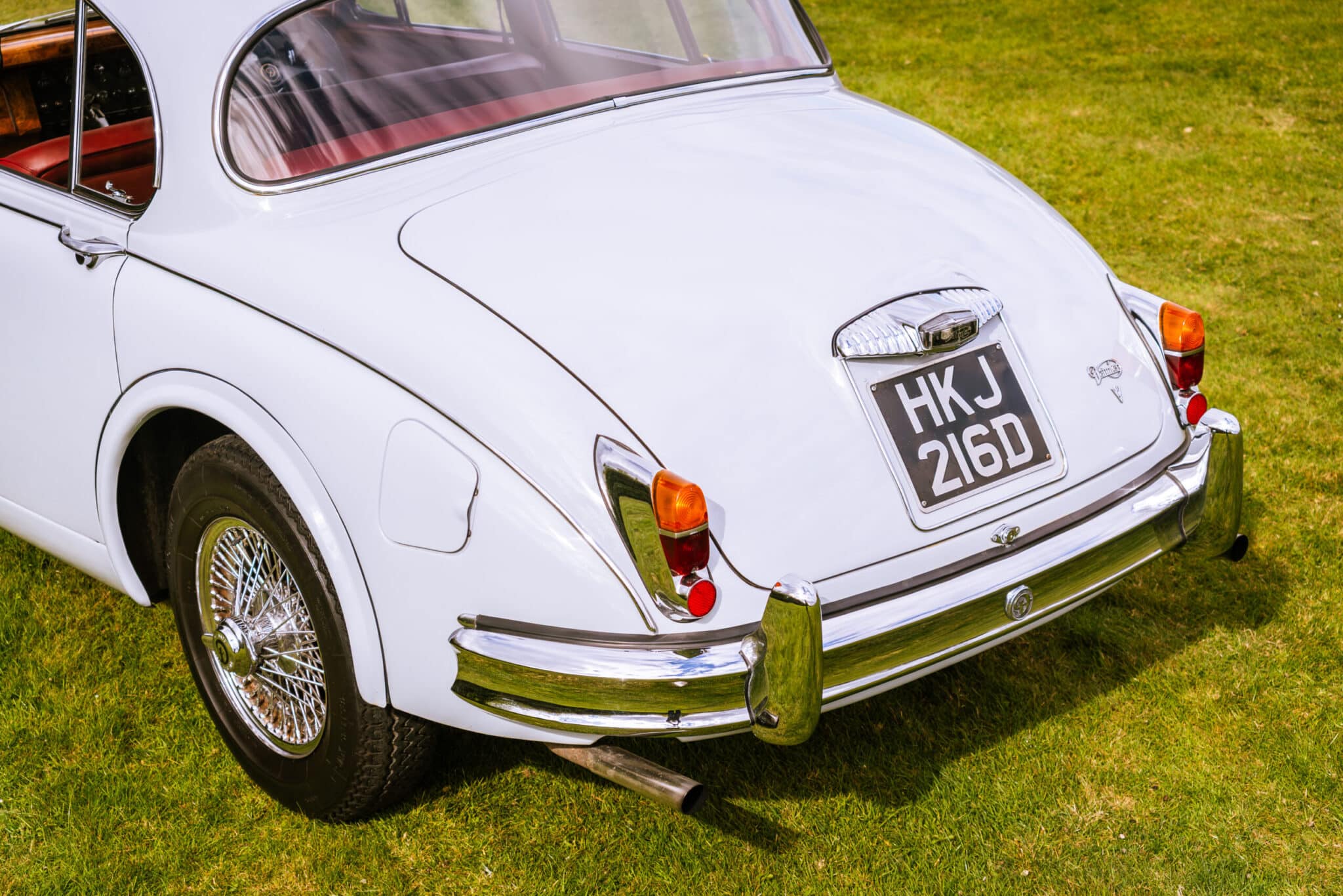 Our 1966 Daimler V8 250 is finished in an interesting light blue/grey with a red leather interior.