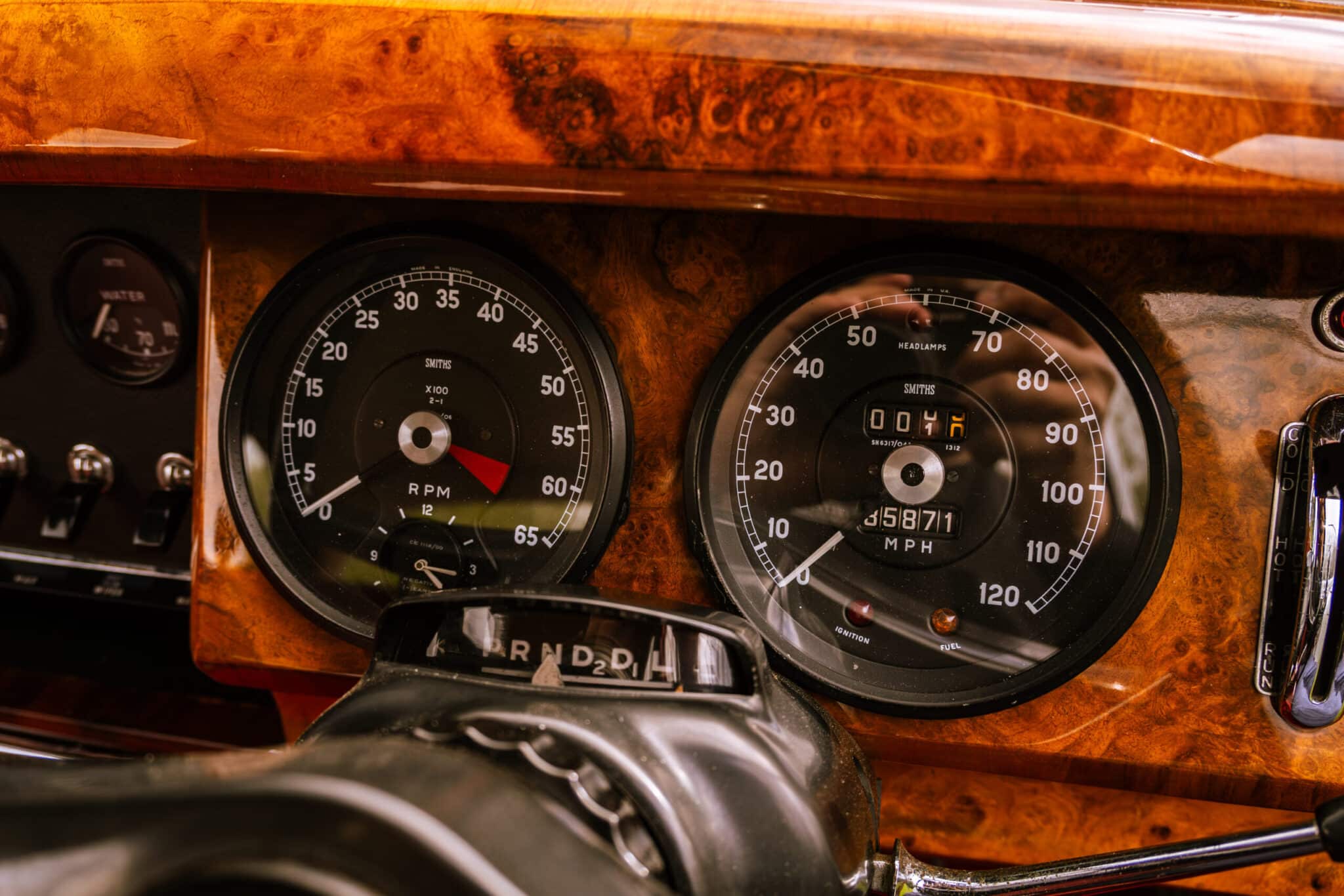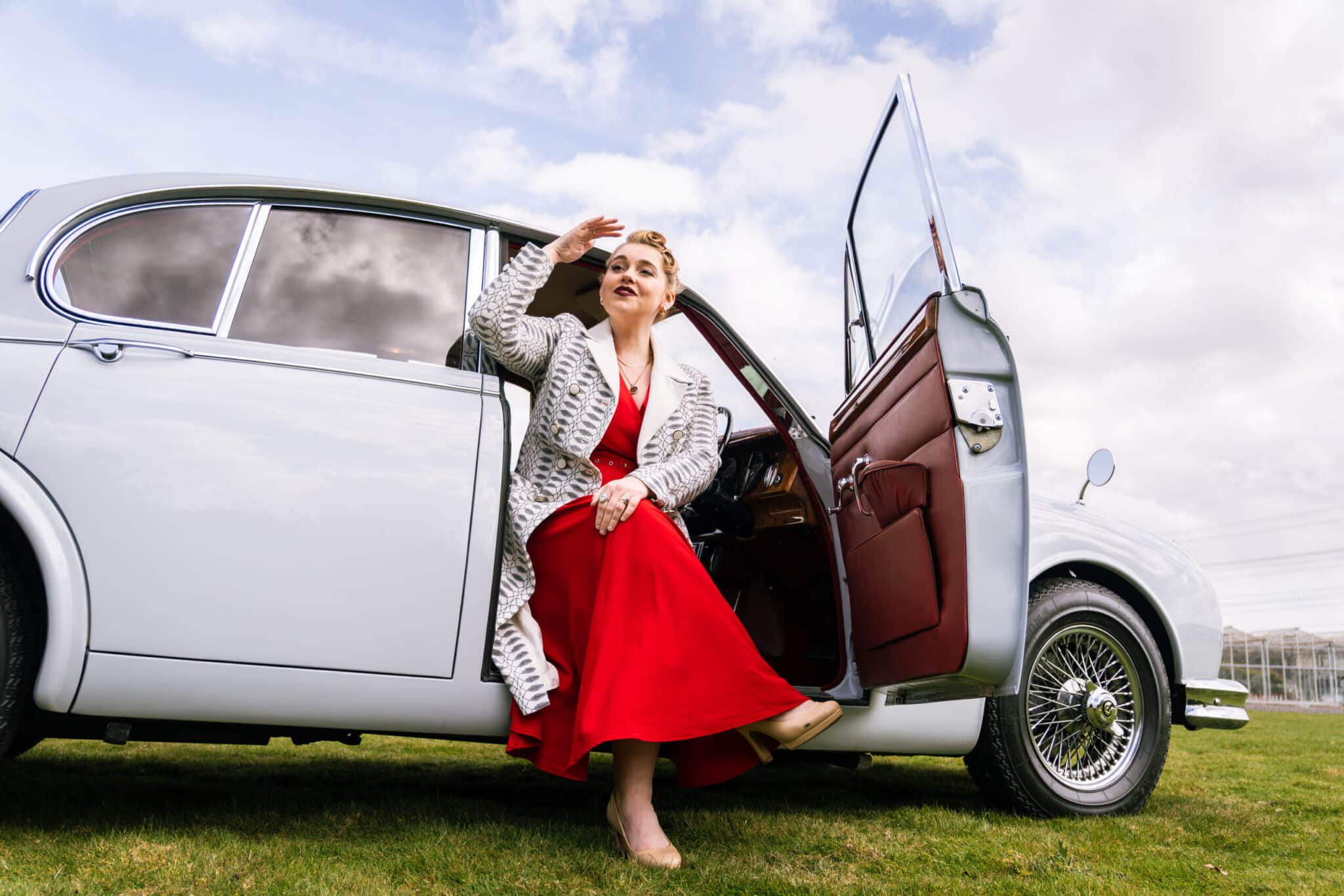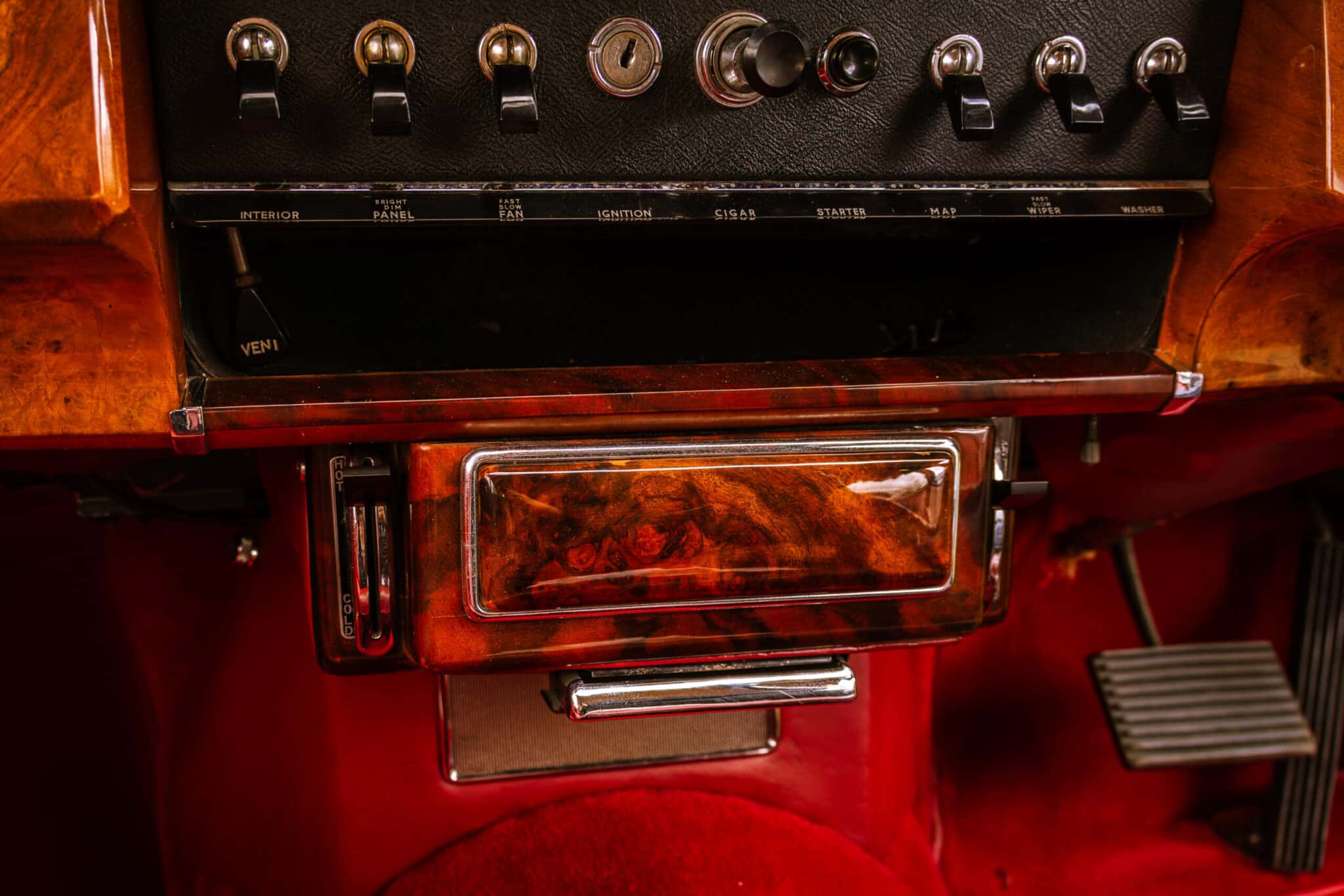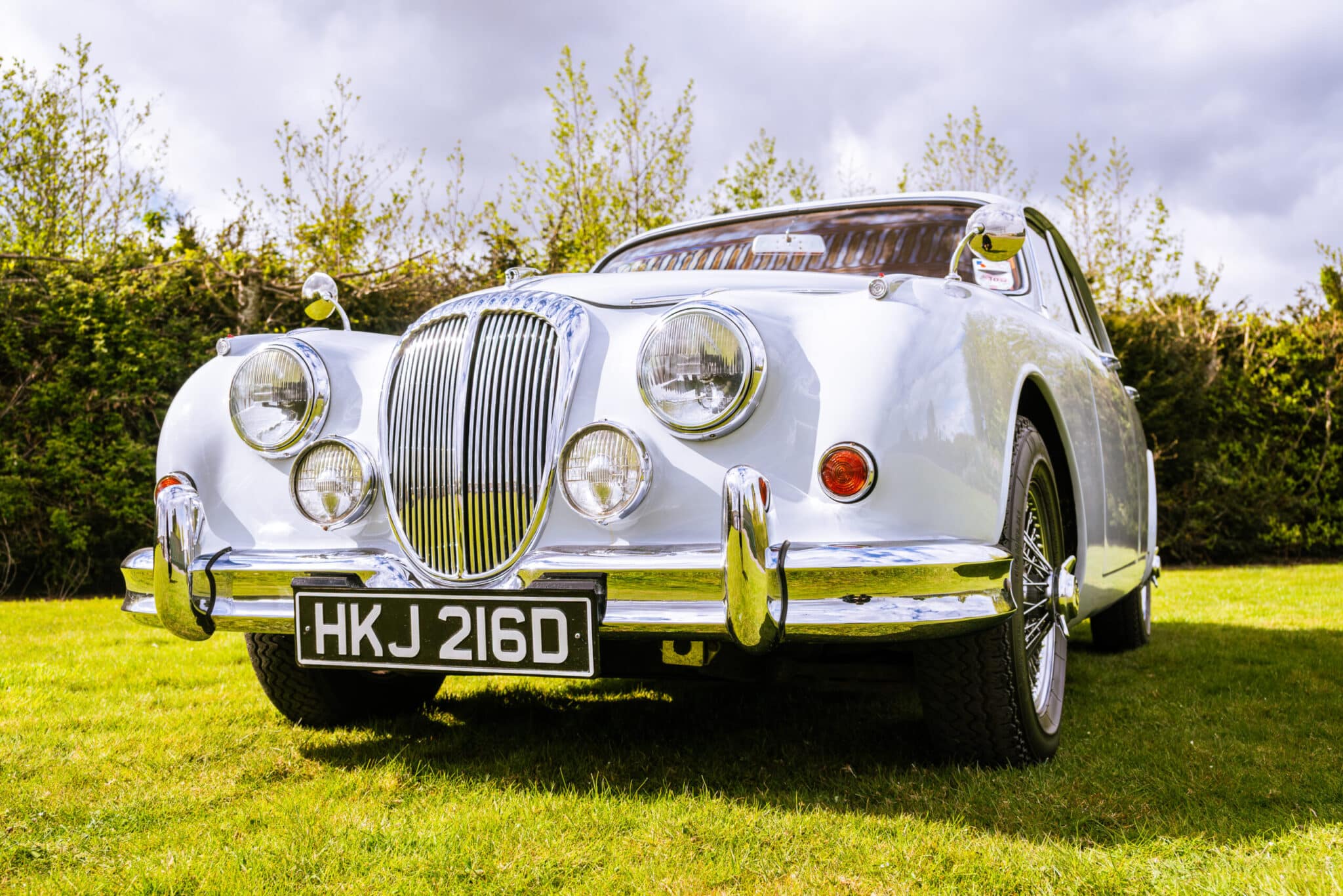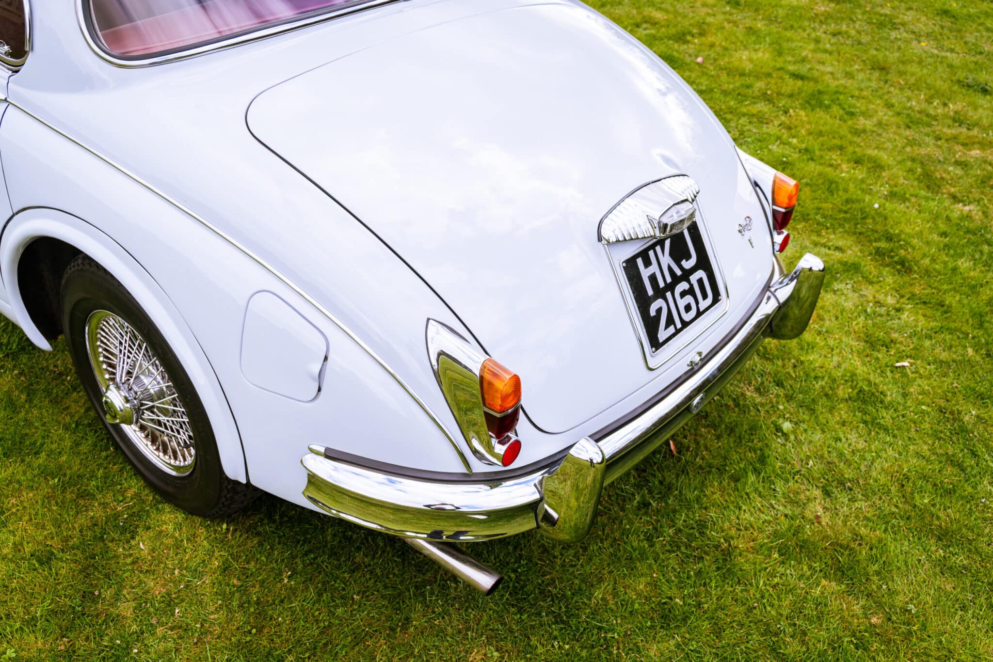 Our 1966 Daimler V8 250 is finished in an interesting light blue/grey with a red leather interior.