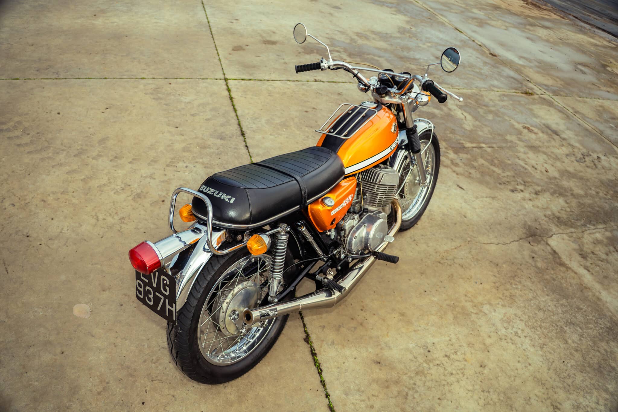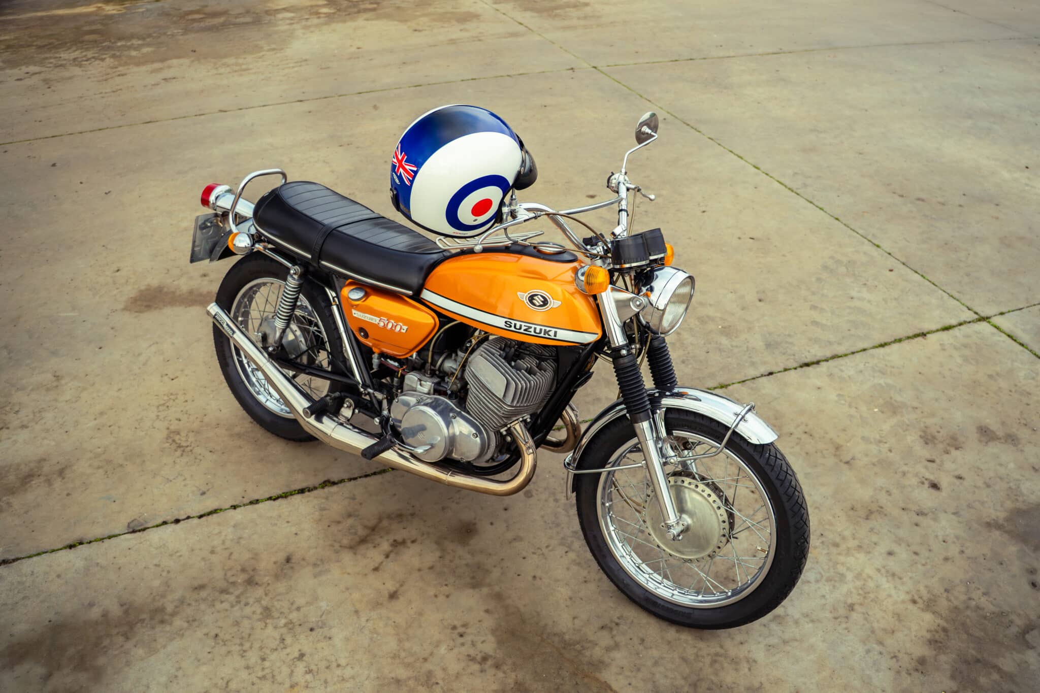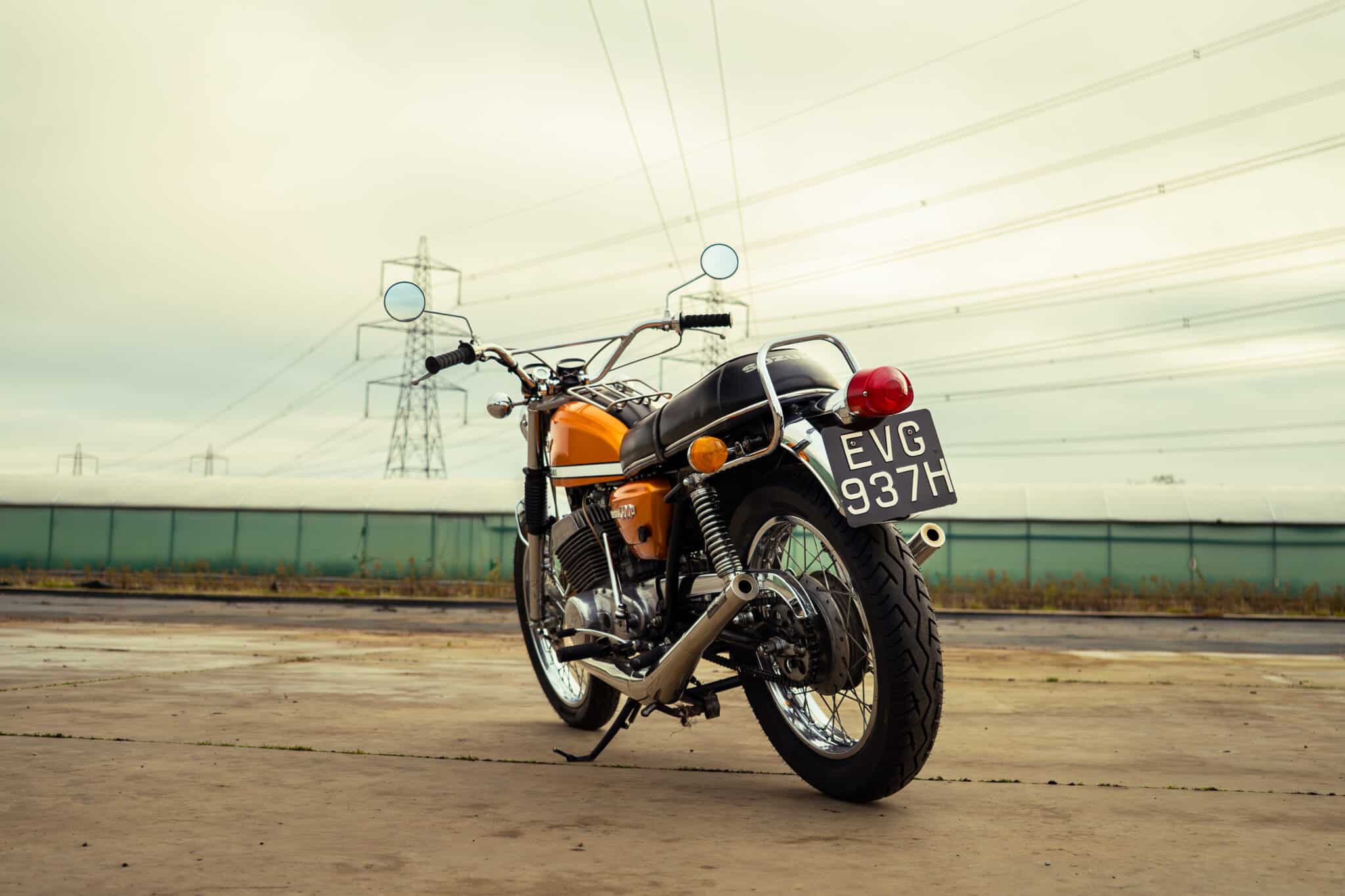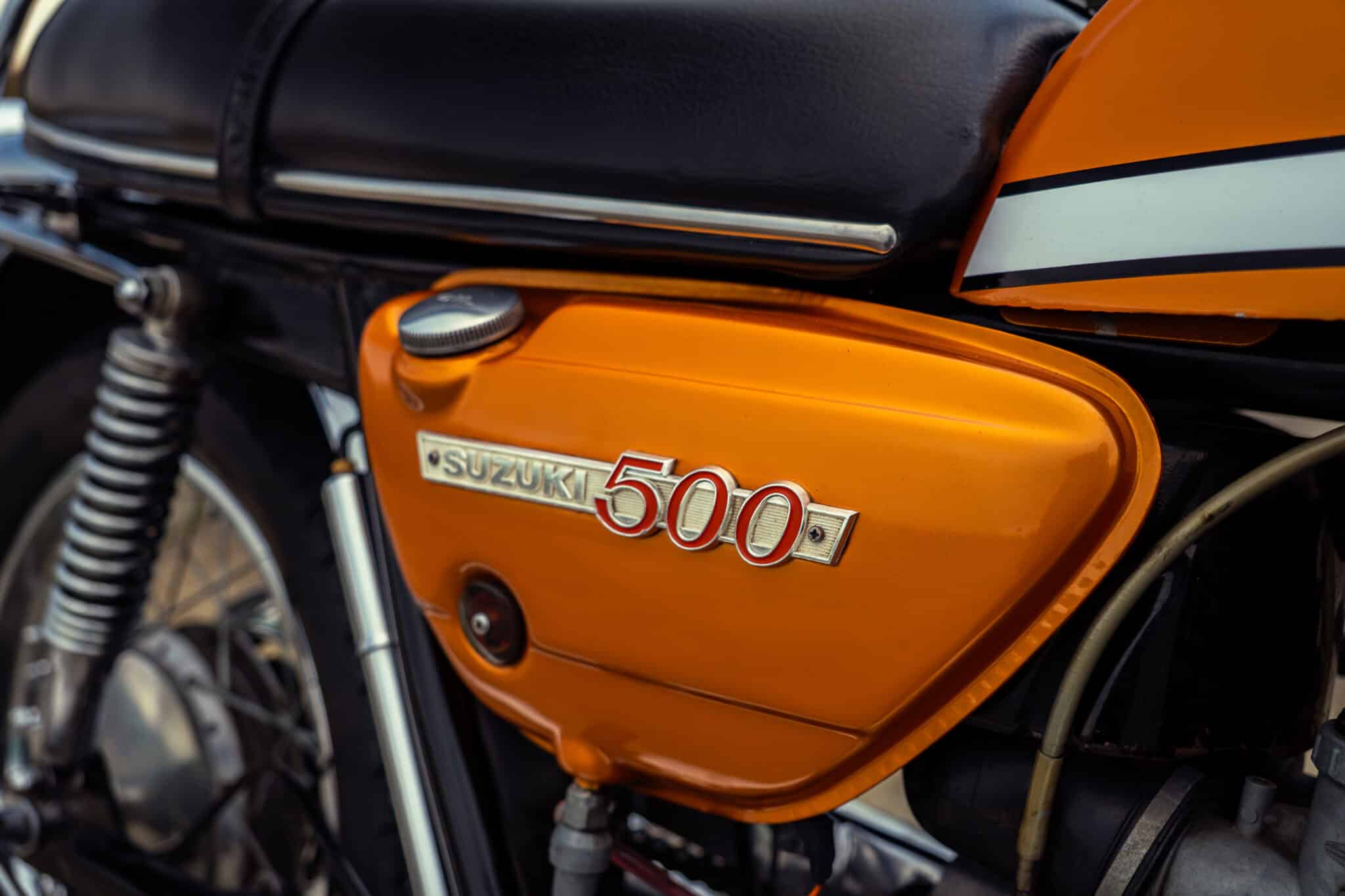 Our 1970 Suzuki T500 was first registered on 1st April 1970 and is finished in a stunning Gold/Orange colour.