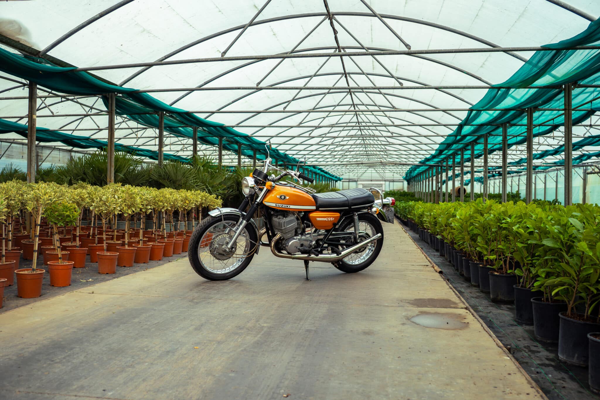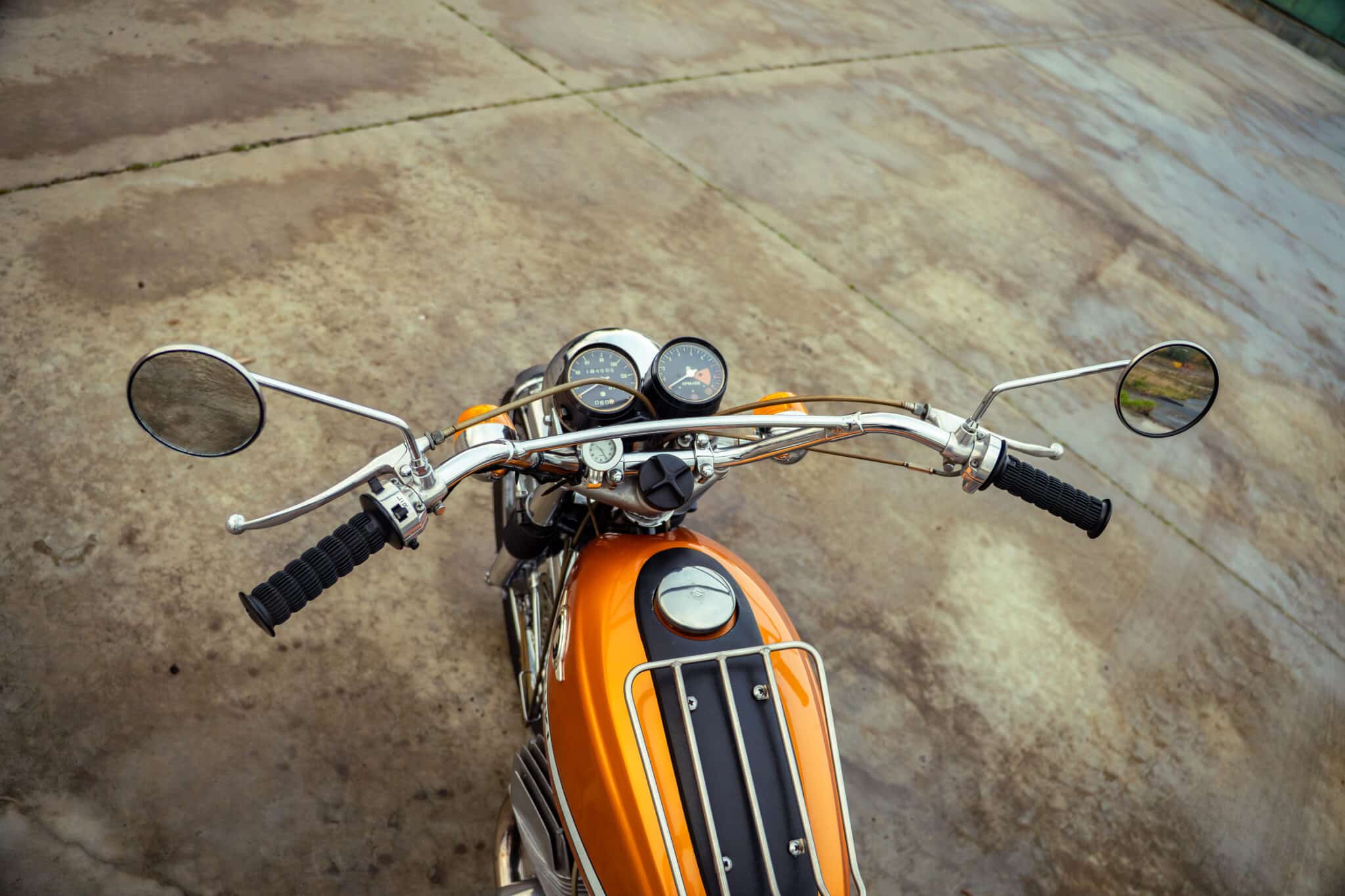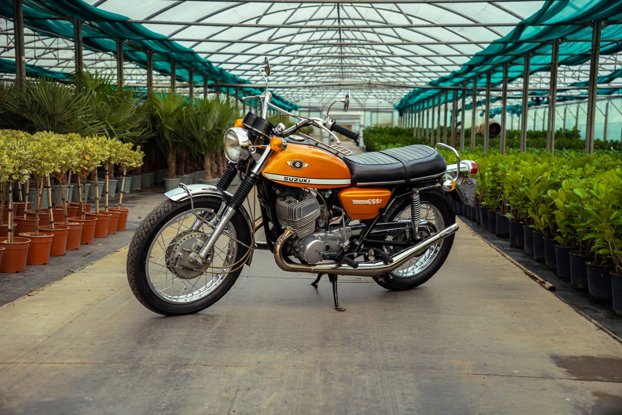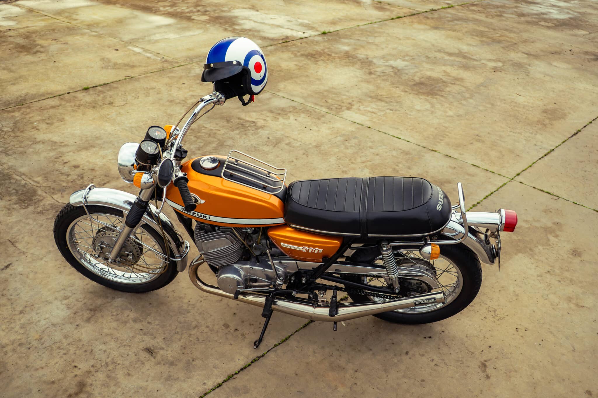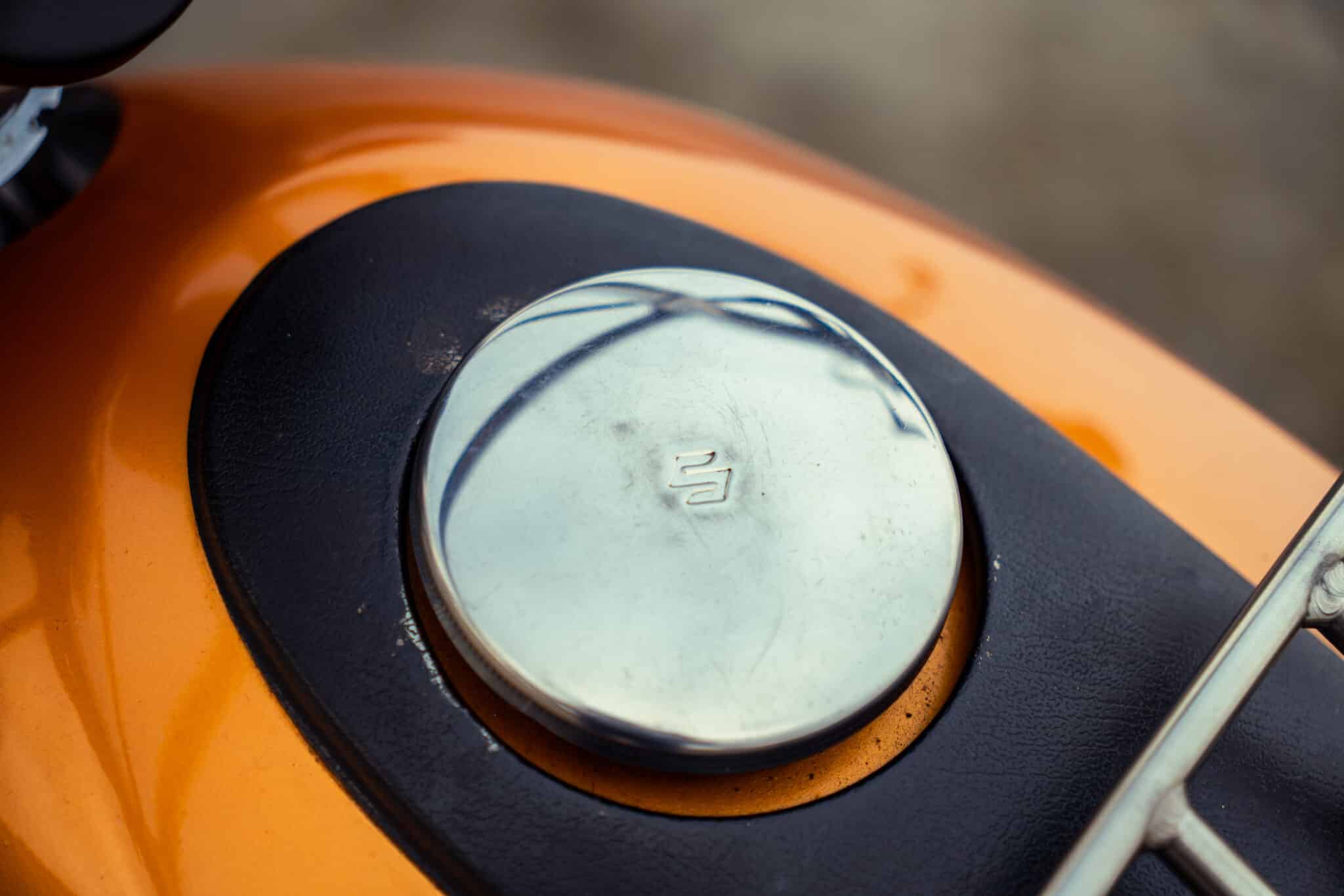 Our 1970 Suzuki T500 was first registered on 1st April 1970 and is finished in a stunning Gold/Orange colour.