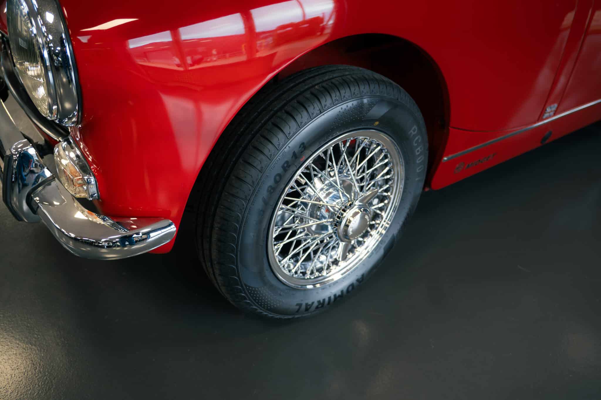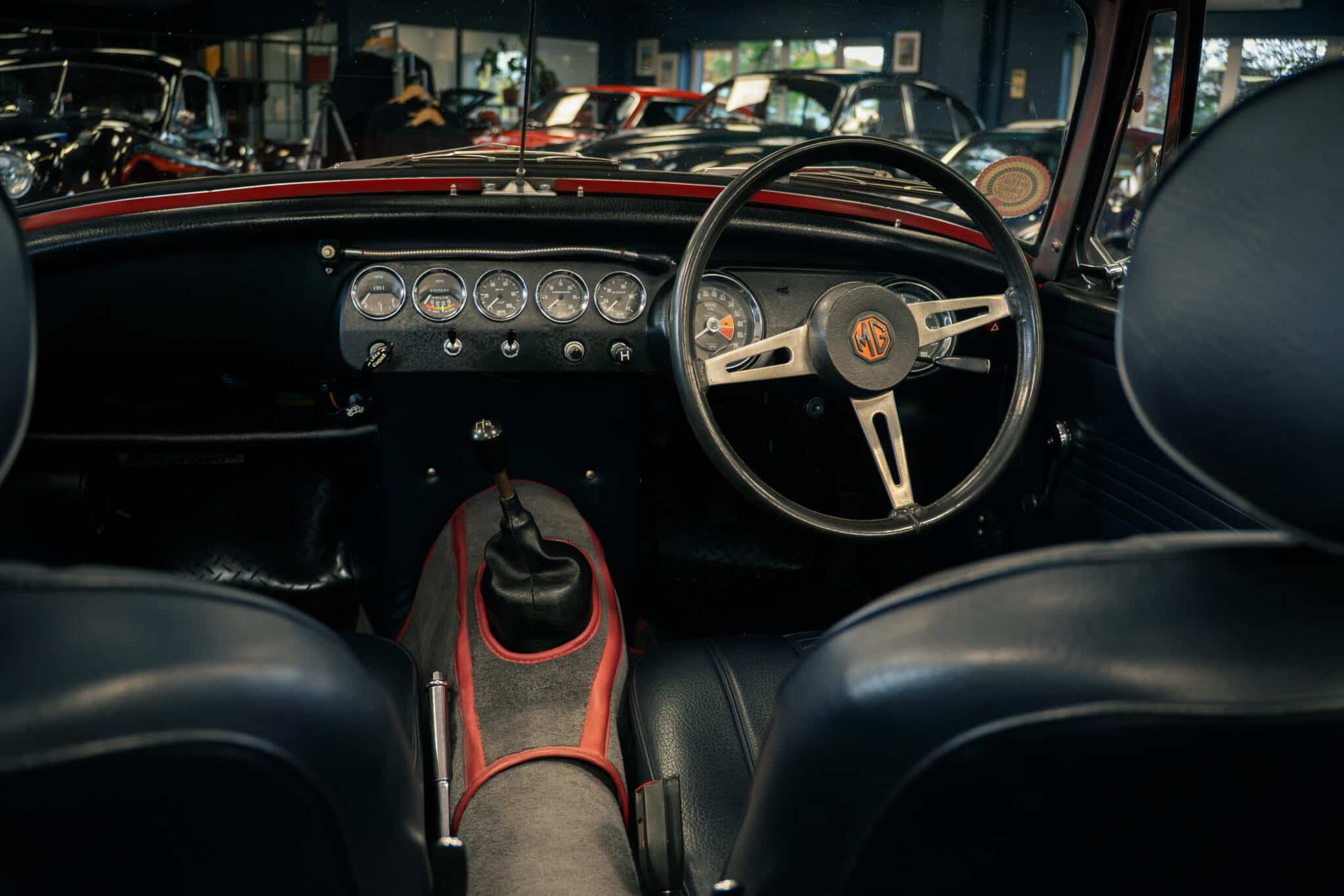 Finished in a classic combination of vibrant and fiery red paintwork with beautiful brightwork throughout on its exterior, our MG Midget balances this look out with a stylish and elegant black interior and roof as well as the addition of a recent wire wheel conversion.