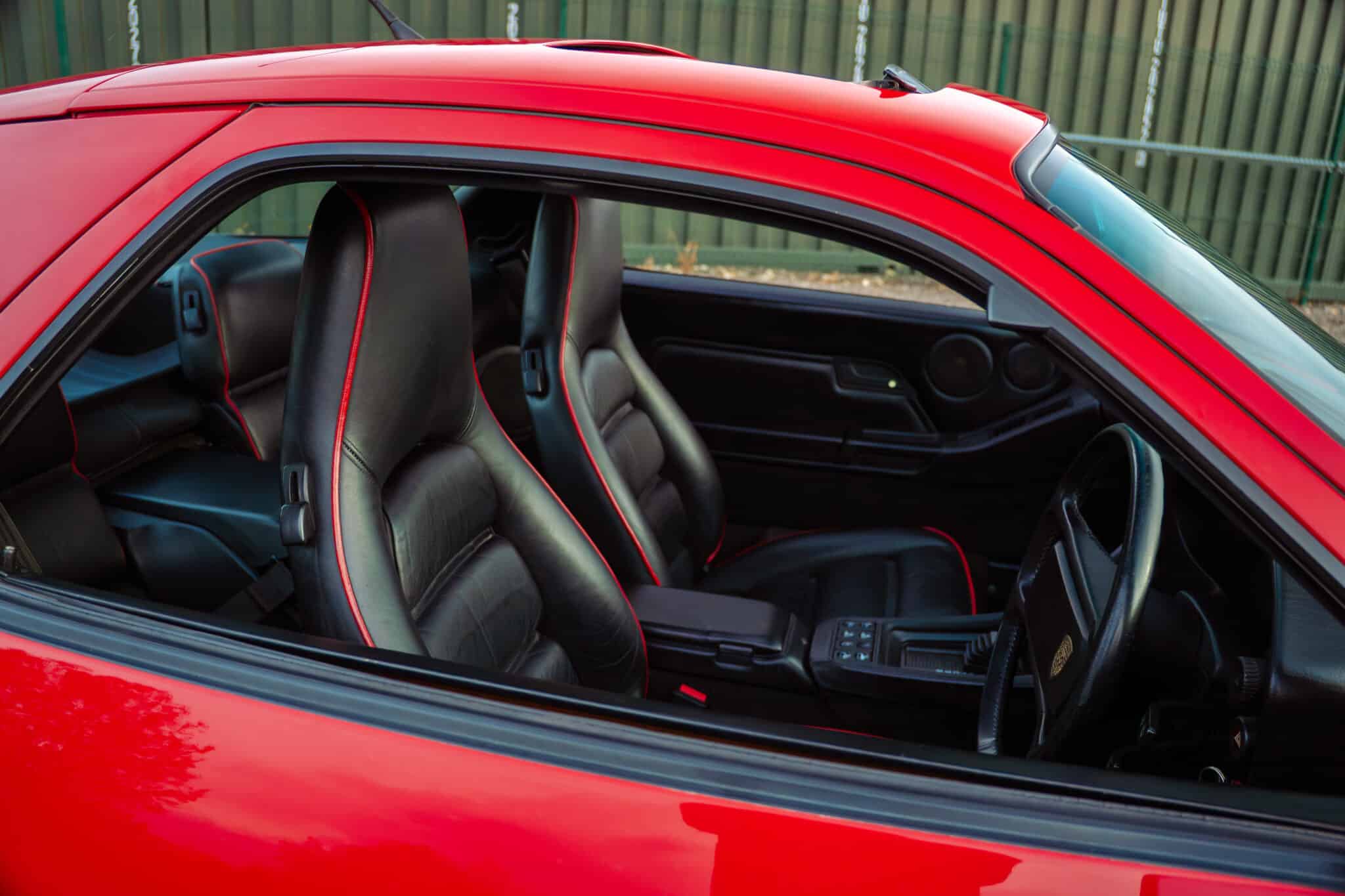 It is finished in Guards Red over black leather with red piping.