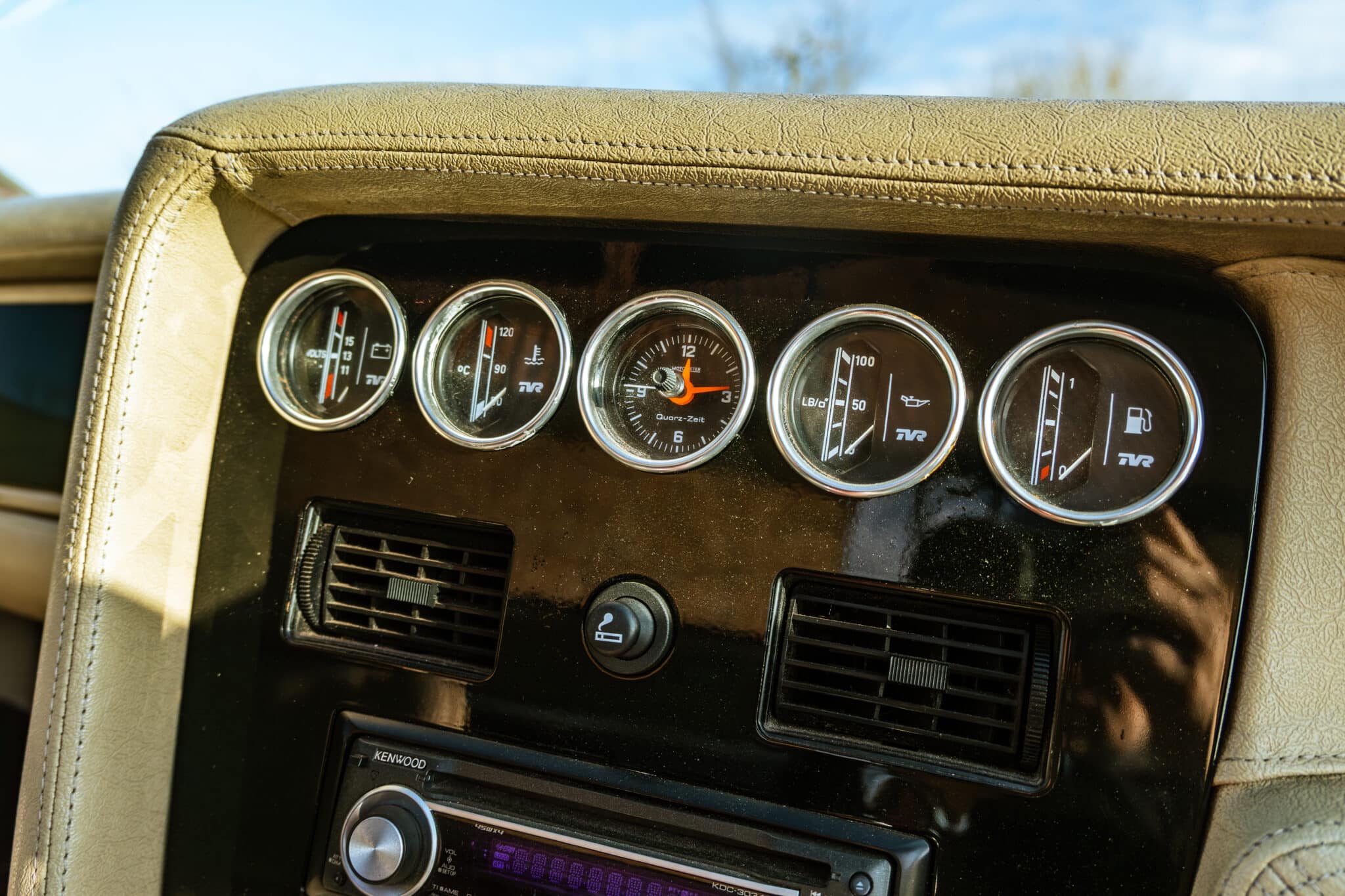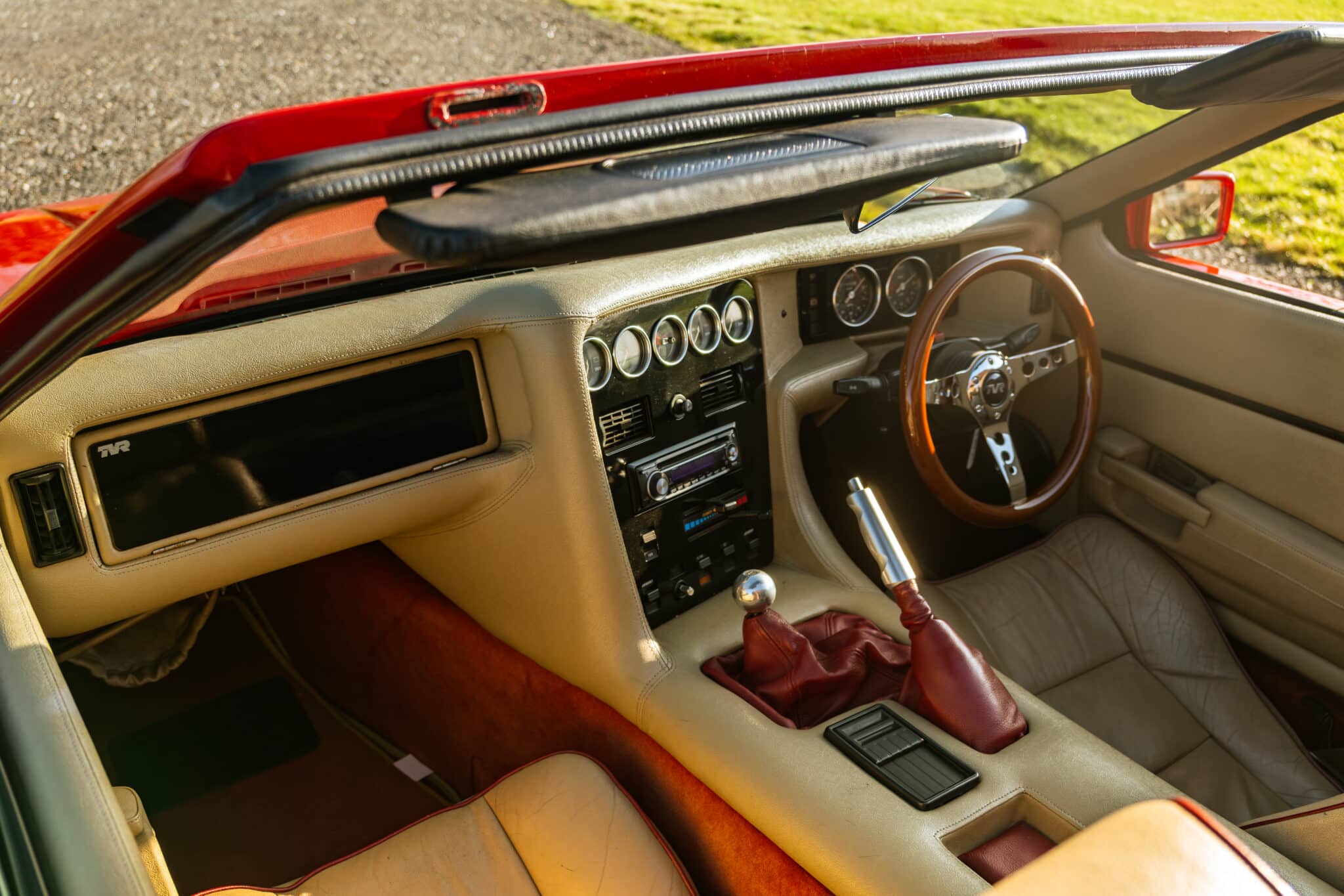 Built in 1989, our TVR Tasmin features a Rover V8, which has been upgraded by Wedge1 Auto in the early 2000s for even better performance. It also benefits from a Mark Adams Tornado chip and ACT stainless steel manifolds and exhaust.