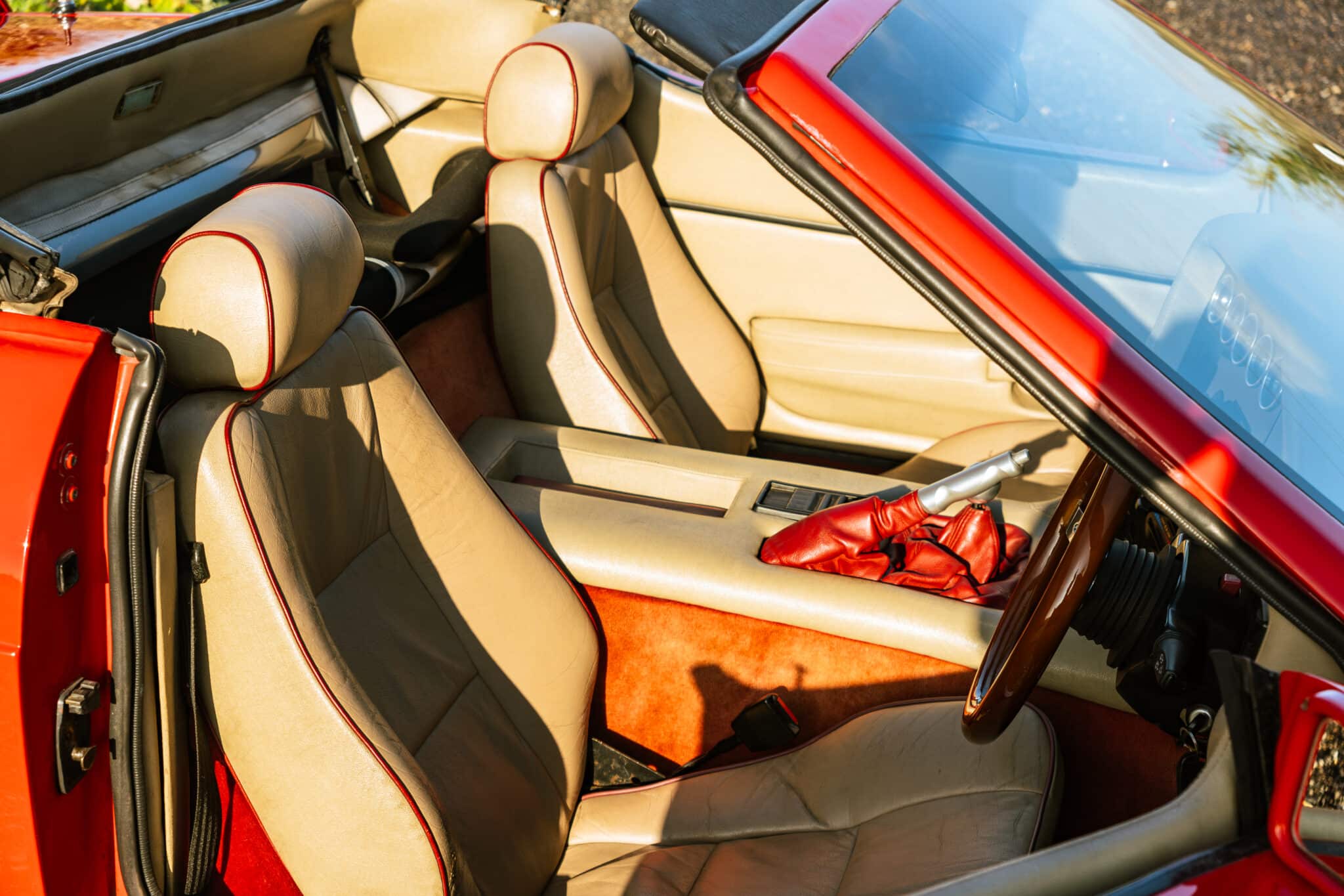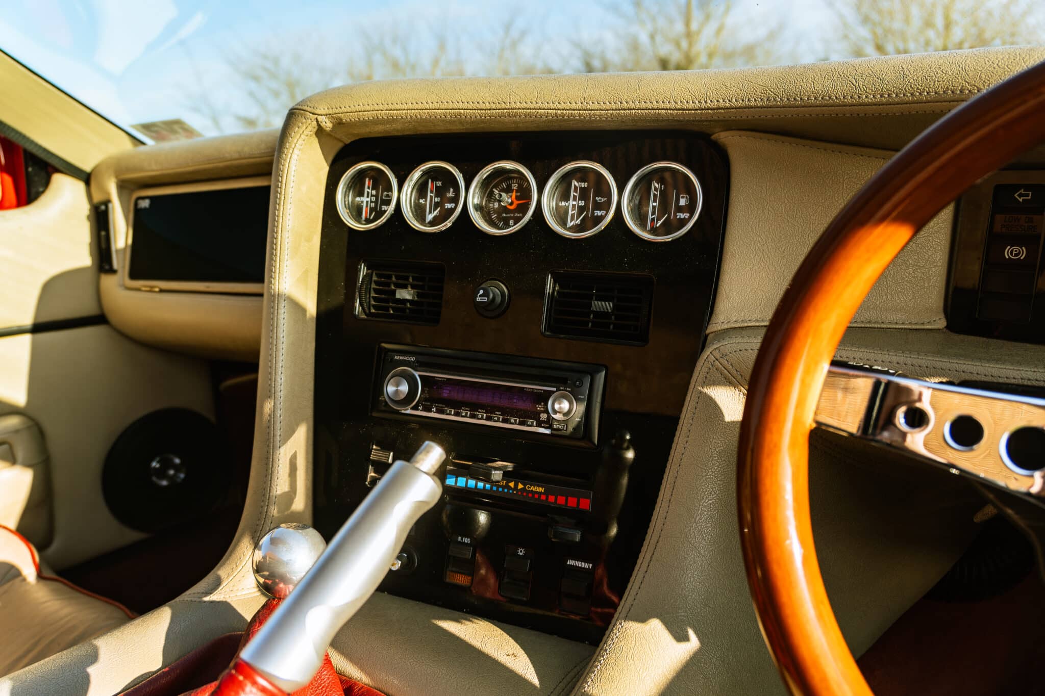 Finished in Italian Red, the car was resprayed and ceramic-coated in the last few years. It has a cream interior with red piping, and a modern Kenwood audio system has been fitted.