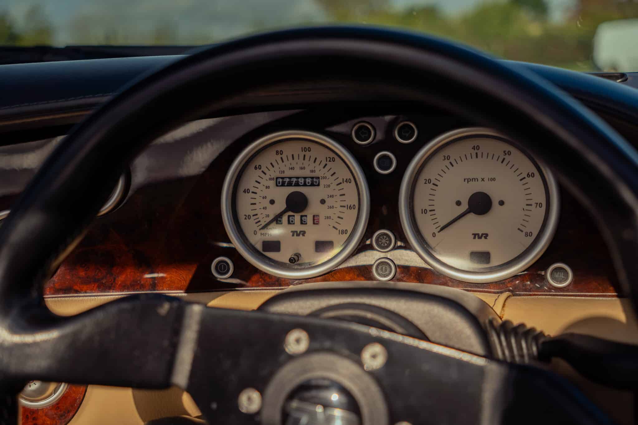 It has very clearly been well looked after and comes with an extremely well-documented history, including 23 service stamps, invoices covering most of its life, and a recent service at 74,000 miles by Fenhurst TVR.