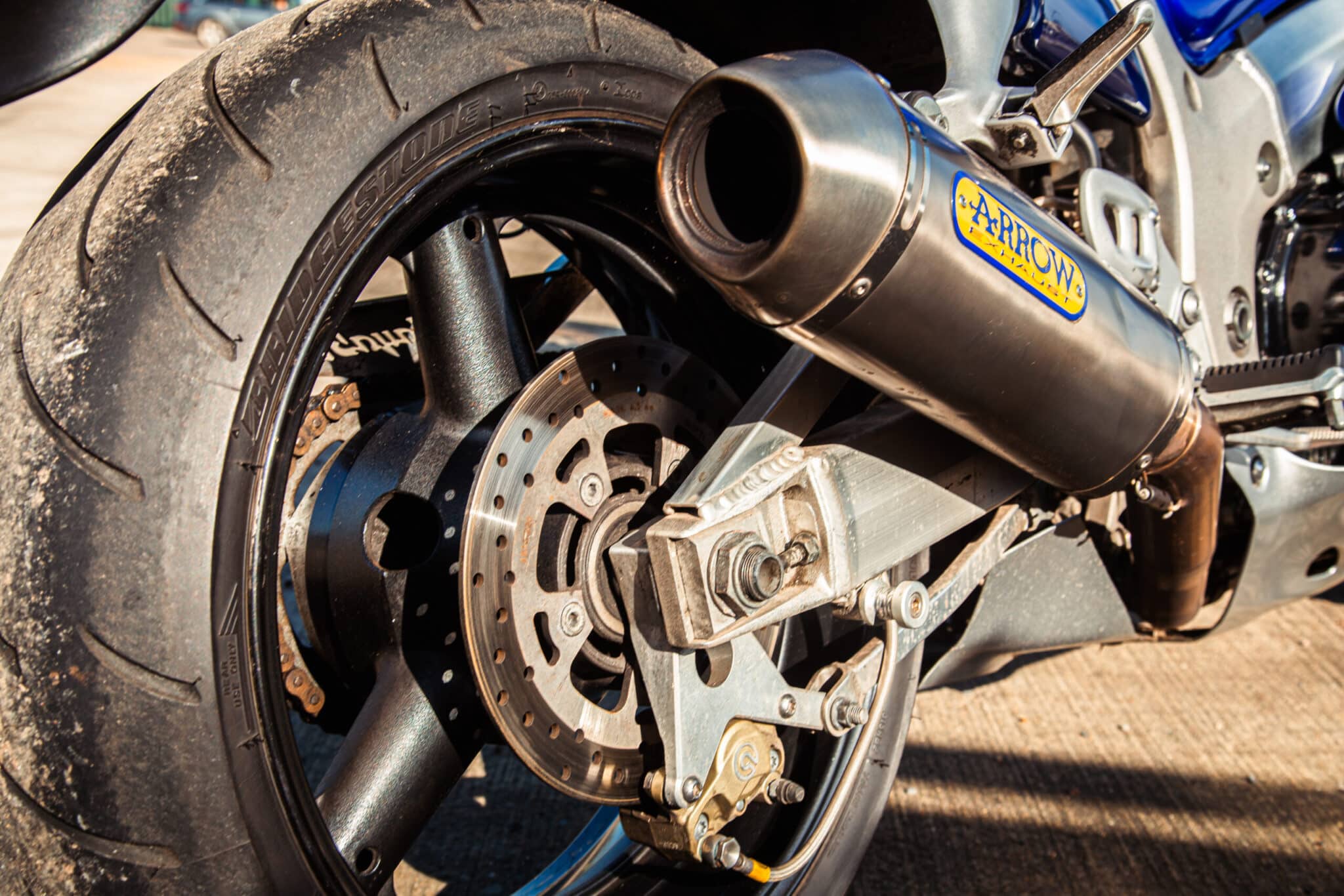 Our Hayabusa has a fuel-injected 1298cc engine, multi-piston front brake setup, aluminium swingarm and fully faired sports chassis. Although highly original, it has been fitted with an Arrow exhaust system.