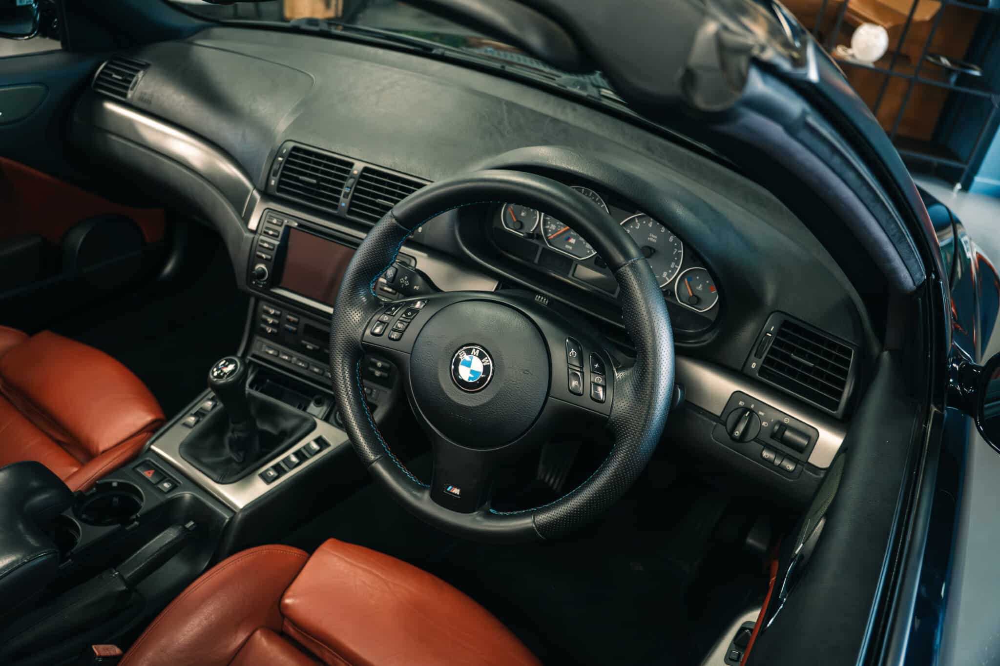 This stunning 2004 BMW M3 Convertible is a late-production example of the E46 M3. Built on 19th May 2004, it’s finished in Carbon Schwarz metallic over an Imola Red Walknappa leather interior. This was one of the most desirable colour combinations BMW offered.